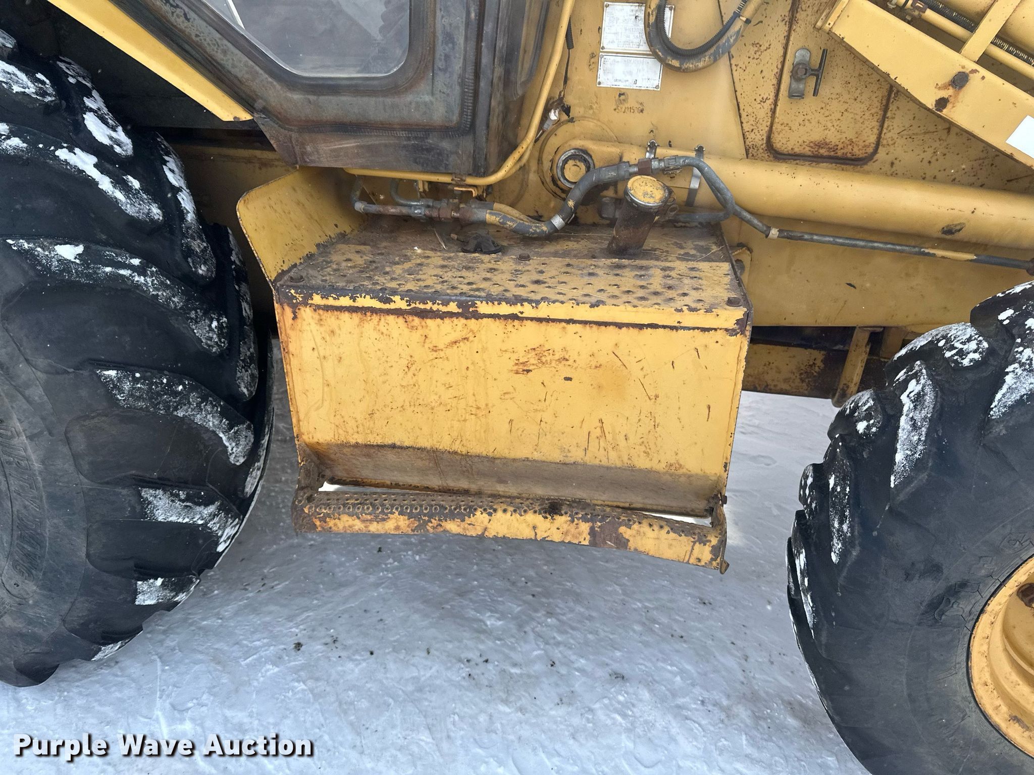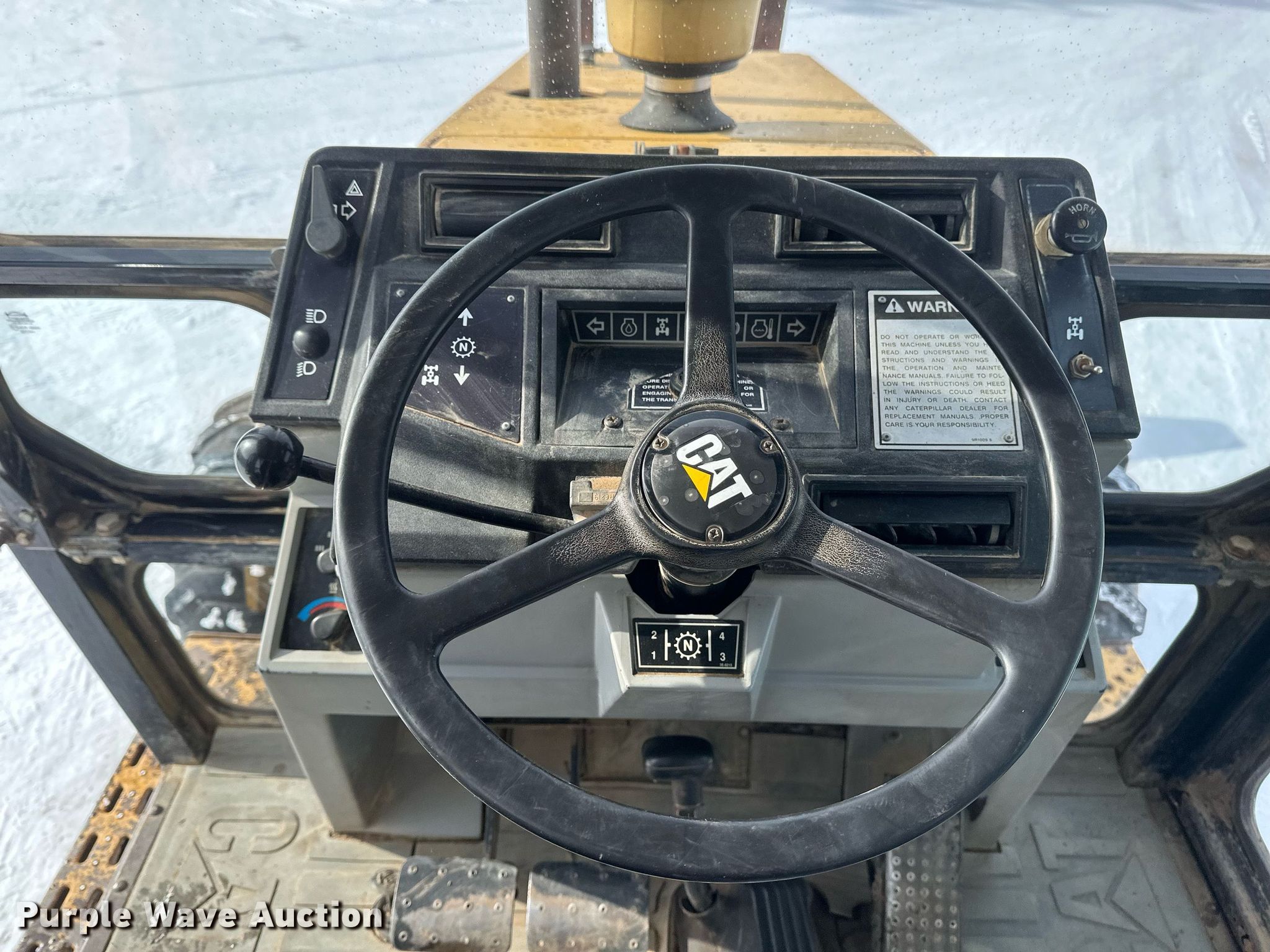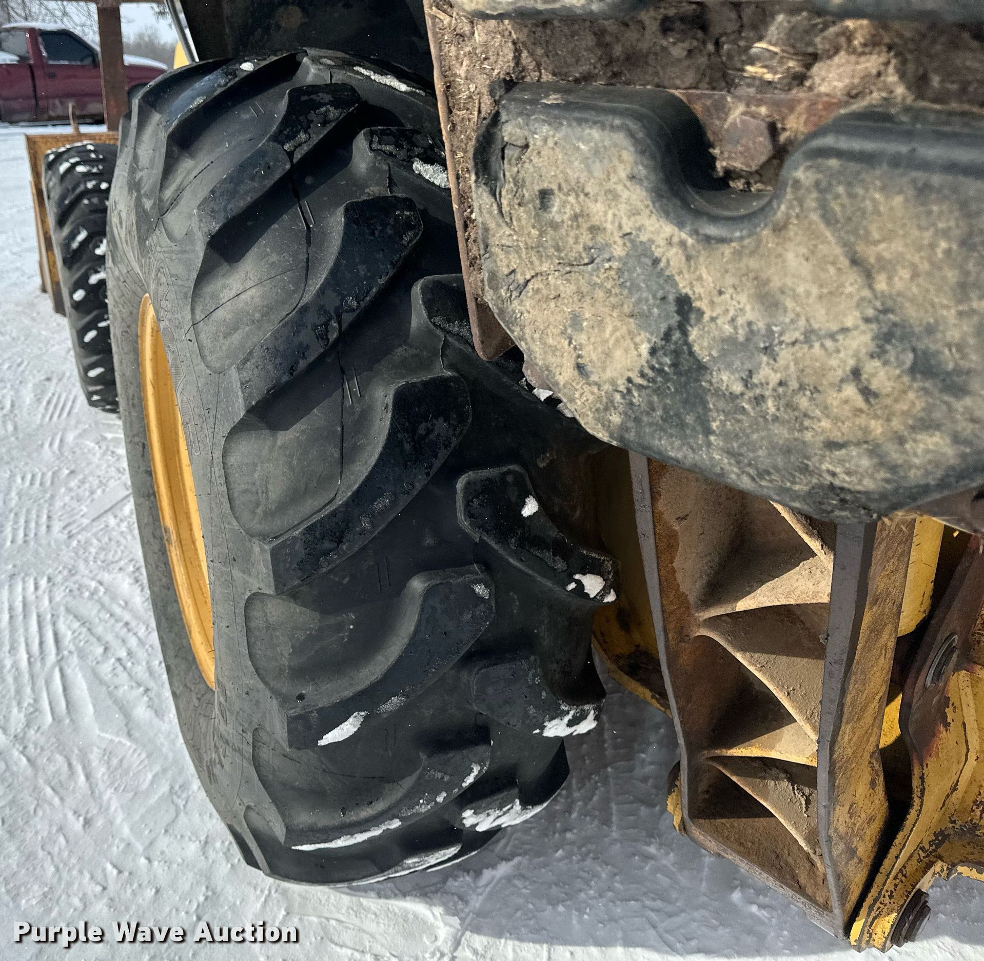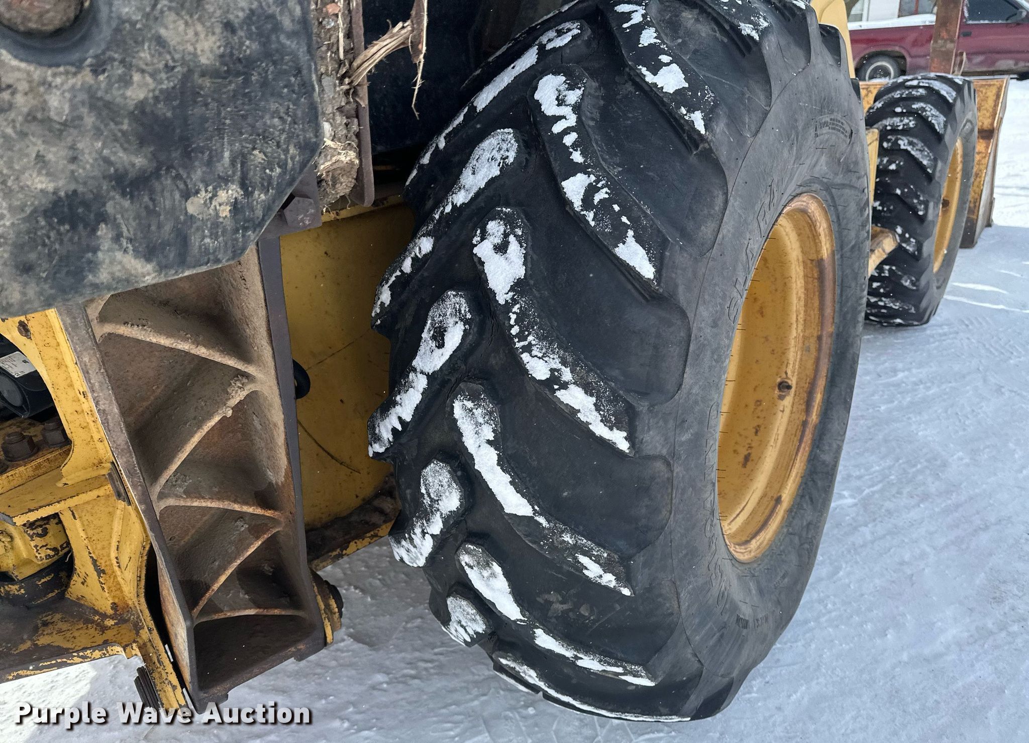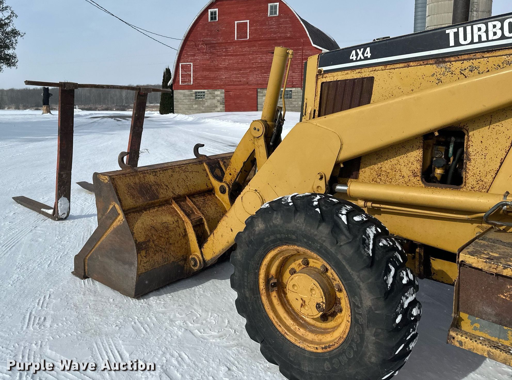 1994 Caterpillar 426B backhoe. Hours: 11,052 on meter, Serial: 5YJ01506. Engine Caterpillar, Cylinders: 4, Fuel type: Diesel. Transmission Shuttle shift, 4F - 4R. Chassis Four wheel drive, Differential lock. Operators station Enclosed cab, Heat, Backhoe controls: Wobble stick / two stick. Features Loader Bucket Width: 86", Cutting edge: Bolt-on, Forks Length: 46", Backhoe Extendable stick, Bucket Width: 30", Cutting edge: Weld-on, Teeth: 5.. Tires Front: 12.5/80-18, Rear: 19.5L-24. Kern & Tabery, Inc.. Sebeka, MN 56477