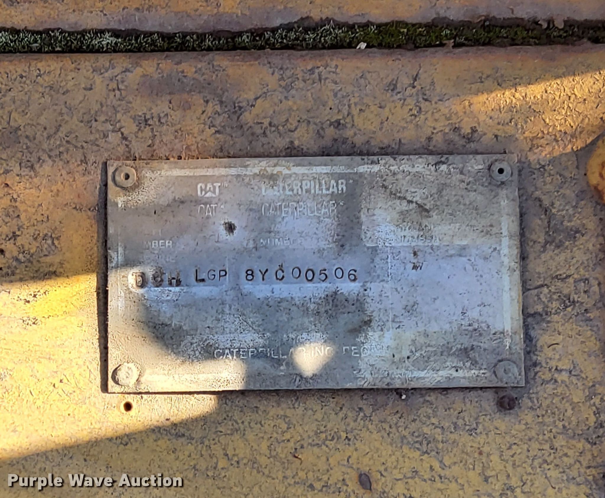 1987 Caterpillar D6H LGP dozer. Hours: 8,331 on meter, Serial: LGP8YC00506. Engine Caterpillar, Cylinders: 6, Fuel type: Diesel. Transmission Powershift, 3F - 3R. Operators station Canopy, Steering: Clutch brake. Features Auxiliary hydraulics, Screen guards, Sweeps, Rear drawbar, Dozer blade Blade type: Single-tilt, Blade shape: Straight, Width: 12' 4", Attachments Winch Allied W6G, Depth: 1".. Tracks Width: 36", Grouser pads: Single, Bottom rollers: 8, Track guards. Arvig Enterprises Inc. Perham, MN 56573