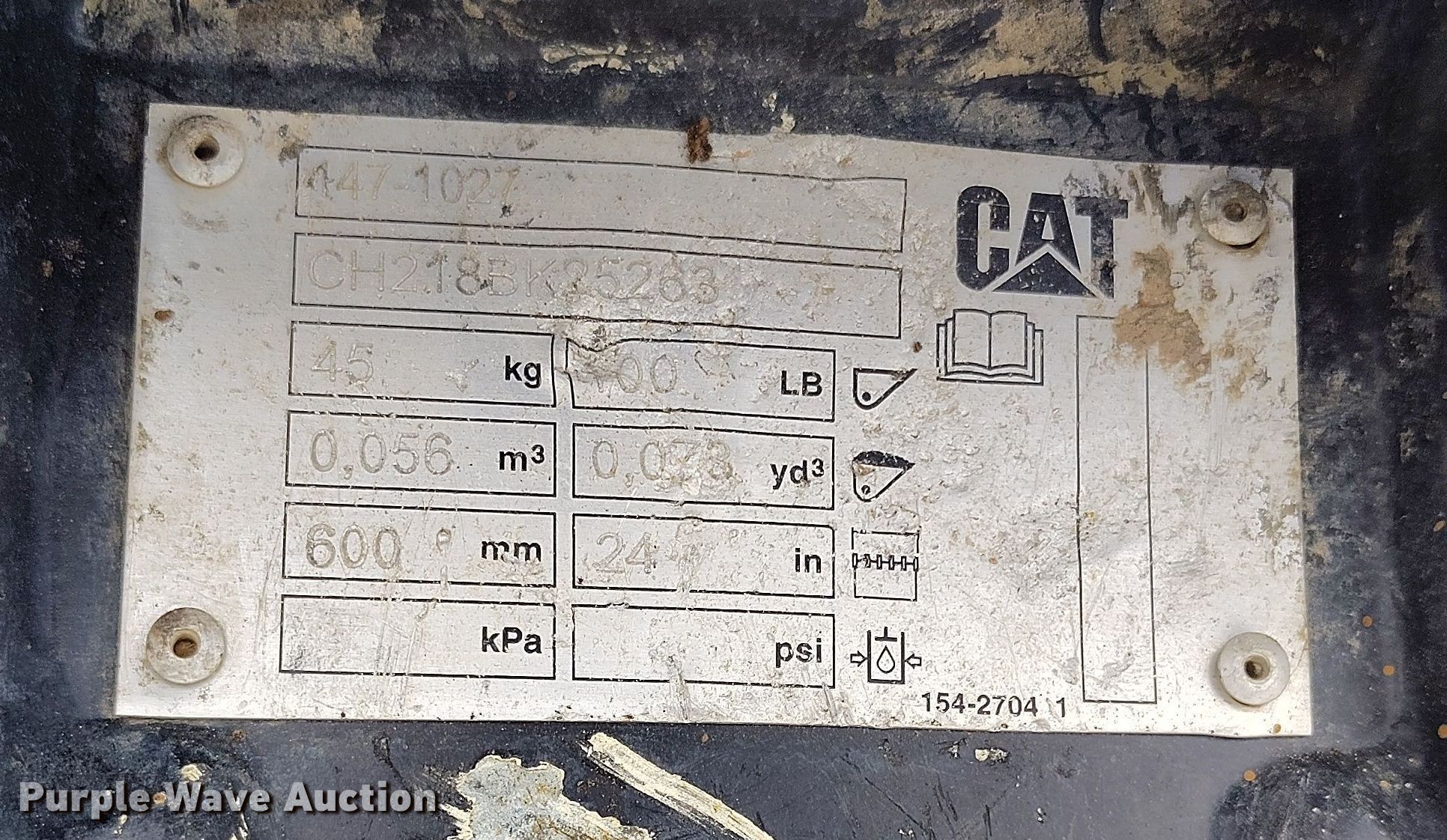 2019 Caterpillar 302CR mini excavator. Hours: 1,785 on meter, Serial: CAT00302KRHM00707. Engine Caterpillar C1.1, Cylinders: 3, Fuel type: Diesel. Transmission Hydrostatic, Two speed travel. Operators station Enclosed cab, AC, Heat. Features Auxiliary hydraulics, Counter weights, Backfill blade Width: 55", Boom Swing, Stick Stick length: 3' 10", Thumb: Hydraulic Caterpillar, Bucket Caterpillar, Width: 22", Teeth: 4. Tracks Width: 10", Rubber. PMC Power Motive Corporation. Colorado Springs, CO 80906