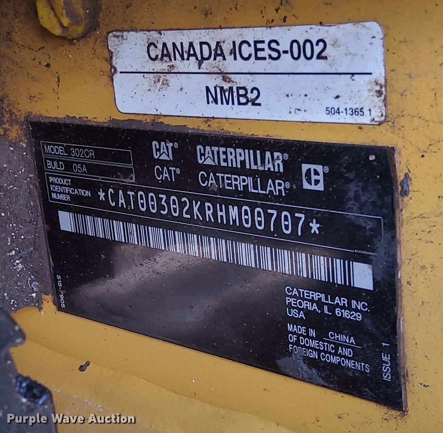 Purple Wave is selling a used Mini Excavator in Colorado. This item is a 2019 Caterpillar 302CR mini excavator with the following: Hours: 1,785 on meter, Serial: CAT00302KRHM00707