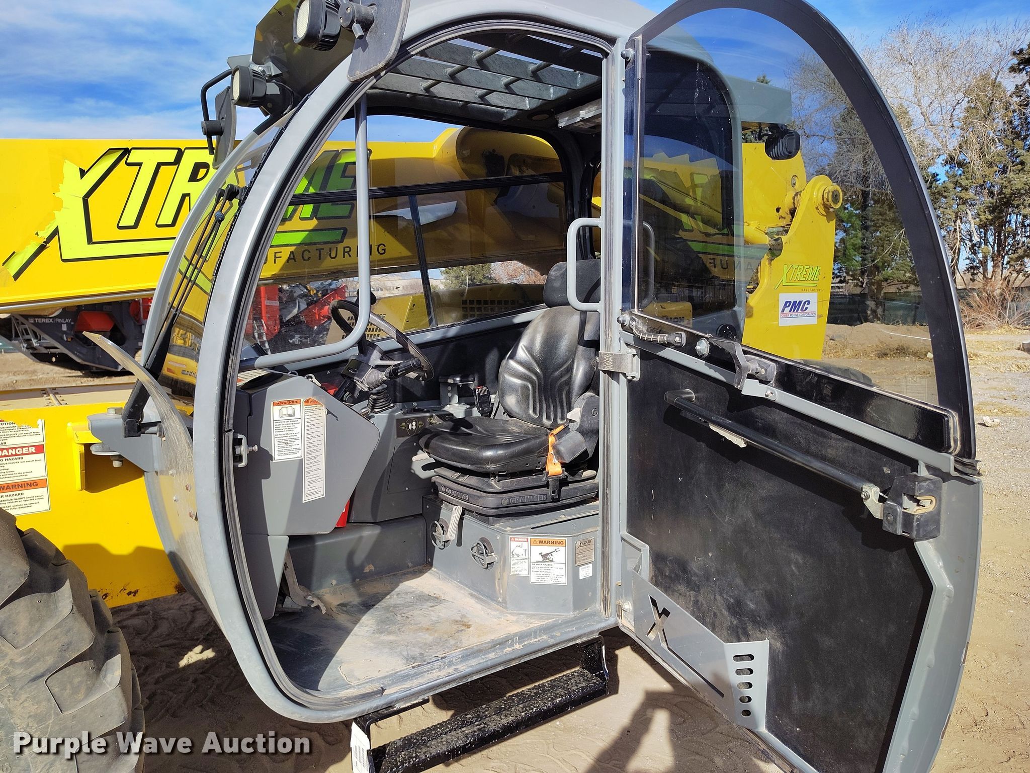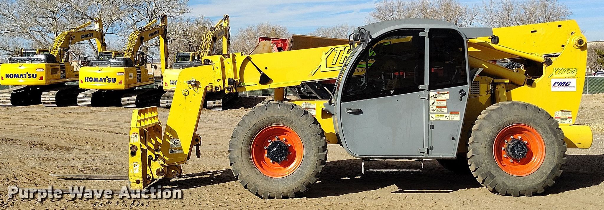 2018 Xtreme XR1147 telehandler. Hours: 2,584 on meter, Serial: XR1147-11-180500028. Engine Cylinders: 4, Fuel type: Diesel. Transmission Powershift, 4F - 4R, Differential lock. Operators station Enclosed cab, Heat, Steering: Crab, Four wheel. Features Maximum lift capacity: 11,000 lbs, Maximum lift height: 46', Boom stages: 3, Fork length: 60", Auxiliary hydraulics, Hydraulic leveling, Quick attach: Manual. Tires Size: 14.00-24, Foam filled. PMC Power Motive Corporation. Albuquerque, NM 87109