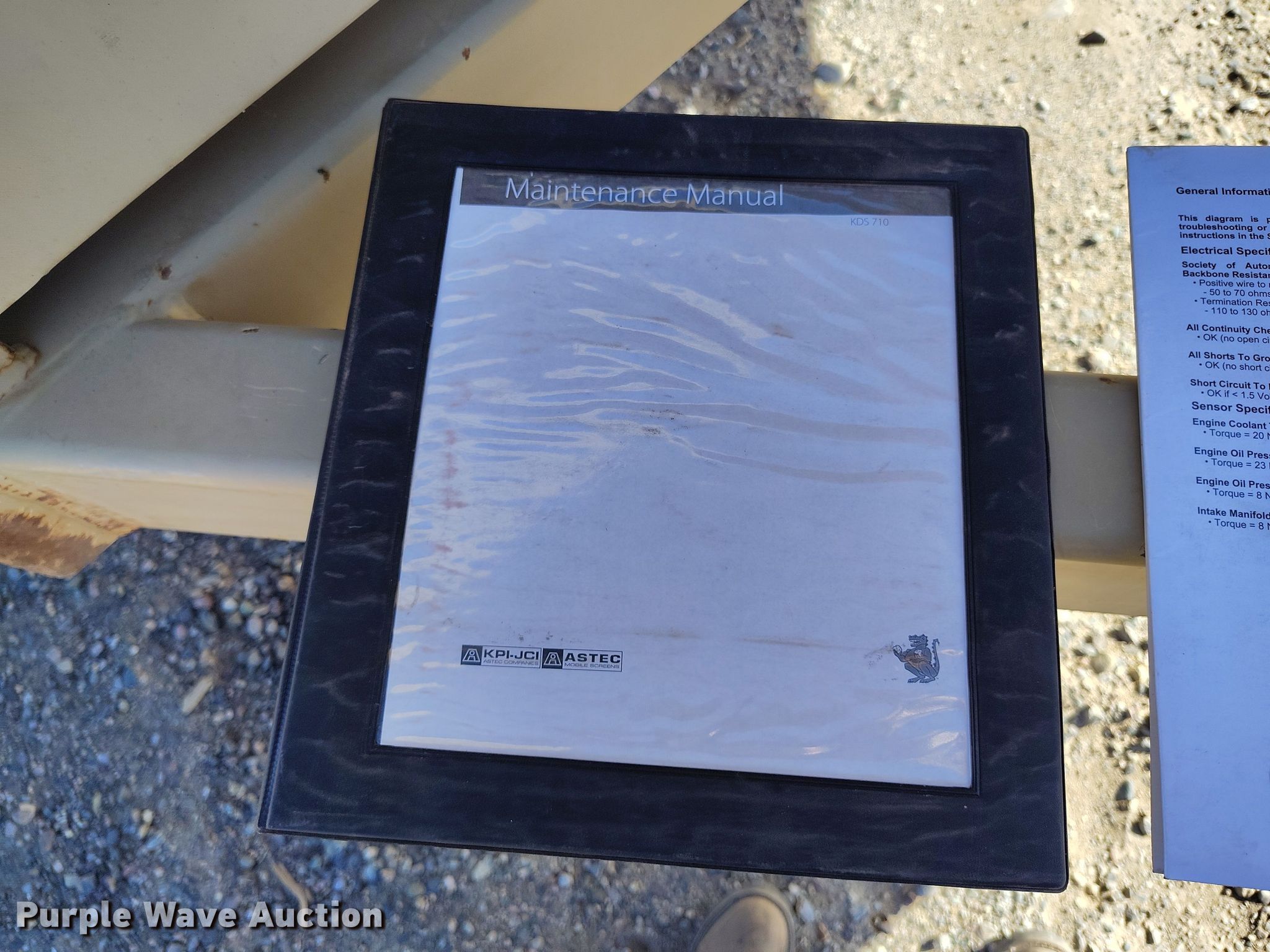2016 Astec KDS 710 screening plant. Hours: 425 on meter, Serial: 164344. Engine Cummins QSF2.8, Displacement: 2.8L, Cylinders: 4, Fuel type: Diesel. Features Screen deck Length: 10', Width: 7', Decks: Single, Screen size Top: 3", Grizzly, Vibrating. Tires Size: 11R22.5. Transfer of ownership documentation will be a bill of sale. PMC Power Motive Corporation. Bloomfield, NM 87413
