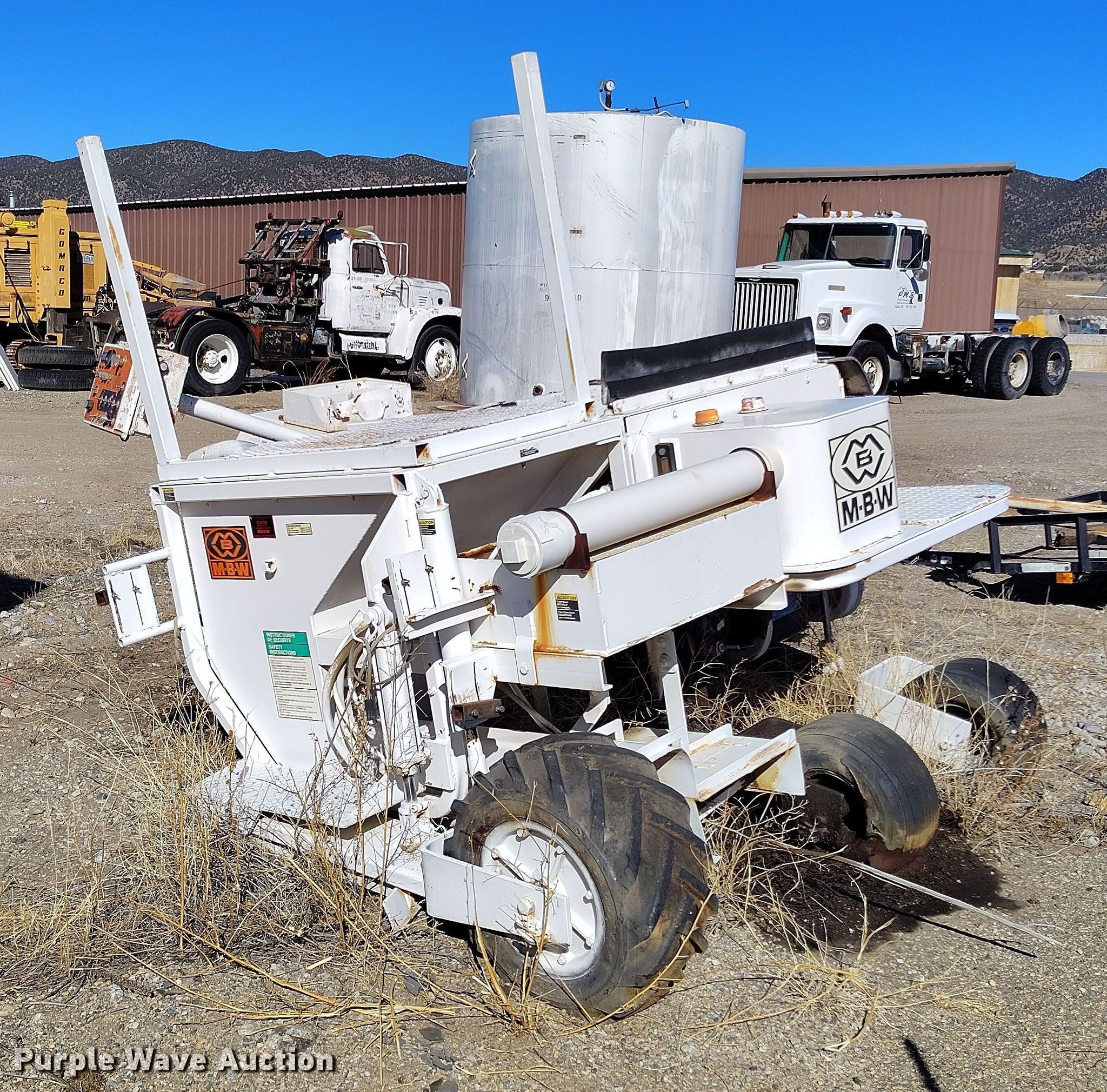 MBW CG100 curb machine. Hours: 1,227 on meter. Engine Cylinders: 4, Fuel type: Diesel. Transmission Hydrostatic. Features Paving width: 2', Hopper 72" L x 36" W. Tires Front: 23x10-12, Rear: 13x9.50-8. Notes Rear tires need replaced, Unknown operating condition. Pavement Maintenance Services, Inc.. Salida, CO 81201