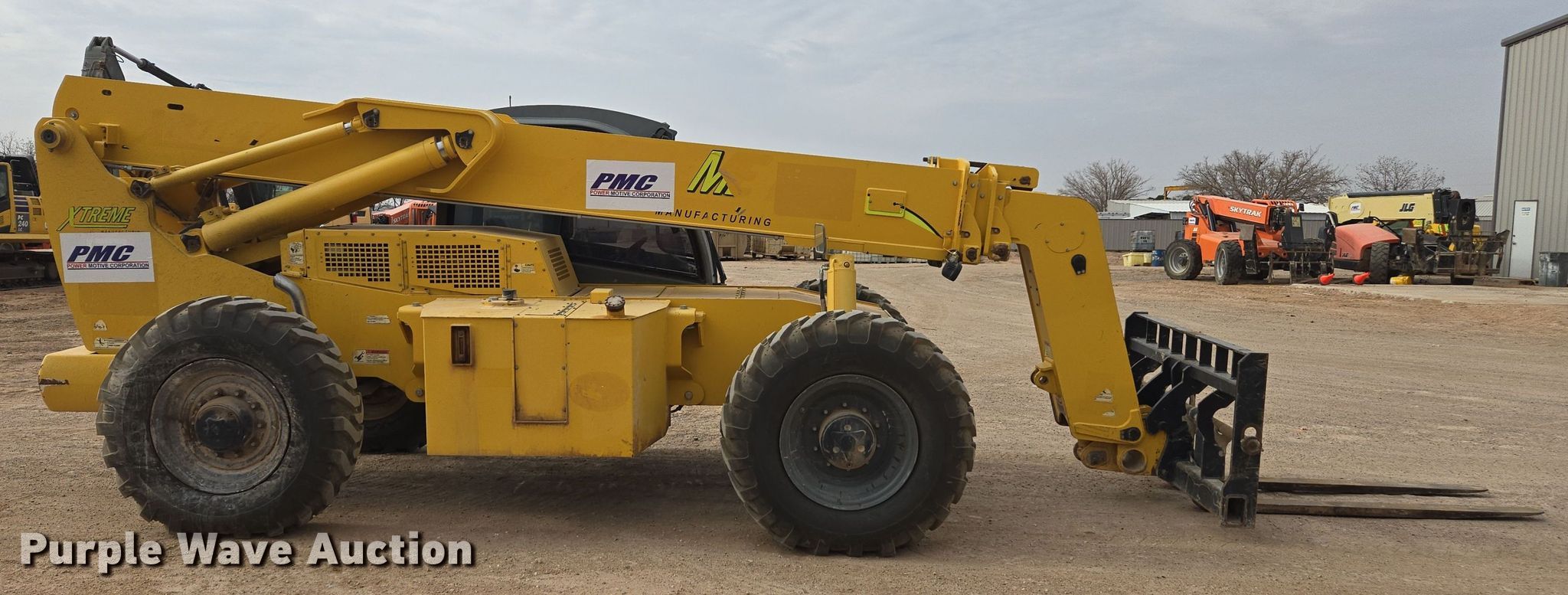 2018 Xtreme XR1147 telehandler. Hours: 3,175 on meter, Serial: XR114711180700036. Engine Cylinders: 4, Fuel type: Diesel. Transmission Powershift, 4F - 4R, Four wheel drive. Operators station Enclosed cab, AC, Heat, Steering: Crab, Four wheel. Features Maximum lift capacity: 11,000 lbs, Maximum lift height: 47', Boom stages: 3, Fork length: 72", Hydraulic leveling, Quick attach: Manual. Tires Size: 14.00-24, Foam filled. PMC Power Motive Corporation - Open Inspection March 19 & 26. Carlsbad, NM 88220