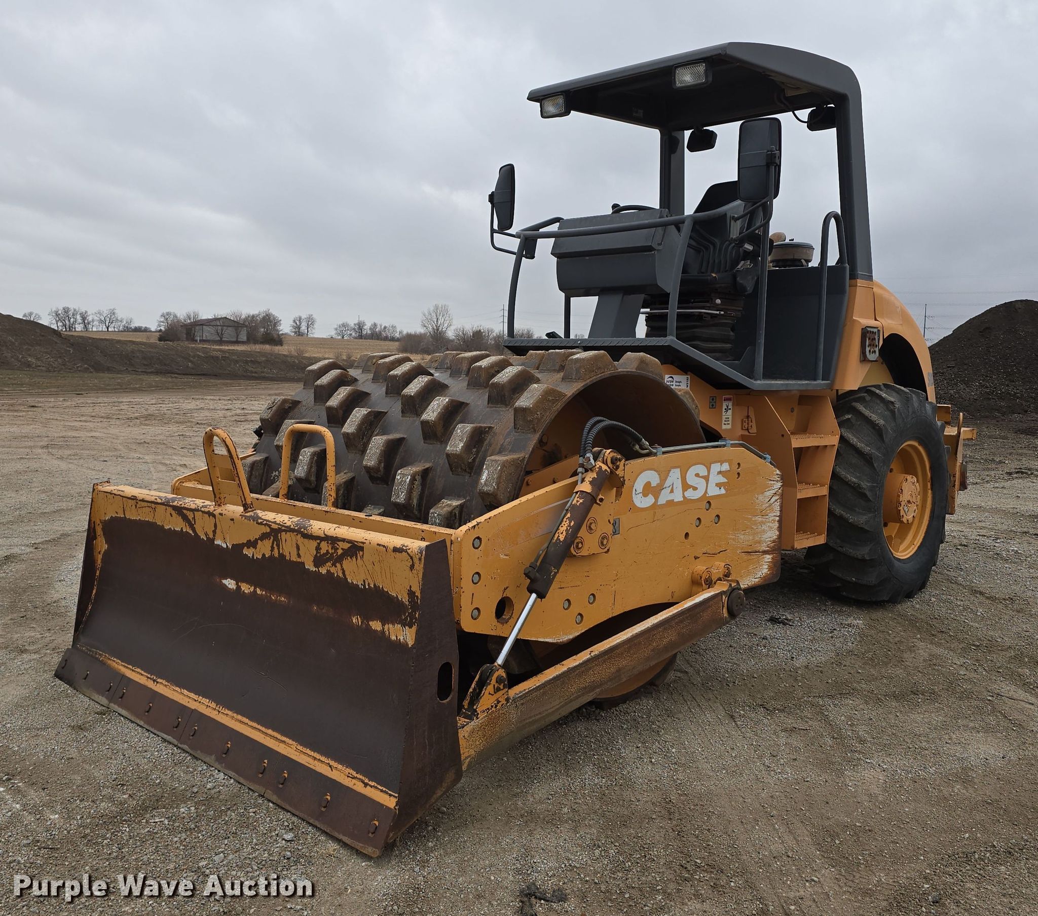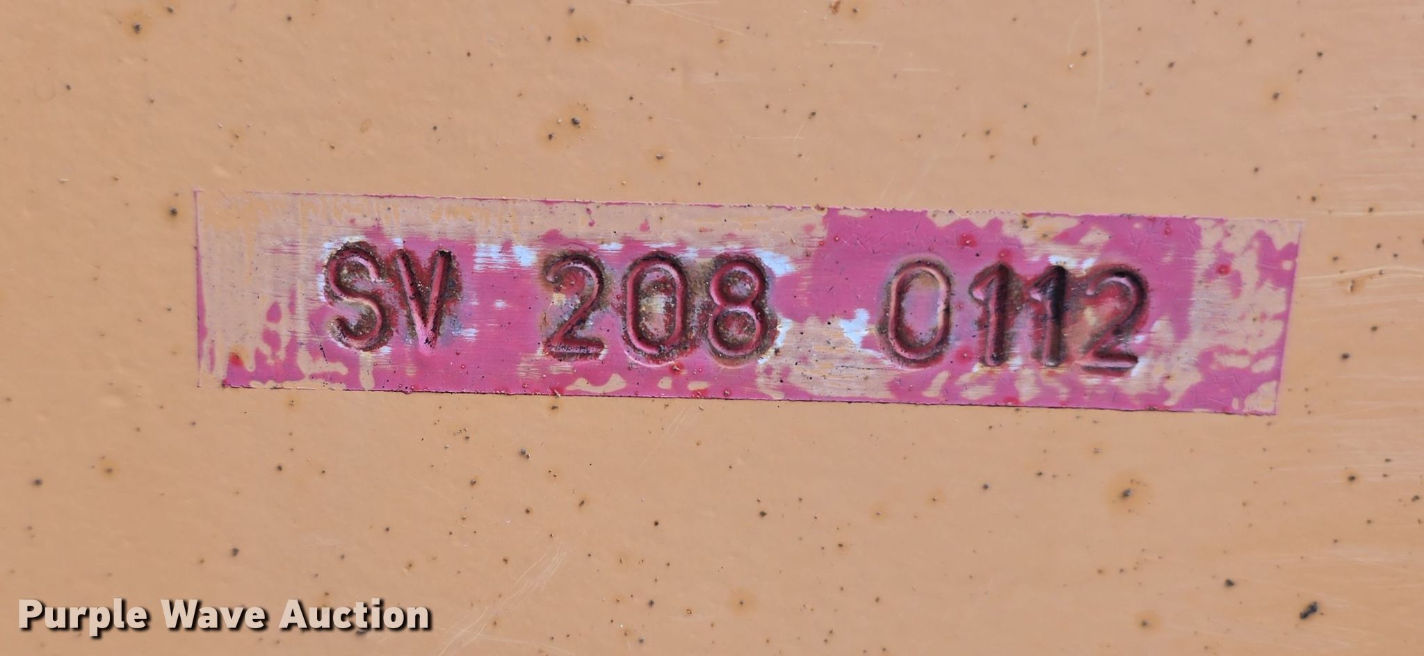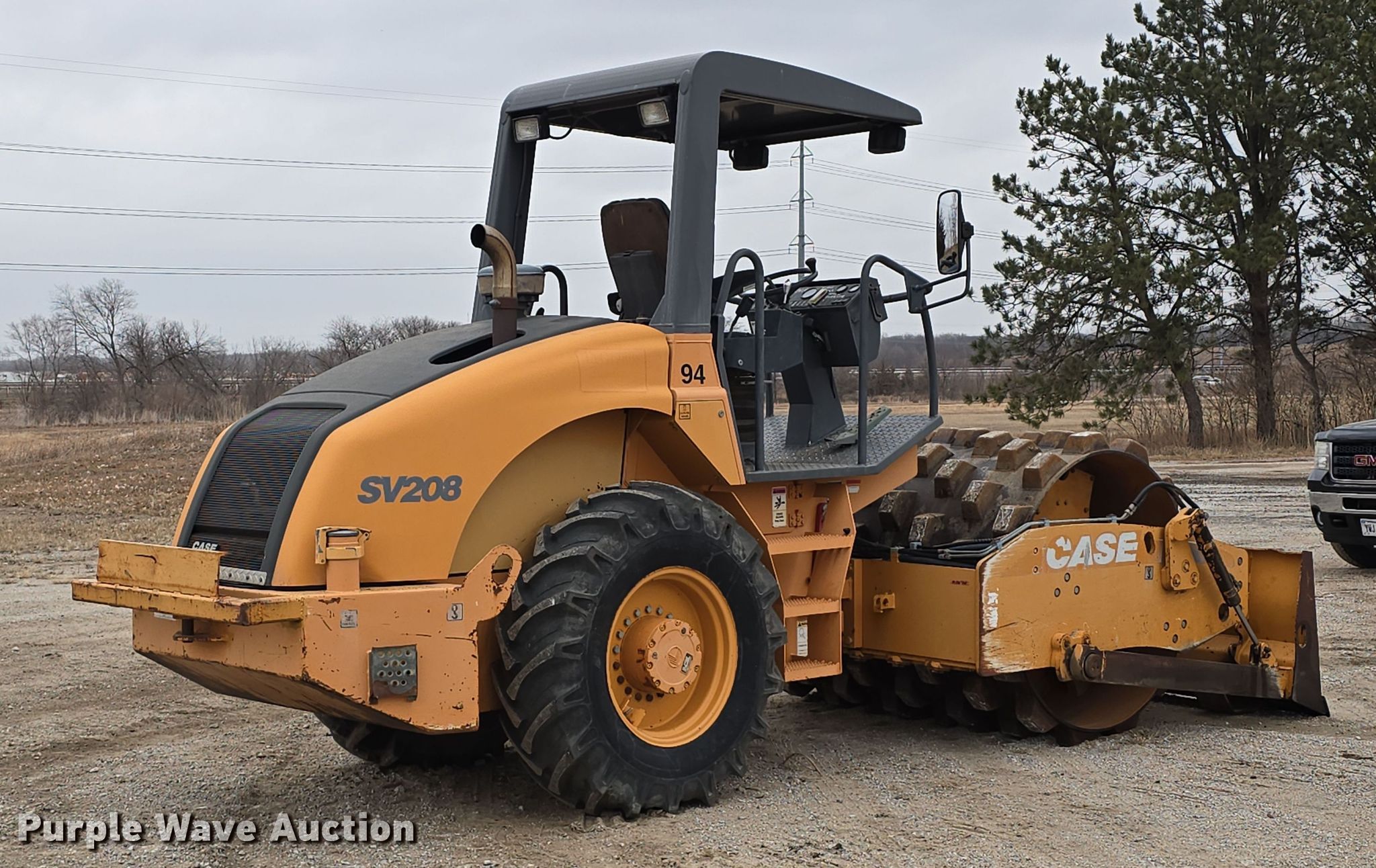 2005 Case SV208 single drum vibratory roller. Hours: 2,648 on meter, Serial: DDD000672. Engine Cummins BP4.5-99C, Displacement: 4.5L, Cylinders: 4, Fuel type: Diesel. Transmission Hydrostatic. Operators station OROPS. Features Drum: Padfoot, Vibratory system: Single, Front drum Width: 66", Diameter: 48", Drum scrapers: Front, Front blade width: 87". Tires Size: 14.9-24. Notes Hydraulic leak. LeGrande Excavating. 7601 South 1st Street. Lincoln, NE 68512