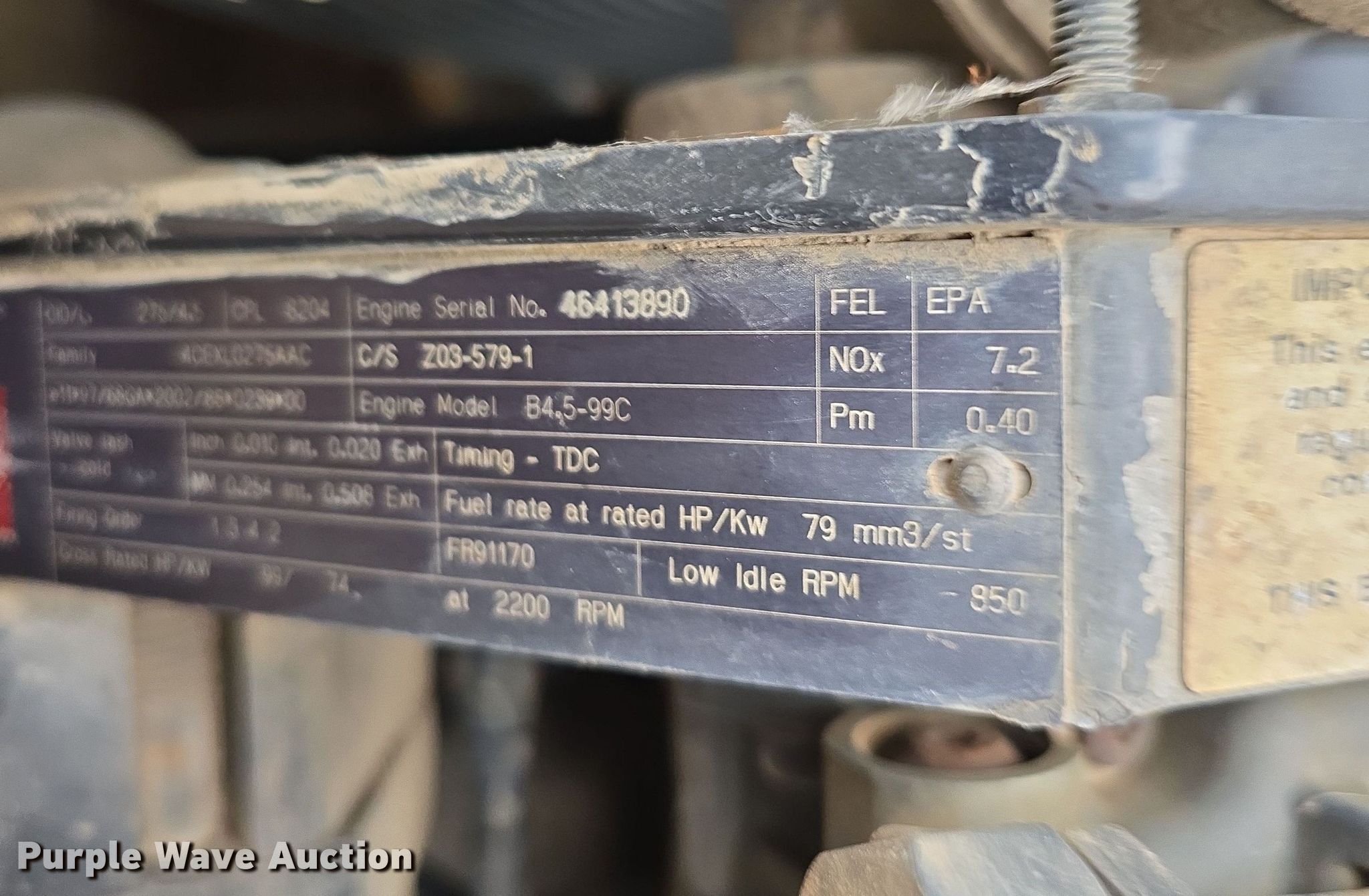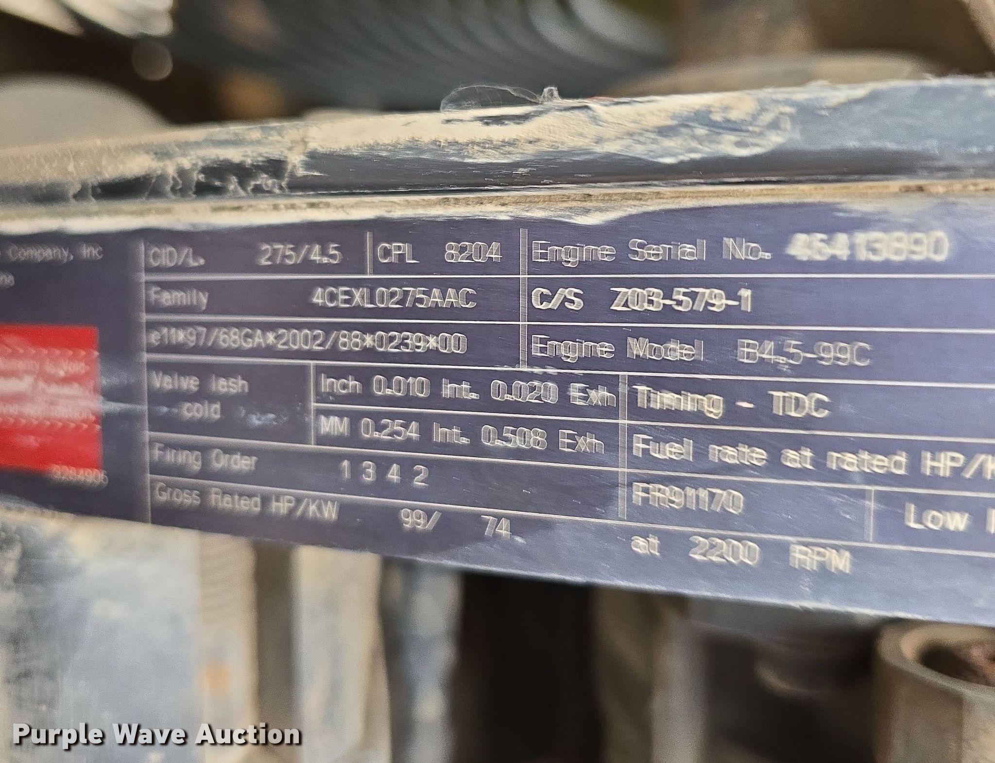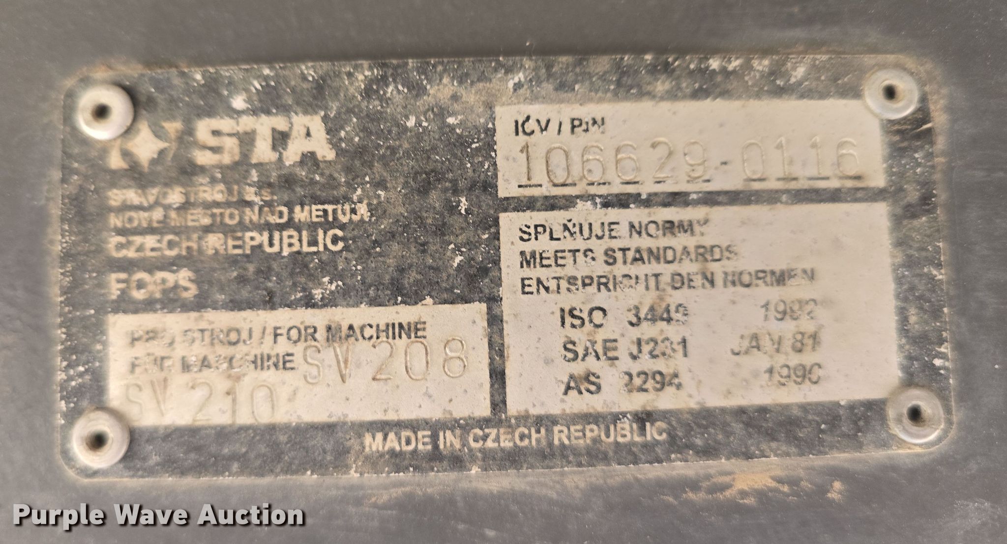 2005 Case SV208 single drum vibratory roller. Hours: 2,648 on meter, Serial: DDD000672. Engine Cummins BP4.5-99C, Displacement: 4.5L, Cylinders: 4, Fuel type: Diesel. Transmission Hydrostatic. Operators station OROPS. Features Drum: Padfoot, Vibratory system: Single, Front drum Width: 66", Diameter: 48", Drum scrapers: Front, Front blade width: 87". Tires Size: 14.9-24. Notes Hydraulic leak. LeGrande Excavating. 7601 South 1st Street. Lincoln, NE 68512