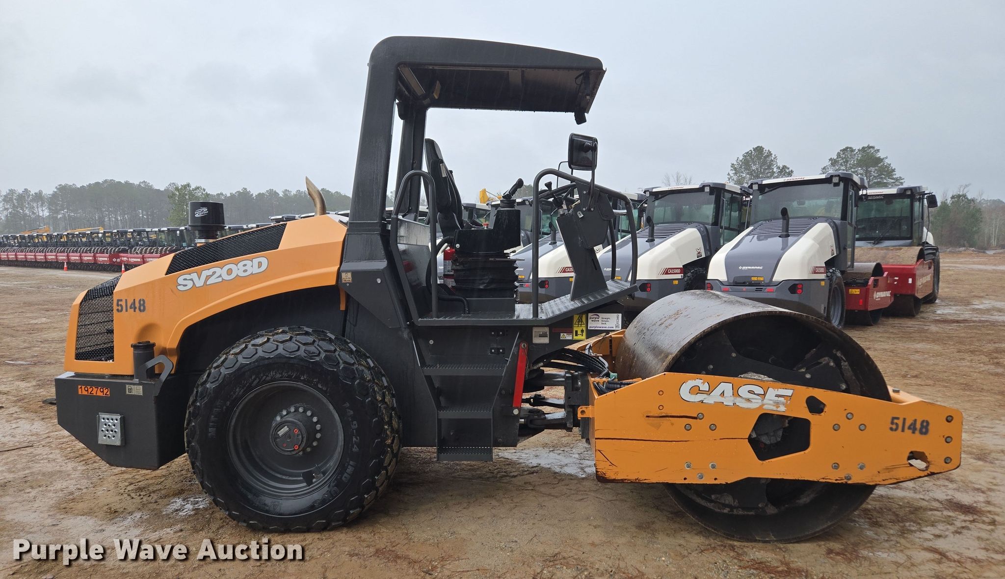 2019 Case SV208D single drum vibratory roller. Hours: 968 on meter, Serial: NKWTA2270. Engine Deutz TCD 3.6 L4, Displacement: 3.621L, Cylinders: 4, Fuel type: Diesel. Transmission Hydrostatic, Two speed travel. Operators station OROPS, Vandal cover. Features Drum: Smooth, Vibratory system: Single, Front drum Width: 66", Drum scrapers: Front. Tires Size: 14.9-24. Dealer Inventory. Claxton, GA 30417
