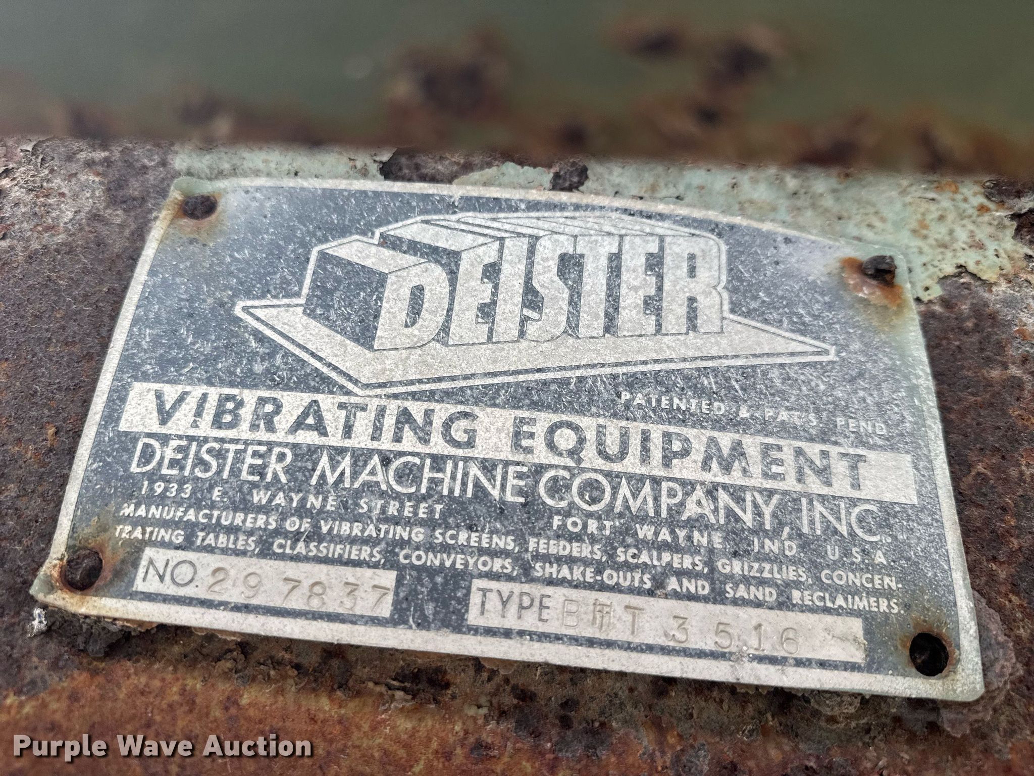 Purple Wave is selling a used Screen or Screening Plant in Florida. This item is a Deister screening plant with the following: Serial: 297837