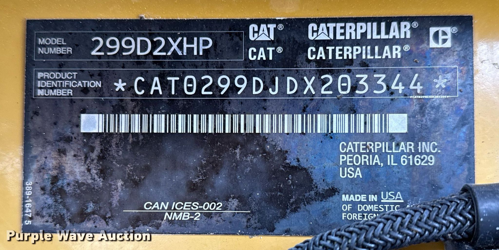 Purple Wave is selling a used Tracked Skid Steer Loader in Texas. This item is a 2018 Caterpillar 299D2 XHP tracked skid steer loader with the following: Hours: 1,902.7 on meter, Serial: CAT0299DJDX203344
