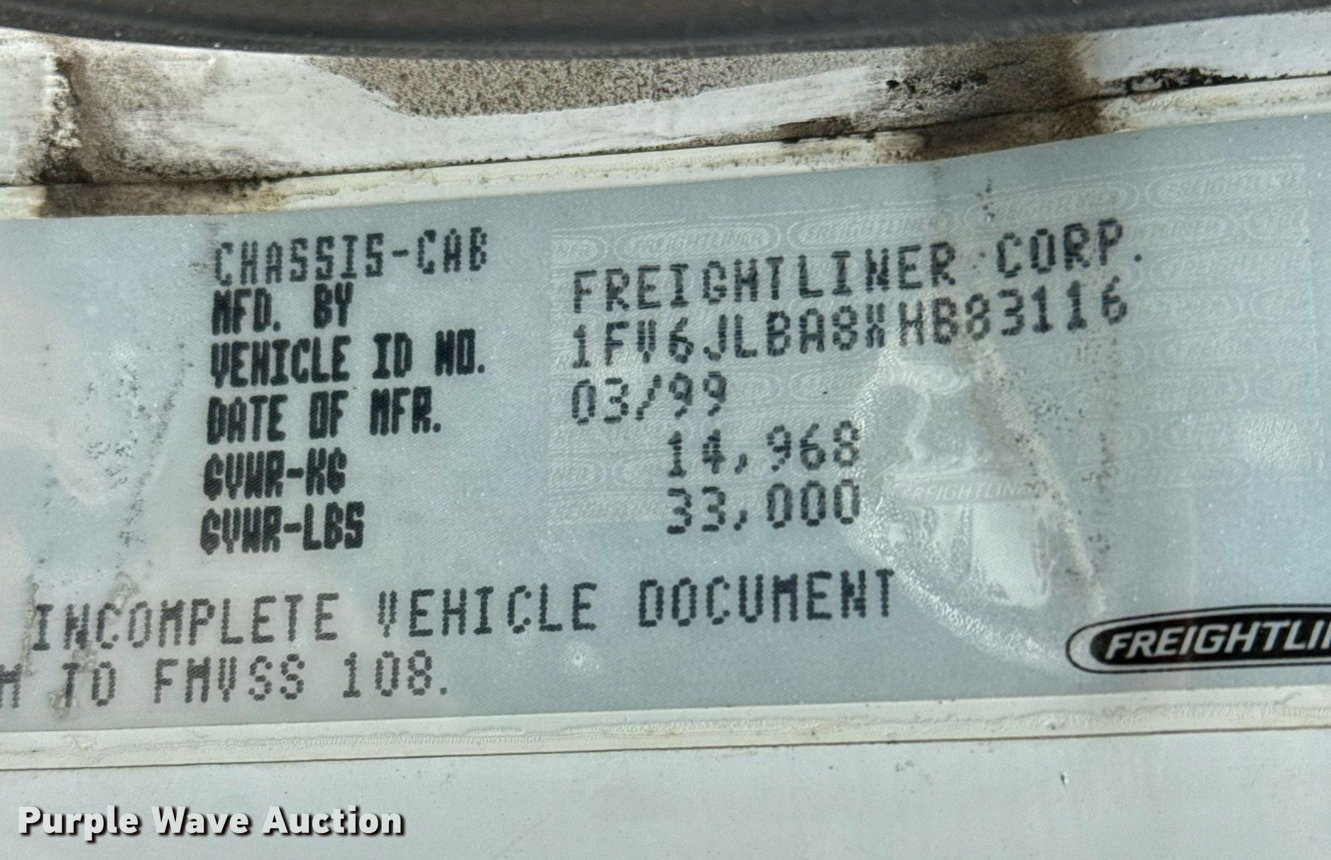 Purple Wave is selling a used Bucket Truck in Texas. This item is a 1999 Freightliner FL80 bucket truck with the following: Miles: 40,647 on odometer, Hours: 3,072 on meter, VIN: 1FV6JLBA8XHB83116