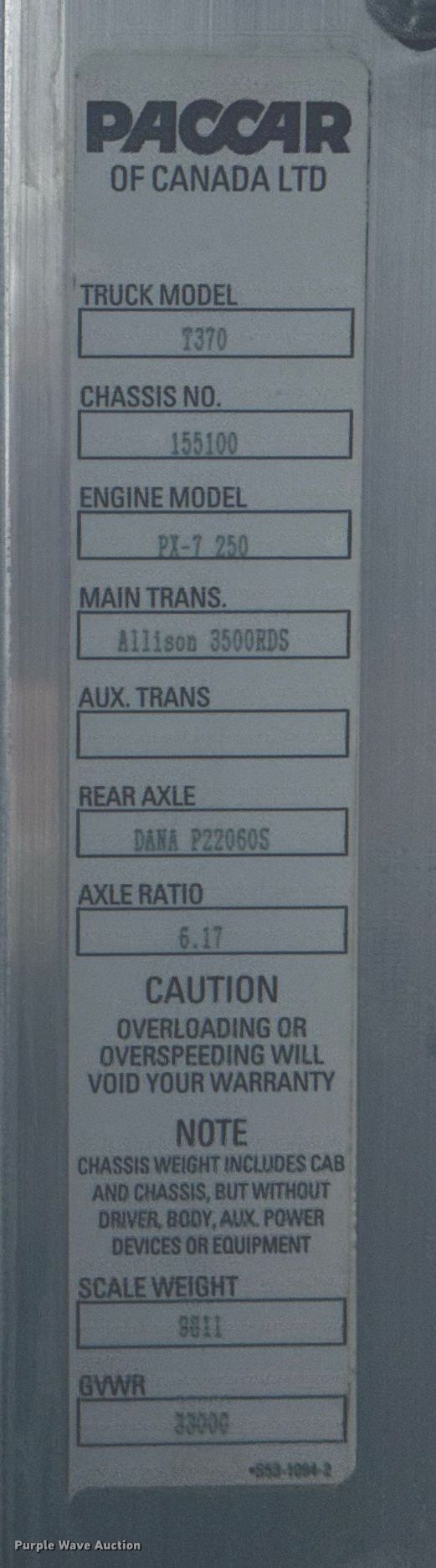 2017 Kenworth T370 sewer jetter truck. Miles: 73,332 on odometer, Hours: 10,793 on meter, VIN: 2NKHHM7X5HM155100. Engine Paccar PX-7, Serial: 73984393, Displacement: 6.7L, Cylinders: 6, Fuel type: Diesel, HP: 250, Engine brake. Transmission Automatic. Chassis Axles: Single, Suspension: Spring, Brakes: Air, PTO, GVWR: 33,000 lbs. Interior AC, Heat, Power windows, Cruise control, Brake controller. Features Tank bed Sewer Equipment Co of America, Serial: 6957, Hose reel Rear, Diameter: 1". Tires Size: 11R22.5. Notes Unknown operating condition of bed features. Oklahoma title. Seller is an Oklahoma licensed motor vehicle dealer. Title will be assigned and distributed by the dealer. Please contact the seller for distribution questions. Title distribution may be delayed up to 30 days from verification of funds. 15107 North 137th East Avenue. Collinsville, OK 74021