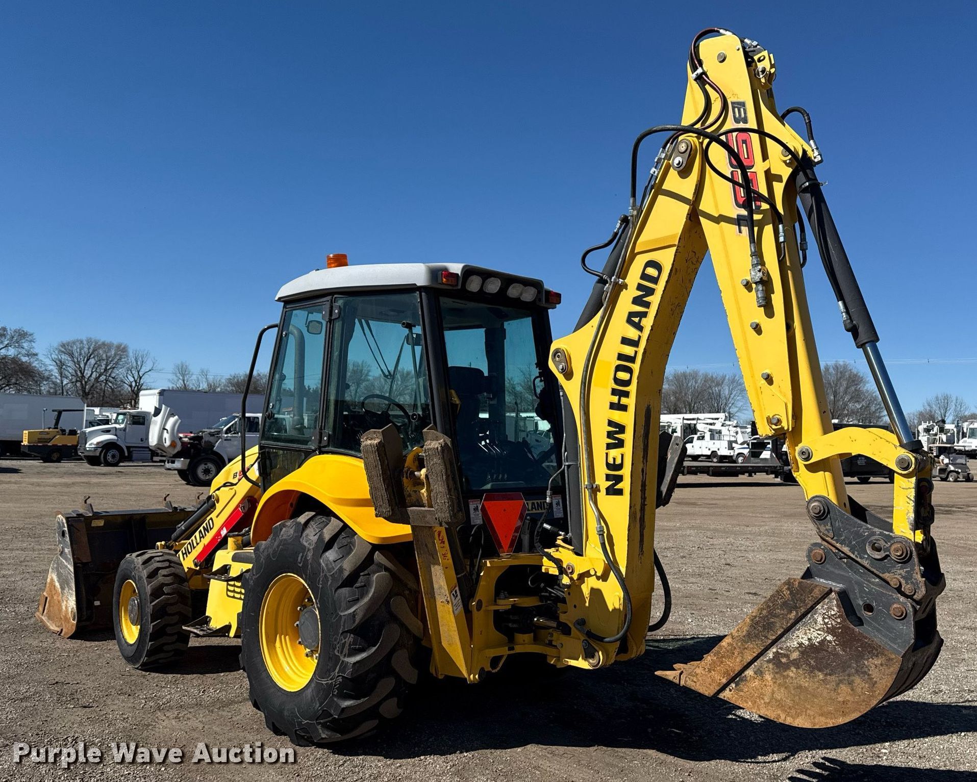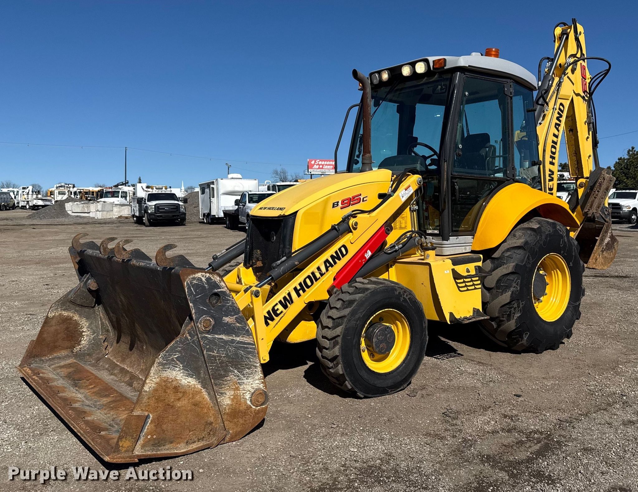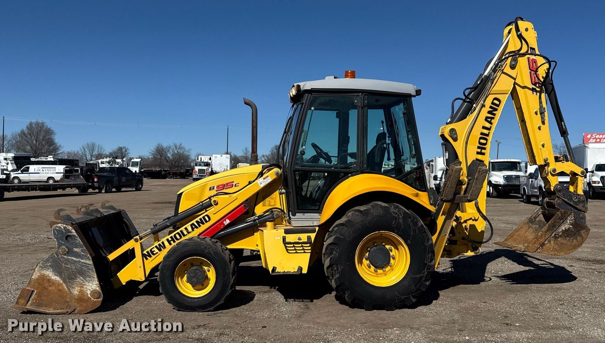 Purple Wave is selling a used Tractor Loader Backhoe in Oklahoma. This item is a 2014 New Holland B95C backhoe with the following: Hours: 4,671 on meter, Serial: FNH0B95CNEHH02676