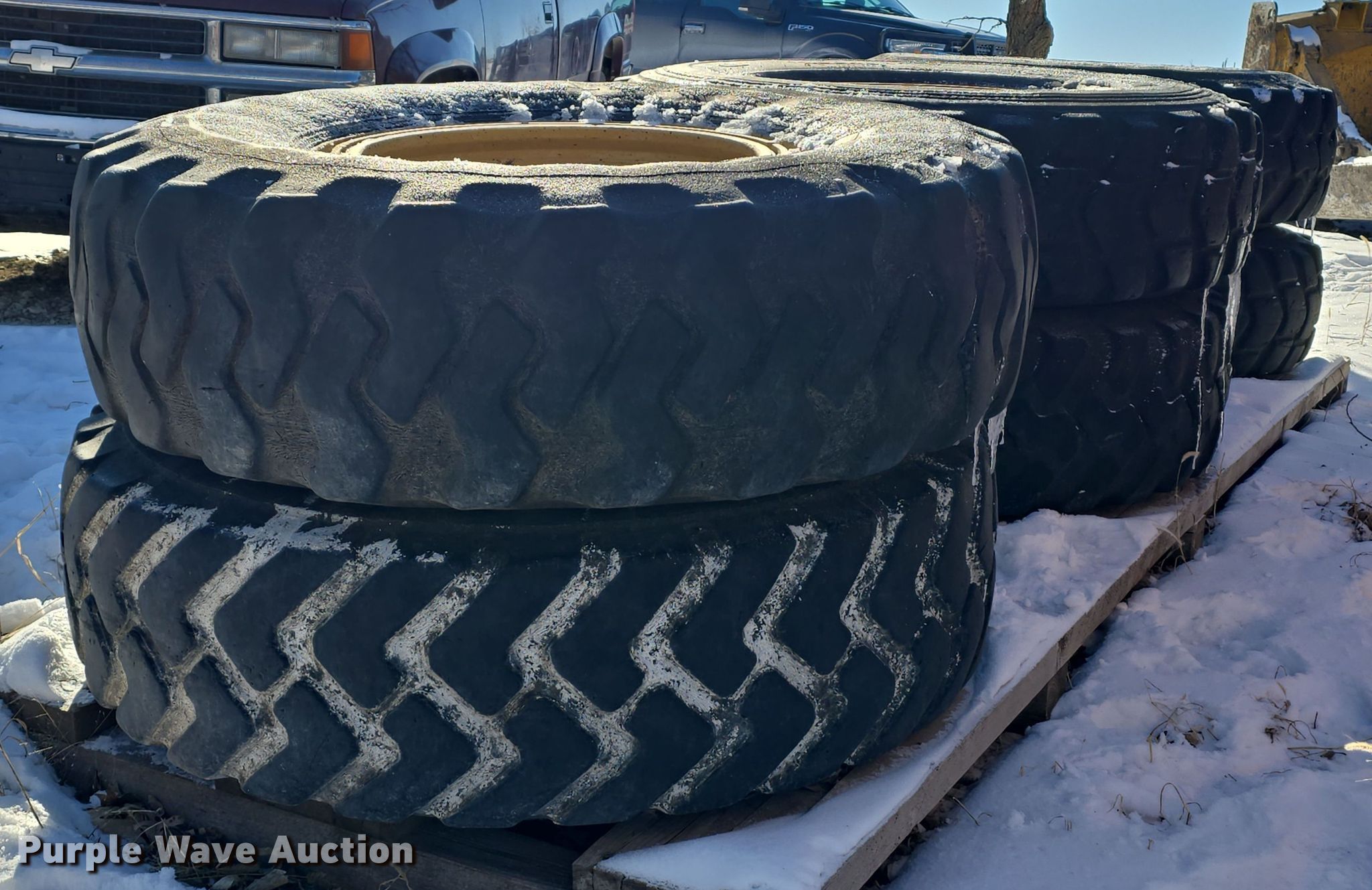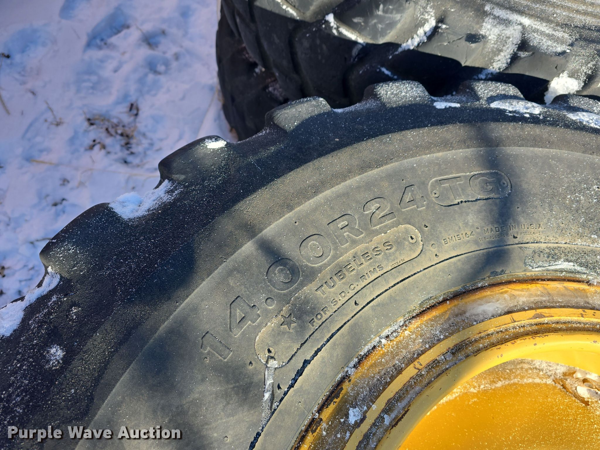 Purple Wave is selling a used Industrial Tires or Tracks in Kansas. This item is a (6) 14.00R24TG tires and wheels with the following: Removed from Caterpillar 14M2 motor grader