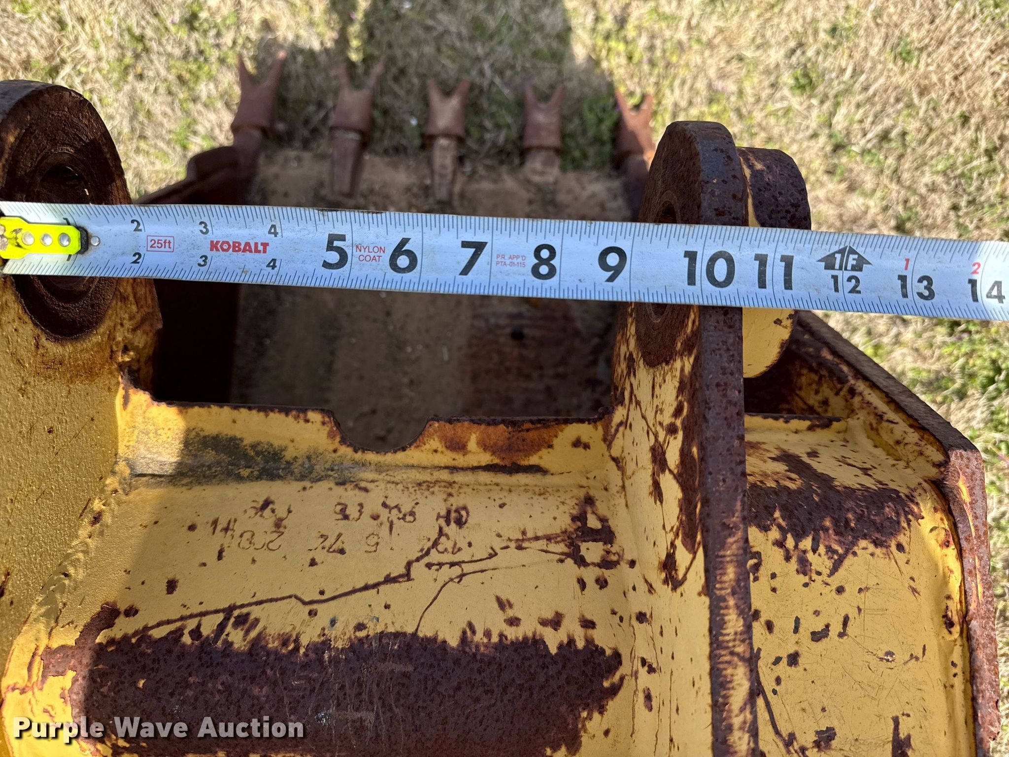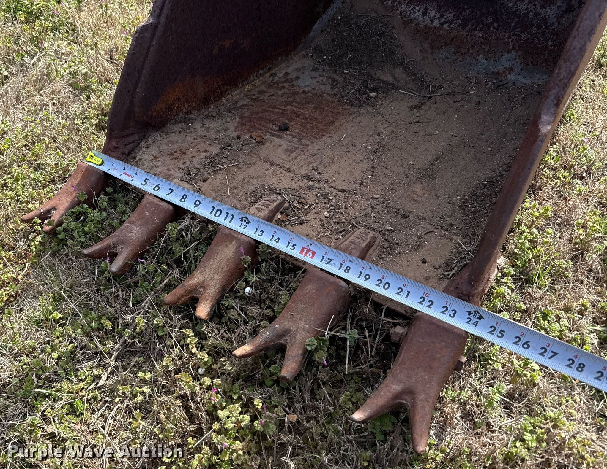 Purple Wave is selling a used Backhoe Attach. in Texas. This item is a Backhoe bucket with the following: Width: 24", Teeth: 5, Removed from Caterpillar 416 backhoe