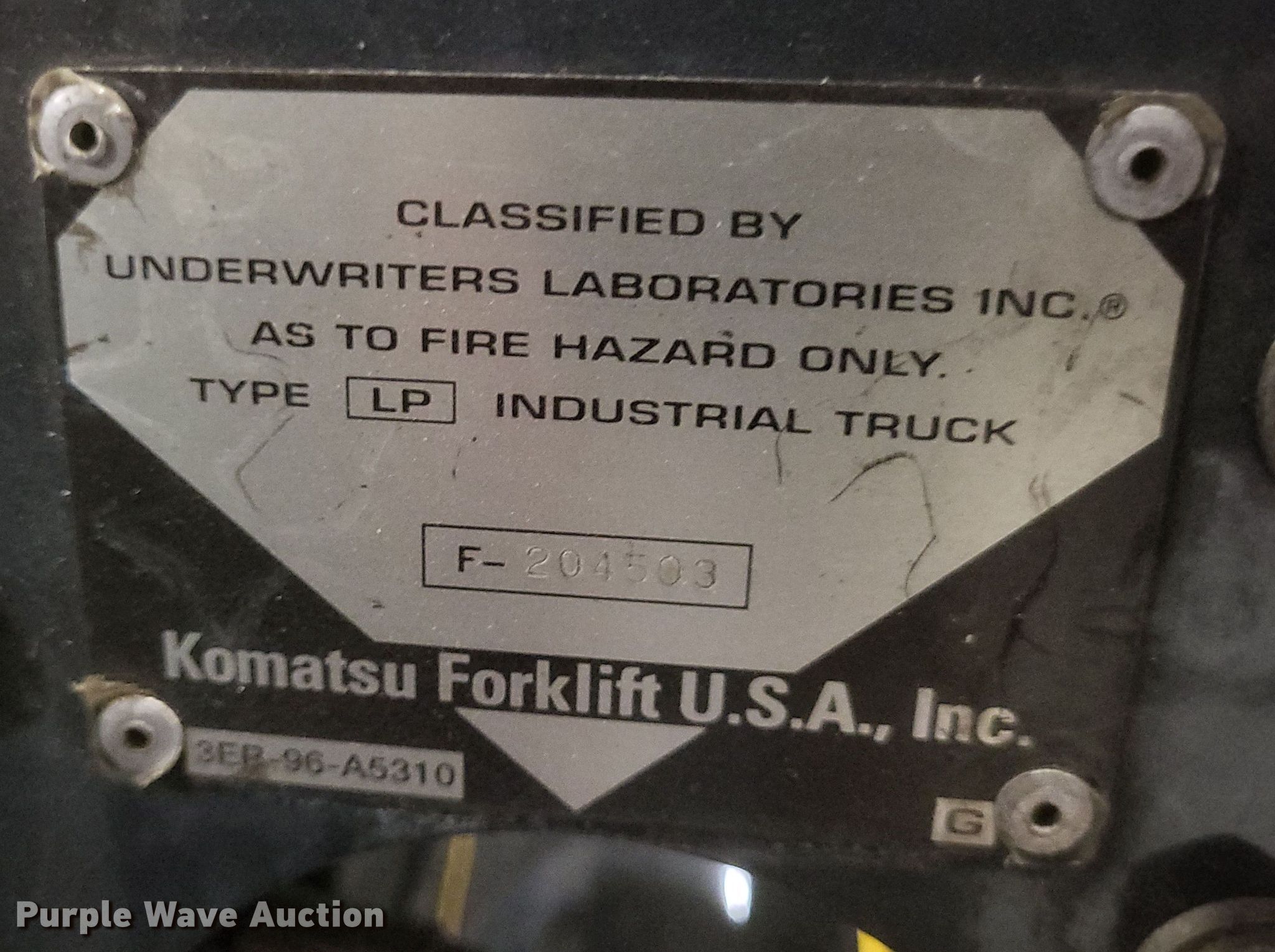 Purple Wave is selling a used Warehouse Forklift in Missouri. This item is a Komatsu FG25GT-14 forklift with the following: Hours: 4,969 on meter, Miles or hours may vary, unit still in use