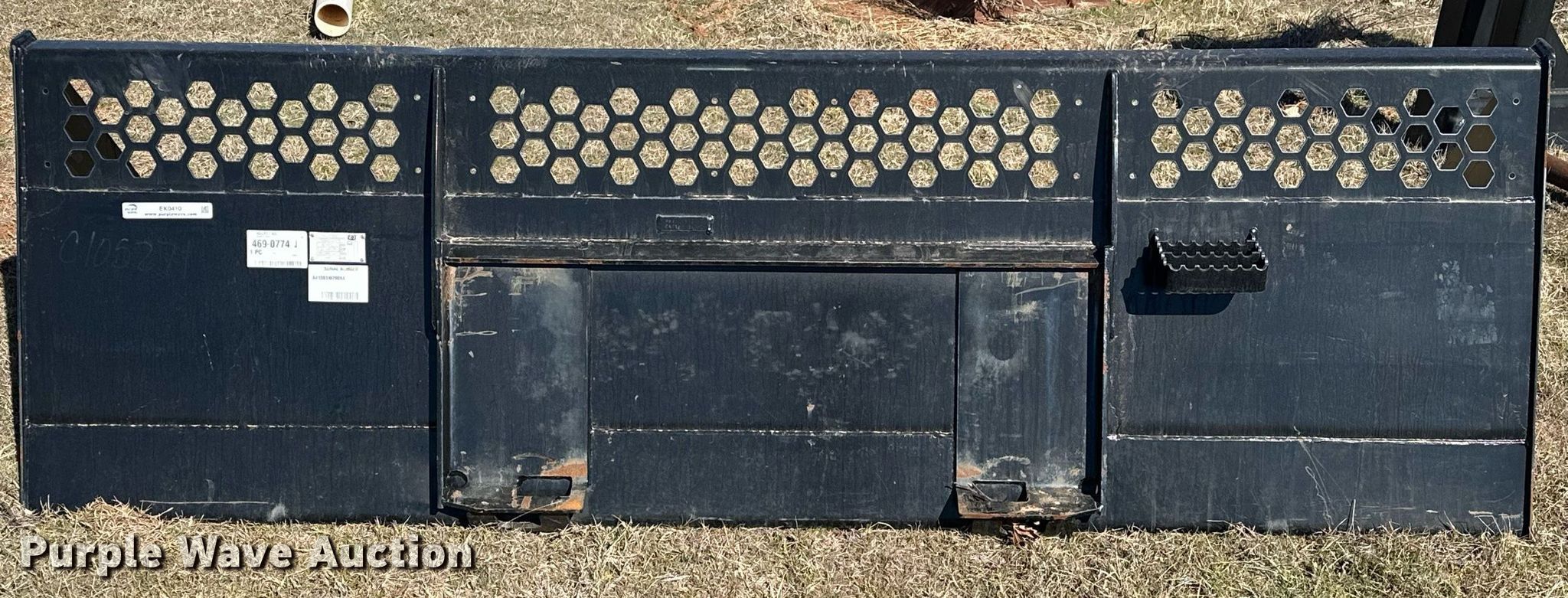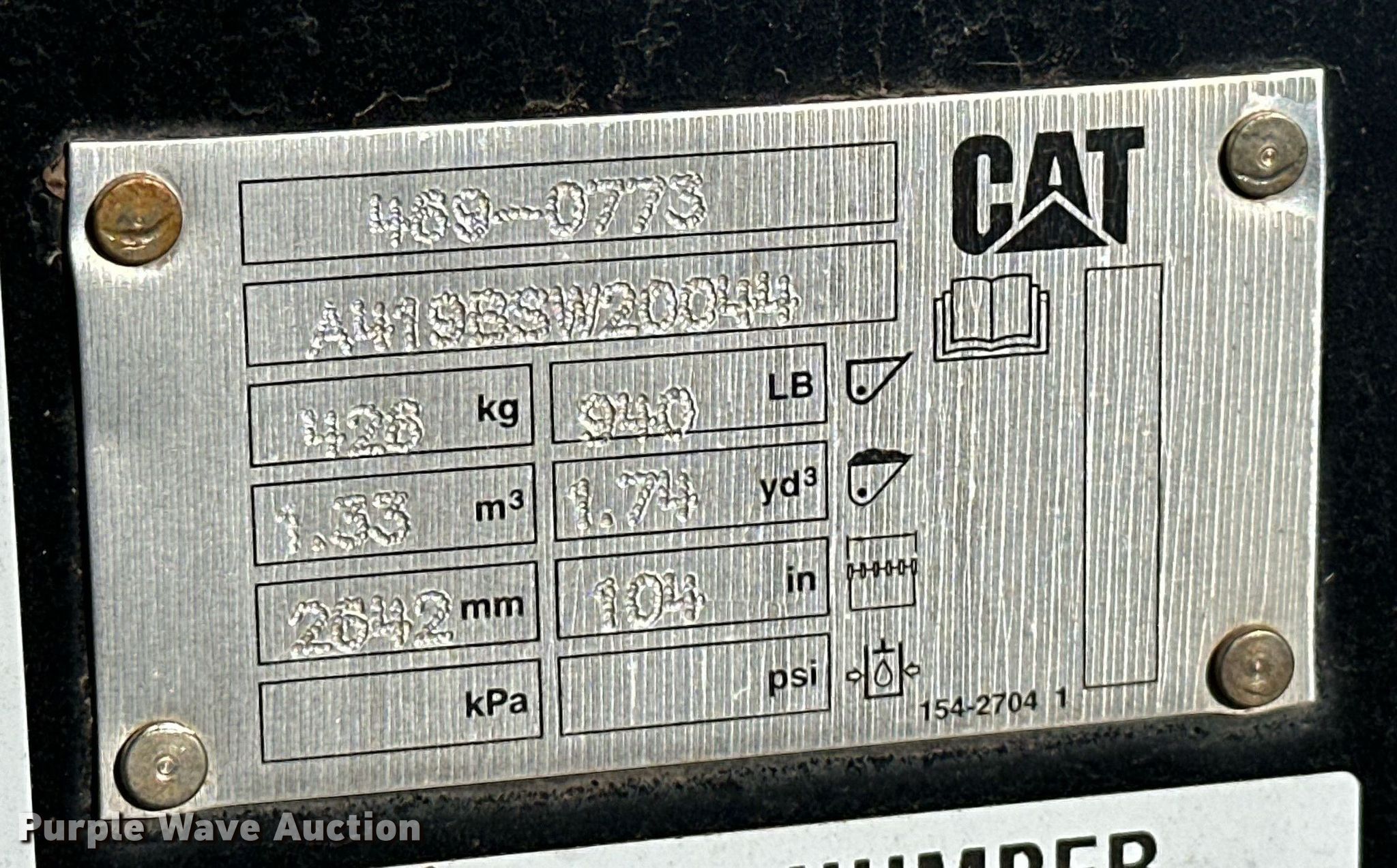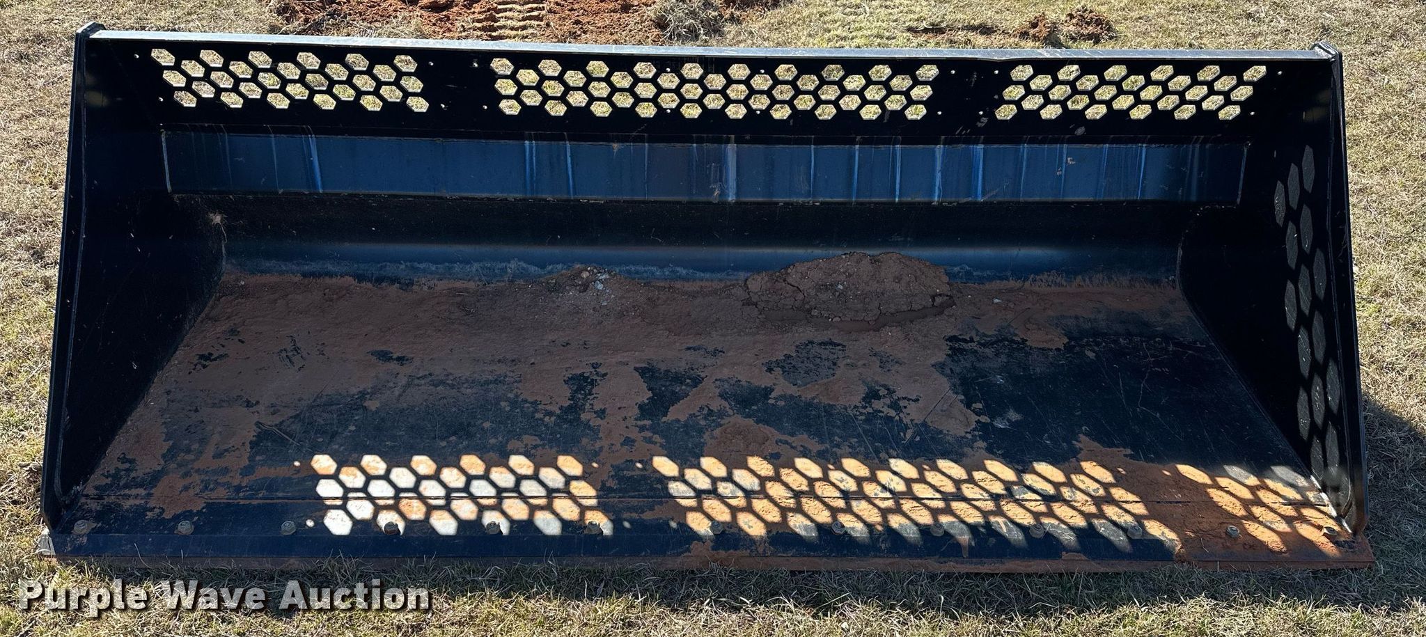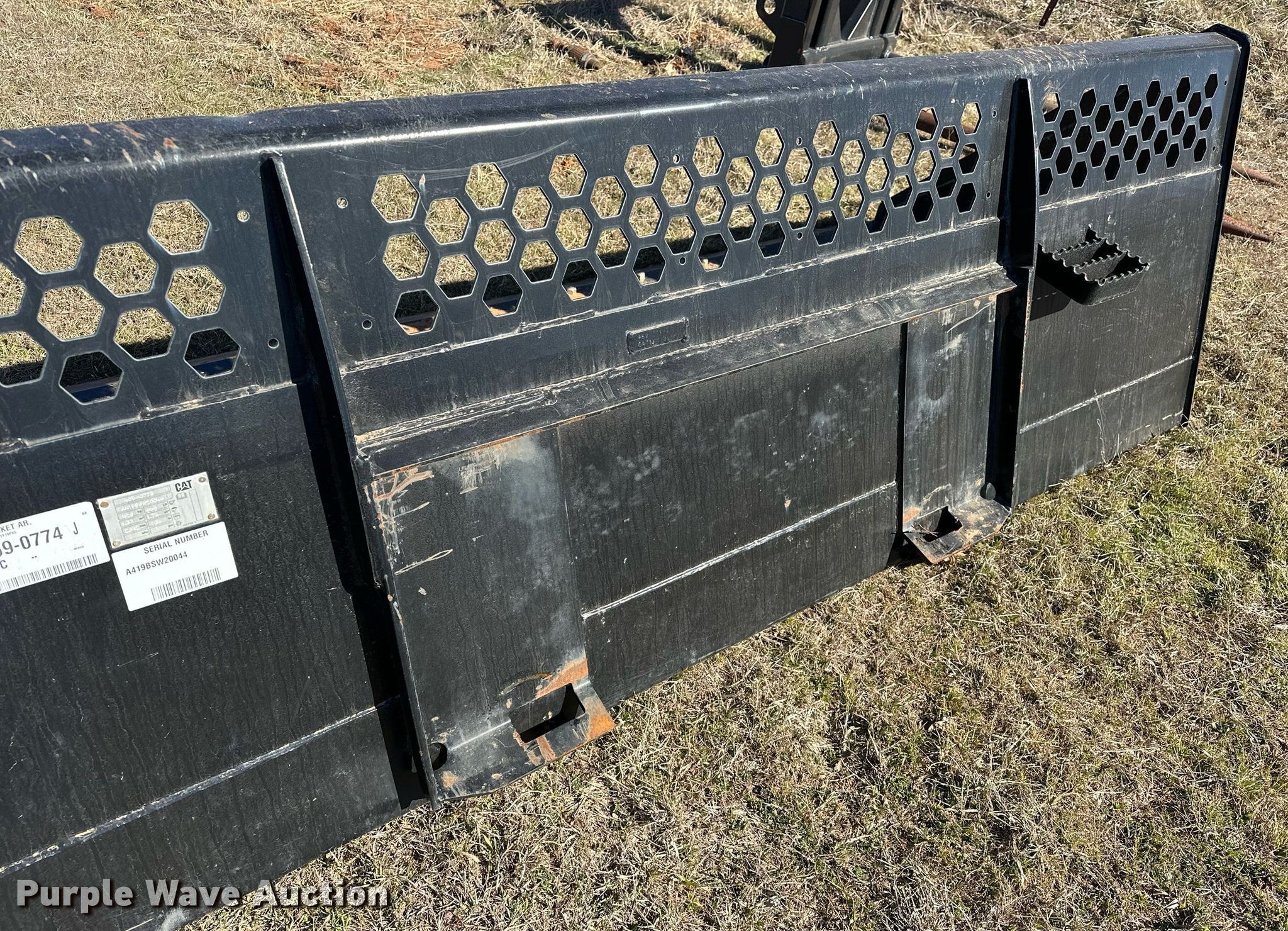 Purple Wave is selling a used Skid Steer Attach. in Oklahoma. This item is a Caterpillar 469-0773 skid steer bucket with the following: Width: 104", Cutting edge: Bolt-on