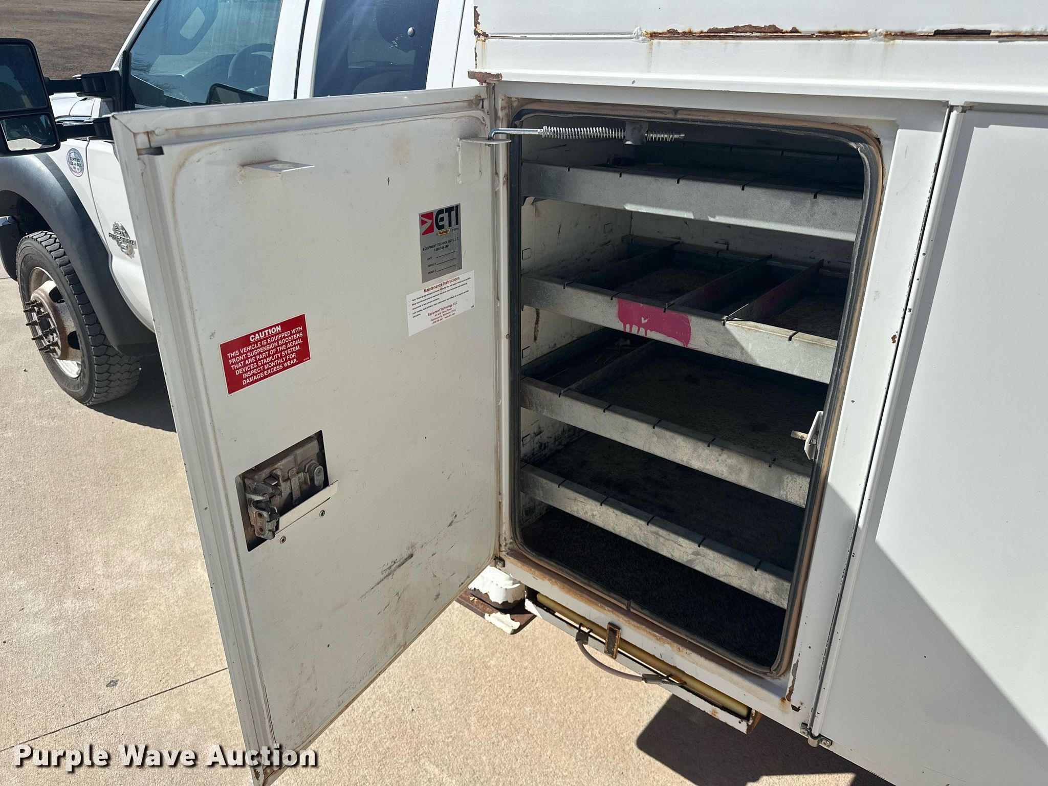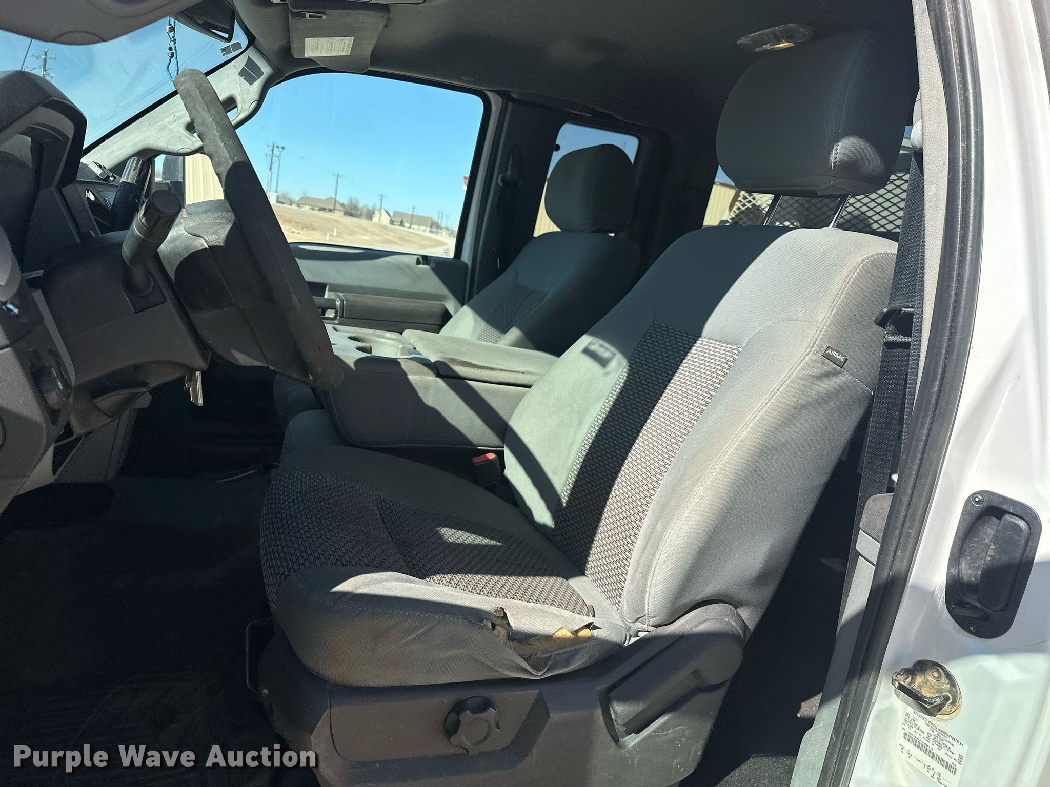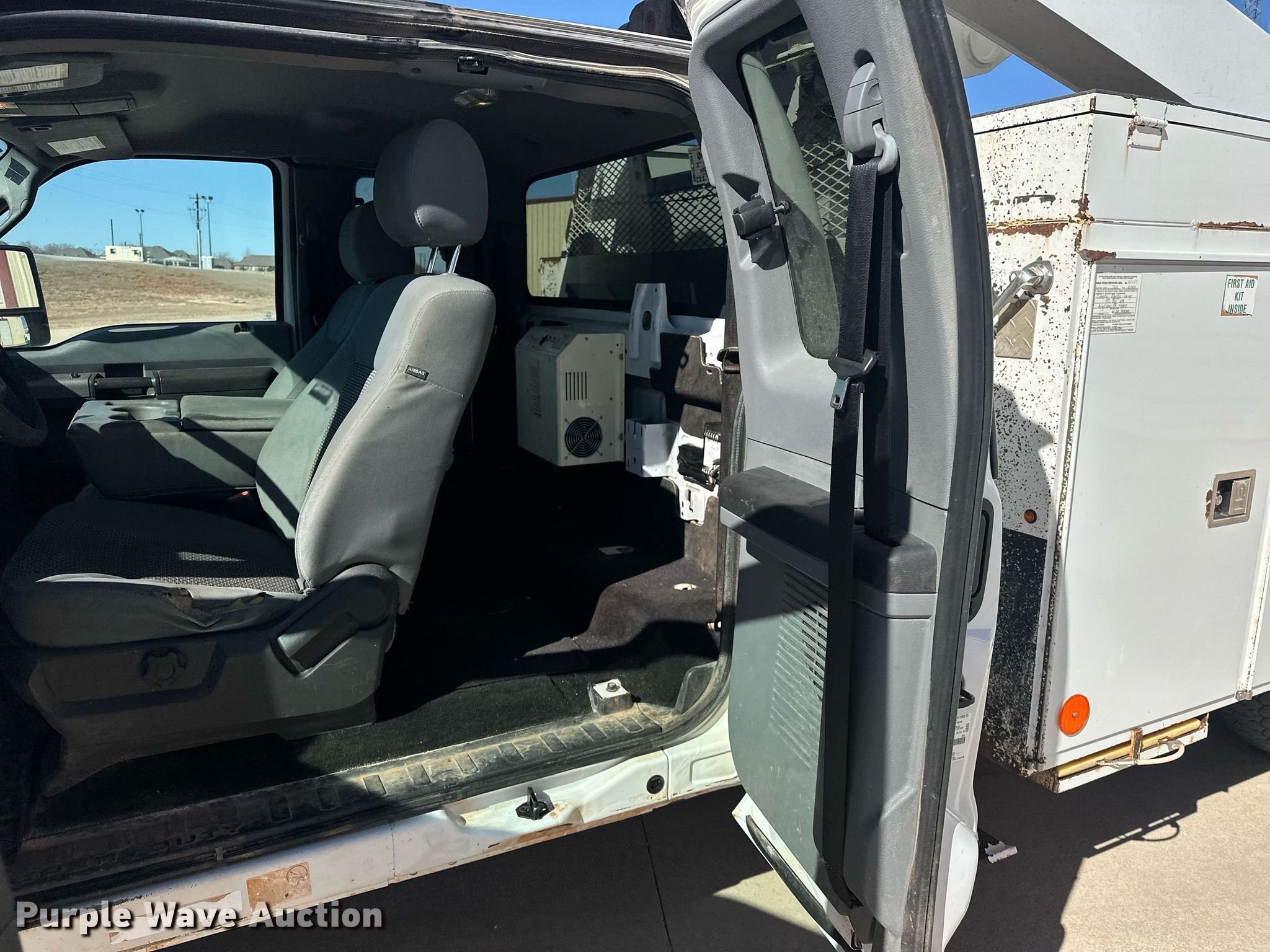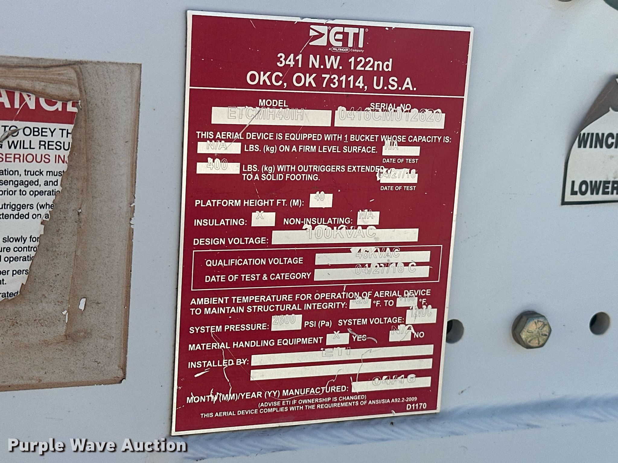 2016 Ford F550 Super Duty XLT bucket truck. Miles: 189,880 on odometer, VIN: 1FD0X5HT4GEB96752. Engine Displacement: 6.7L V8 OHV, Cylinders: 8, Fuel type: Diesel. Transmission Automatic. Chassis Four wheel drive, Axles: Single, Suspension: Spring, Brakes: Hydraulic, PTO, GVWR: 19,500 lbs. Interior AC, Heat, Heated mirrors, Power windows, Power locks, Cruise control, Auxiliary controls, Brake controller. Features Bed ETI 19221, Serial: SB132DD96B36A, 14' x 96" W, Boom 2016 ETI ETCMH40IH, Serial: 0416CM012620, Mast height: 40', Maximum lift capacity: 400 lbs, Boom type: Articulating, Insulated, Telescopic, Man basket, Boom controls Ground, Platform/ basket, Material handler, Backup camera. Tires Size: 225/70R19.5. Notes Electrical leads not included, Wire not included, Dash warning indicator: Check engine, Airbag. Oklahoma title. Title distribution may be delayed up to 14 days from verification of funds. Cimarron Electric. Kingfisher, OK 73750