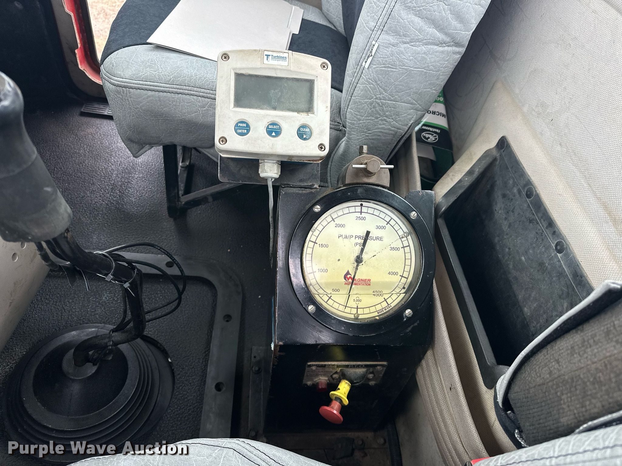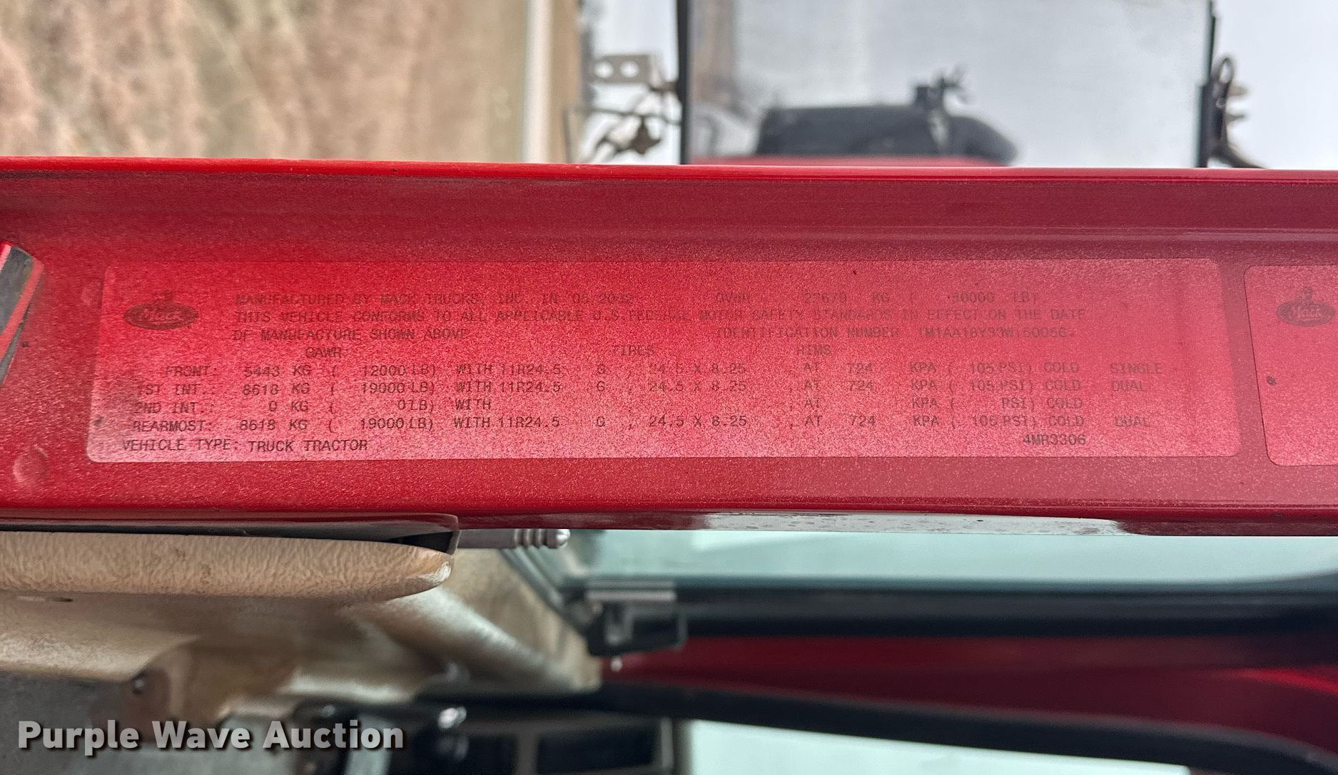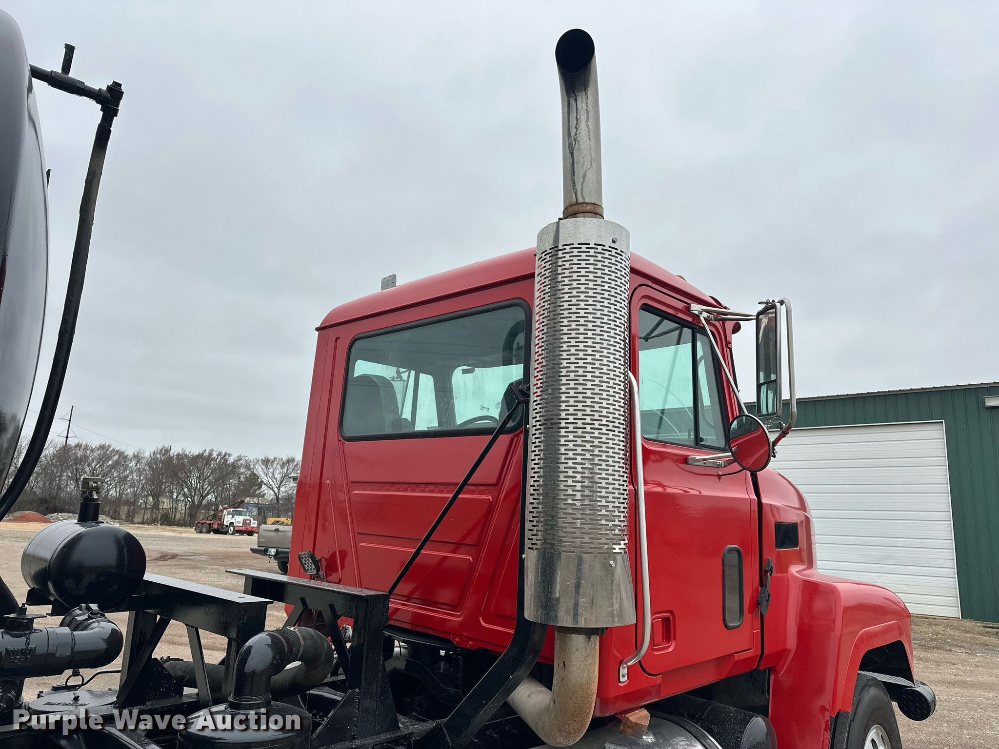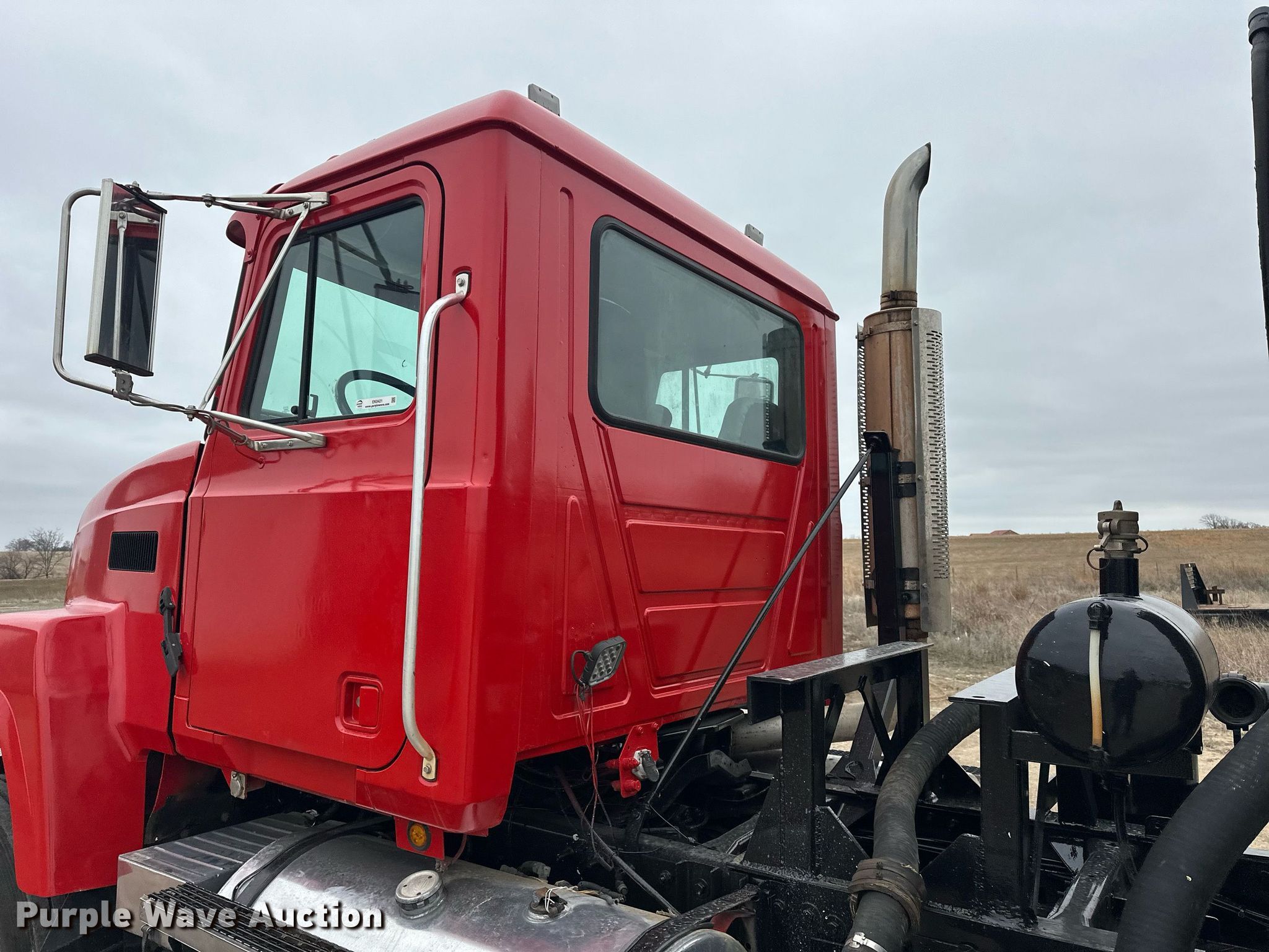 2003 Mack CH613 vacuum truck. Miles: 379,732 on odometer, Hours: 22,248 on meter, VIN: 1M1AA18Y33W150056. Engine Mack E7-427, Serial: 2J1978, Displacement: 12.0L, Cylinders: 6, Fuel type: Diesel. Transmission Manual, Speed: 13. Chassis Axles: Tandem, Differential lock: Inter-axle, Suspension: Air, Brakes: Air, PTO, GVWR: 50,000 lbs. Interior AC, Heat, Heated mirrors, Cruise control. Features Tank bed Capacity: 3,360 gallons, Capacity: 80 barrels, Top hatches: 2, Rear manway, Rear outlet: 4", Vacuum pump Fruitland RCF500, Serial: 507913LUF. Tires Size: 11R24.5. Notes Dash warning indicator: Electrical fault, Windshield chipped or cracked, Non-operational speedometer. Oklahoma title. Title distribution may be delayed up to 30 days from verification of funds. Ada, OK 74820