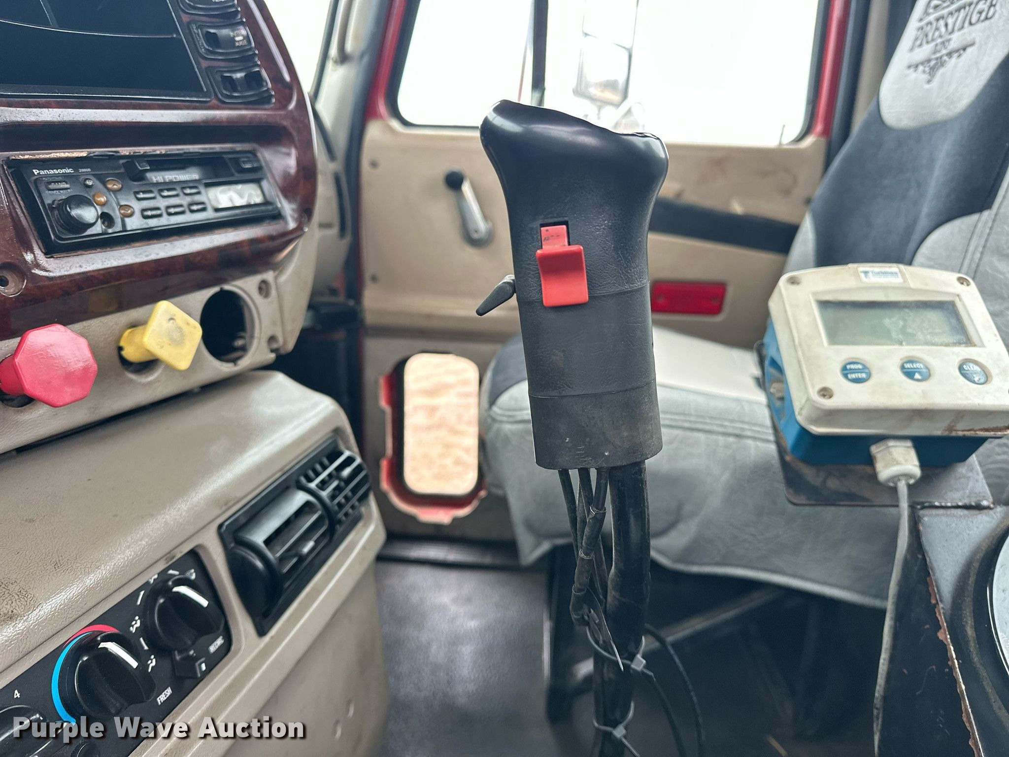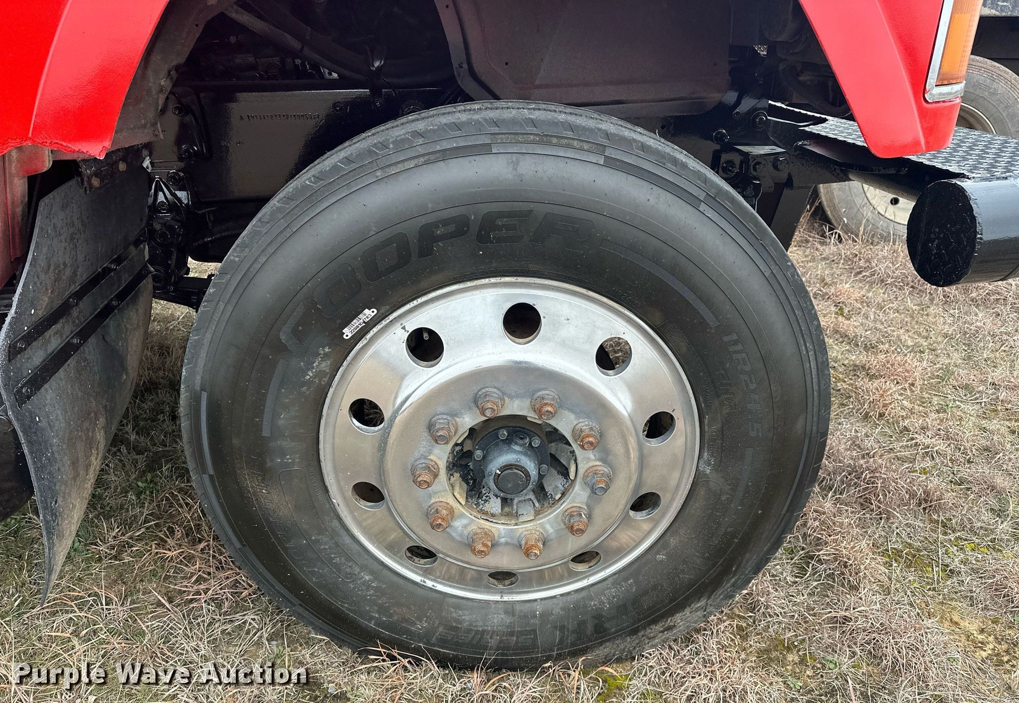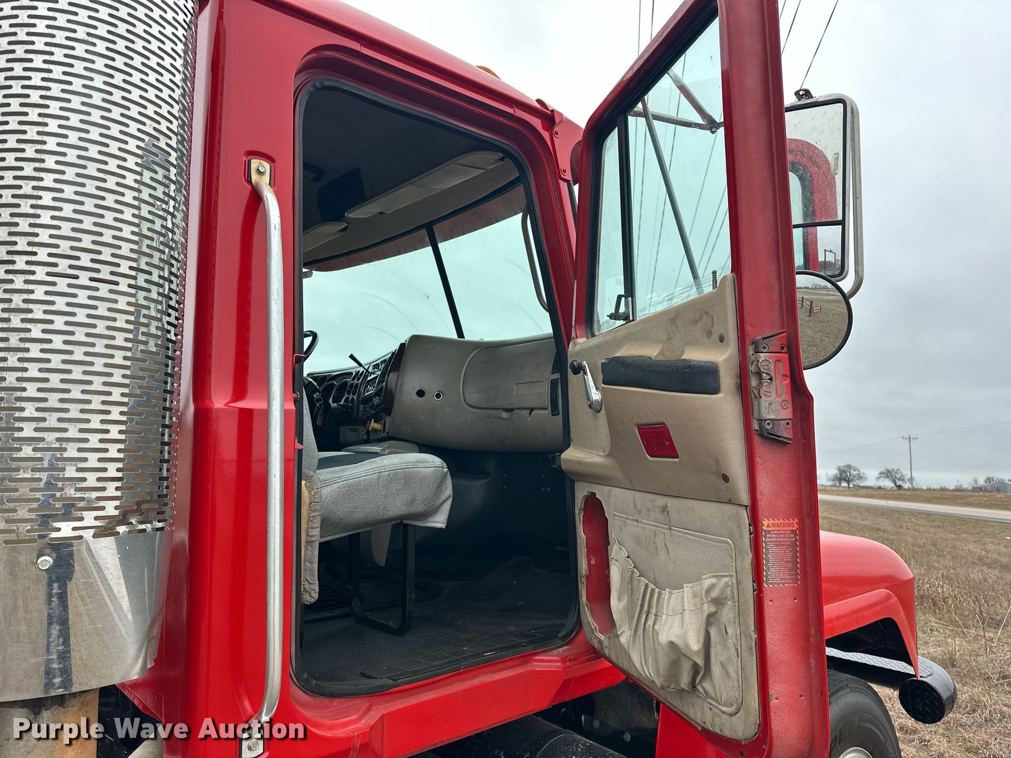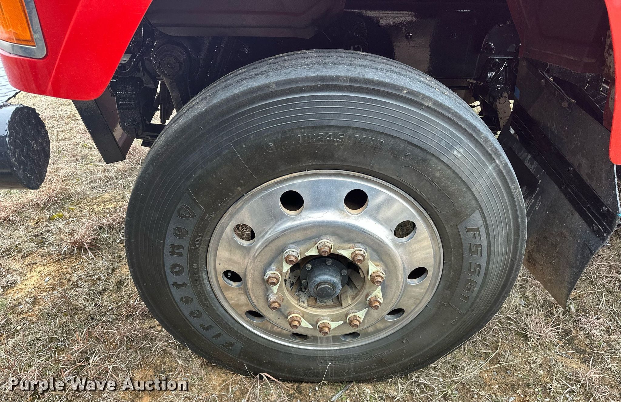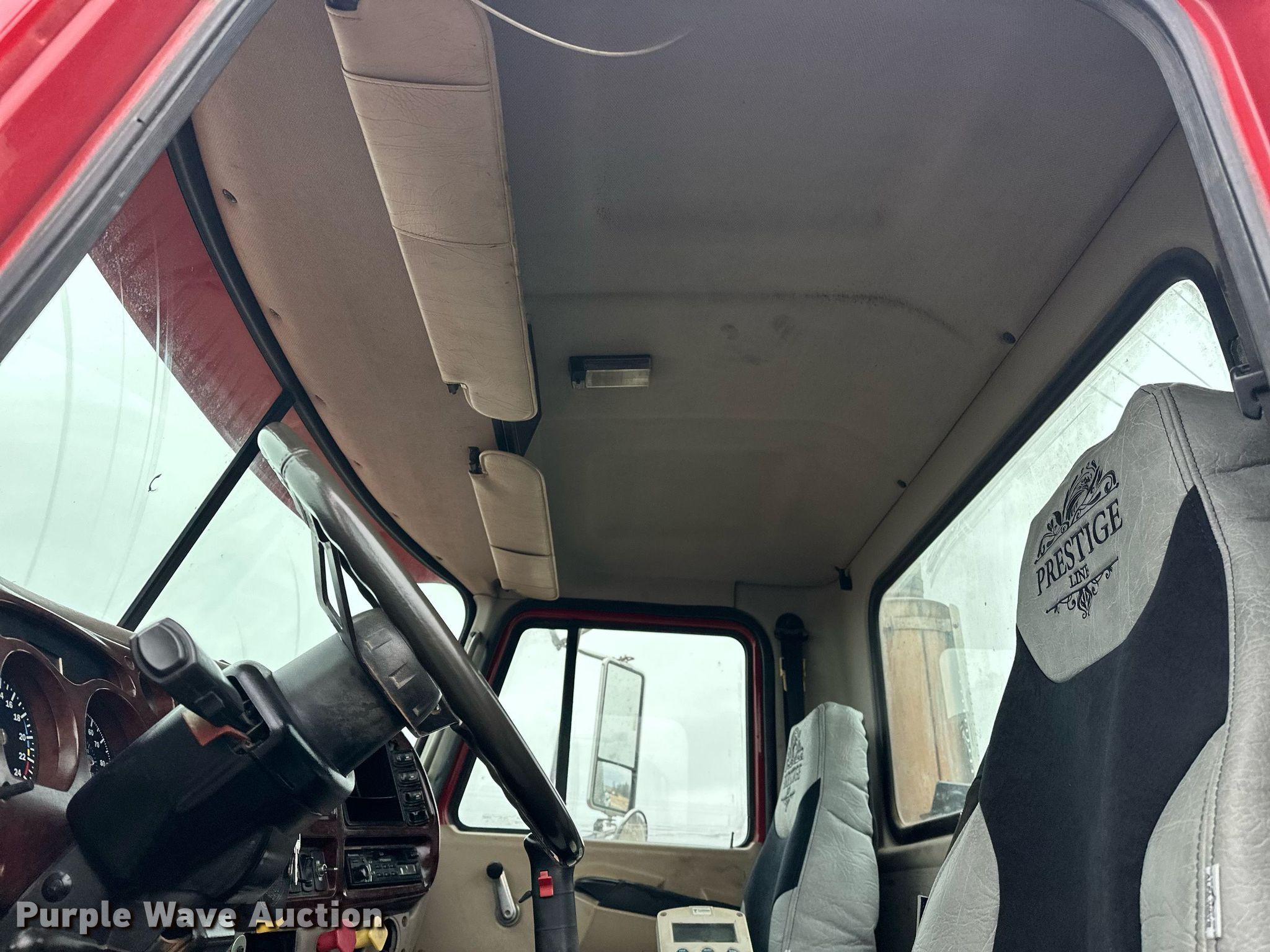 2003 Mack CH613 vacuum truck. Miles: 379,732 on odometer, Hours: 22,248 on meter, VIN: 1M1AA18Y33W150056. Engine Mack E7-427, Serial: 2J1978, Displacement: 12.0L, Cylinders: 6, Fuel type: Diesel. Transmission Manual, Speed: 13. Chassis Axles: Tandem, Differential lock: Inter-axle, Suspension: Air, Brakes: Air, PTO, GVWR: 50,000 lbs. Interior AC, Heat, Heated mirrors, Cruise control. Features Tank bed Capacity: 3,360 gallons, Capacity: 80 barrels, Top hatches: 2, Rear manway, Rear outlet: 4", Vacuum pump Fruitland RCF500, Serial: 507913LUF. Tires Size: 11R24.5. Notes Dash warning indicator: Electrical fault, Windshield chipped or cracked, Non-operational speedometer. Oklahoma title. Title distribution may be delayed up to 30 days from verification of funds. Ada, OK 74820