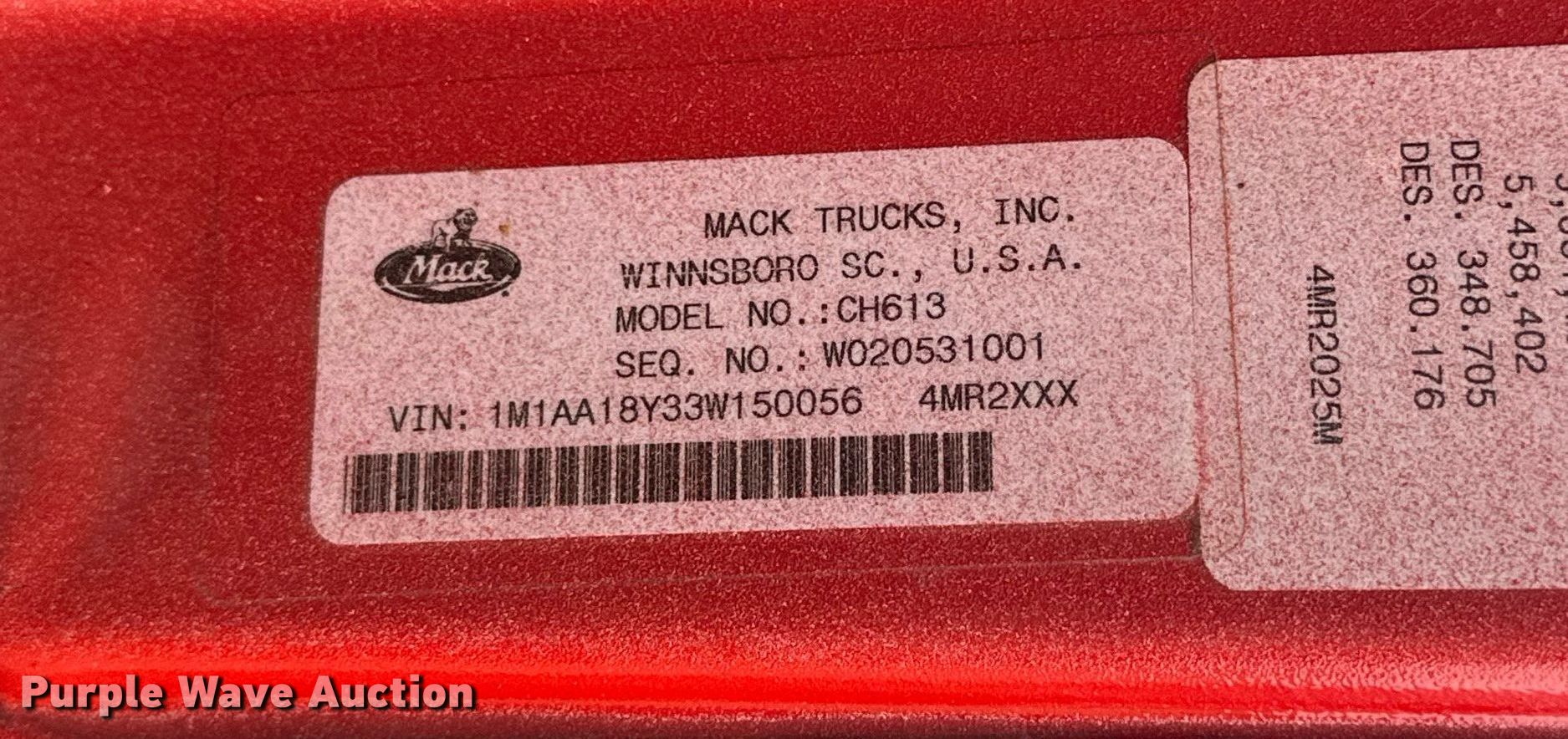Take a look at this used 2003 Mack CH613 vacuum truck being sold on March 27th, 2025 in the SOLD! March 27 Construction Equipment Auction made by Mack. Take a look at all of the item information below or take a look at similar auctions for Construction Trucks.