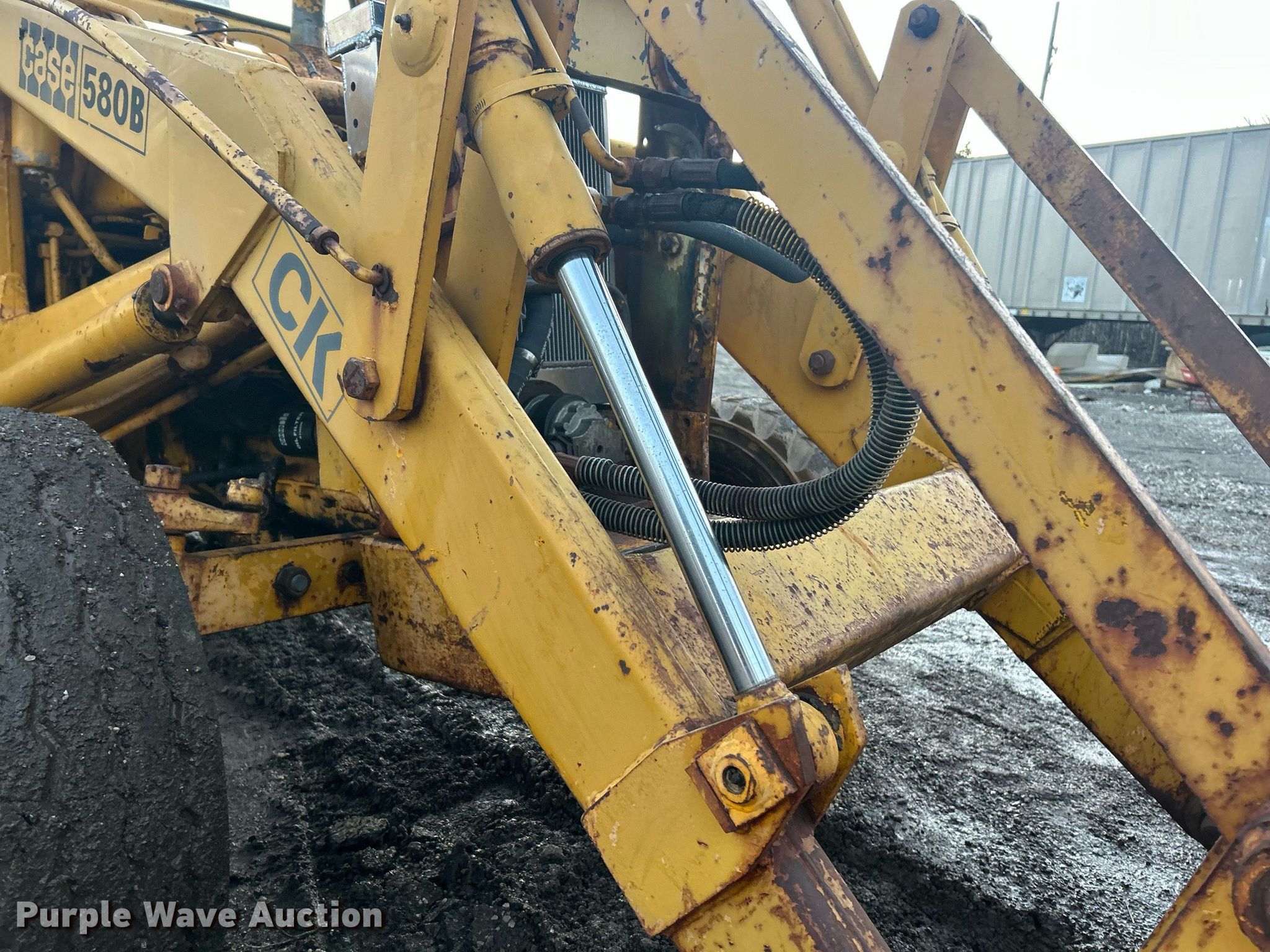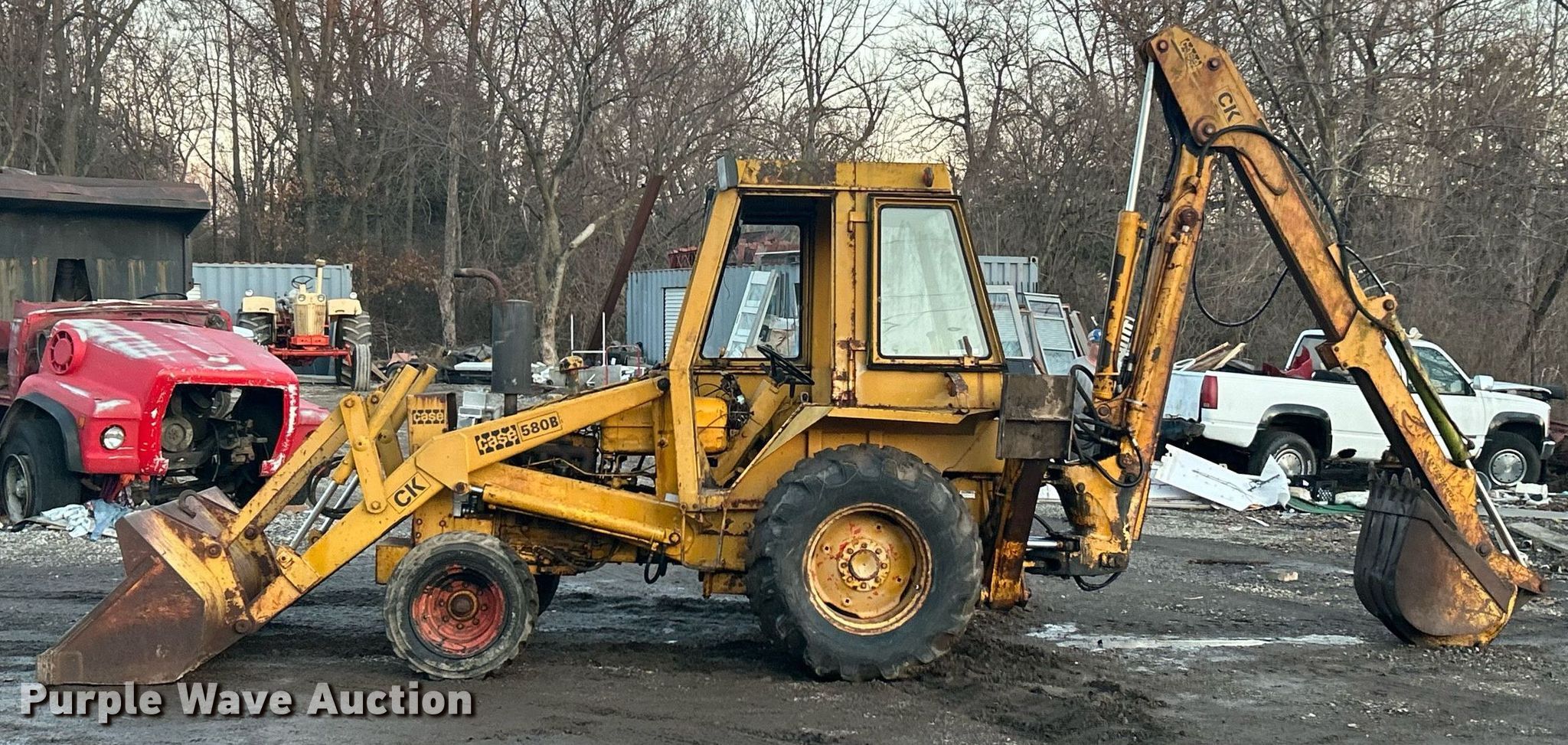 1974 Case 580B backhoe. Hours: 7,738 on meter, Serial: 5295614. Engine Cylinders: 4, Fuel type: Diesel. Transmission Shuttle shift. Operators station Enclosed cab, ROPS, Backhoe controls: Four stick. Features Loader Bucket Width: 79", Cutting edge: Weld-on, Backhoe Extendable stick, Bucket Width: 24", Teeth: 5.. Tires Front: 10-16.5, Rear: 17.5L-24. Notes Transmission issues, does not move , Non-operational ignition switch, external push to start installed , Cylinder issues, leaks, Hydraulic line issues, leaks. Gutter Services Unlimited Inc. Maryland Heights, MO 63043