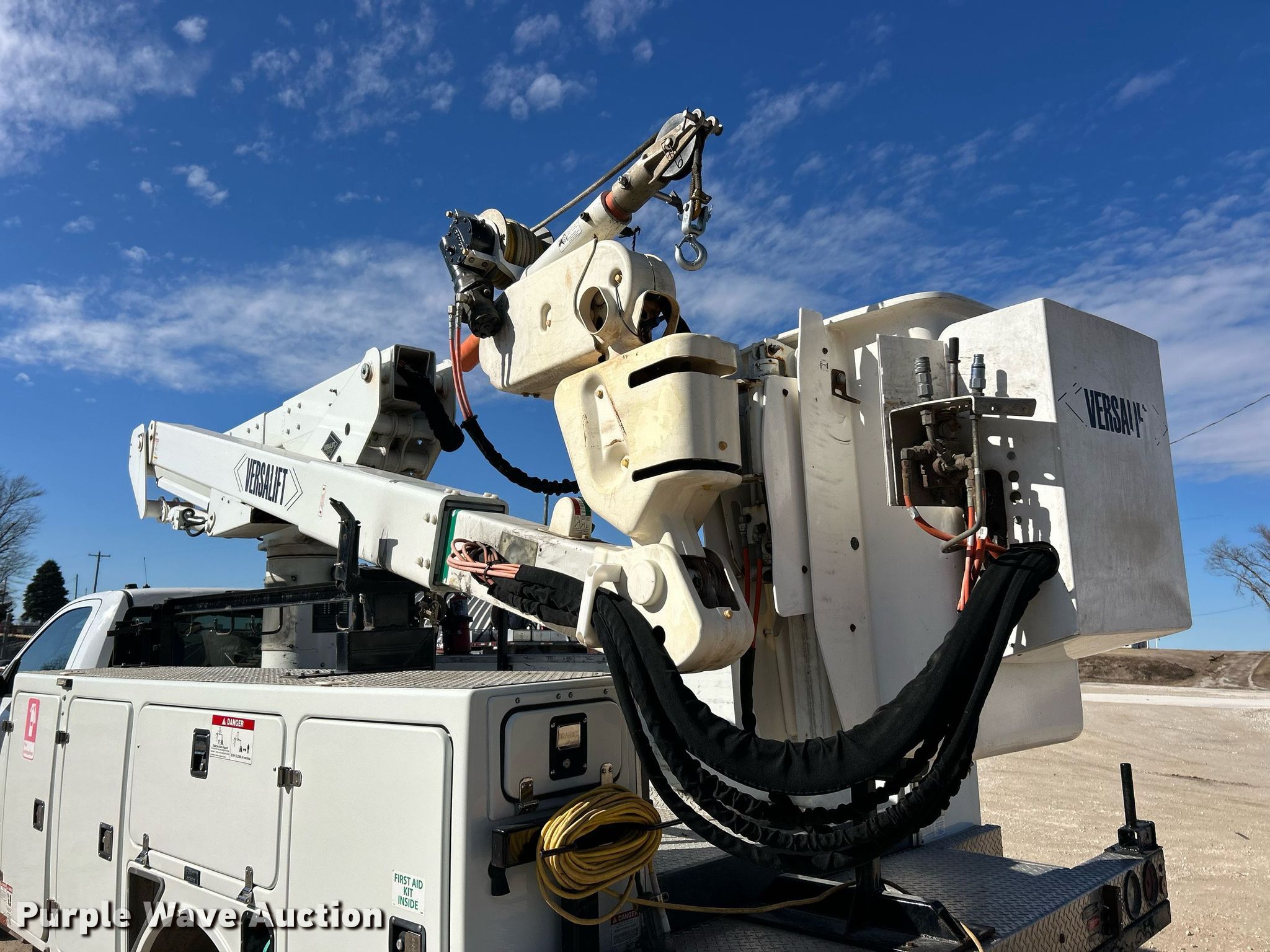 2017 Dodge Ram 5500HD bucket truck. Miles: 174,458 on odometer, Hours: 4,095 on meter, VIN: 3C7WRNBL0HG69557. Engine Cummins, Displacement: 6.7L, Cylinders: 6, Fuel type: Diesel. Transmission Automatic. Chassis Four wheel drive, Axles: Single, Suspension: Spring, Brakes: Hydraulic, GVWR: 19,500 lbs. Interior AC, Heat, Power windows, Power locks, Cruise control, Auxiliary controls, Brake controller. Features Bed Brand FX, 11' L x 96" W, Boom Versalift VST-40I, Serial: KW170025, Maximum lift capacity: 400 lbs, Maximum lift height: 40', Boom type: Articulating, Insulated, Telescopic, Man basket, Boom controls Ground, Platform/ basket, Material handler. Tires Size: 225/70R19.5. Illinois title. Illinois Electrical Coop. Winchester, IL 62694