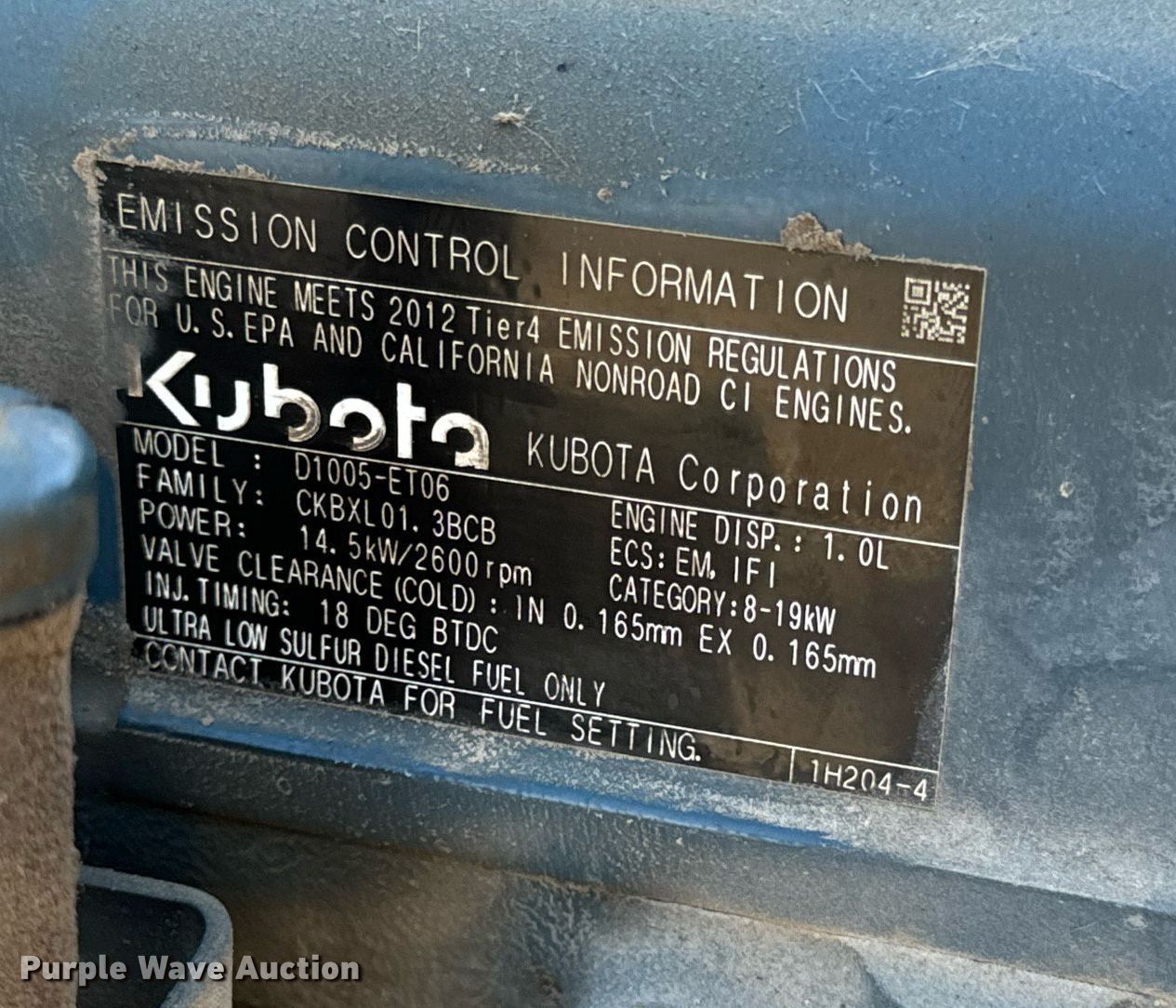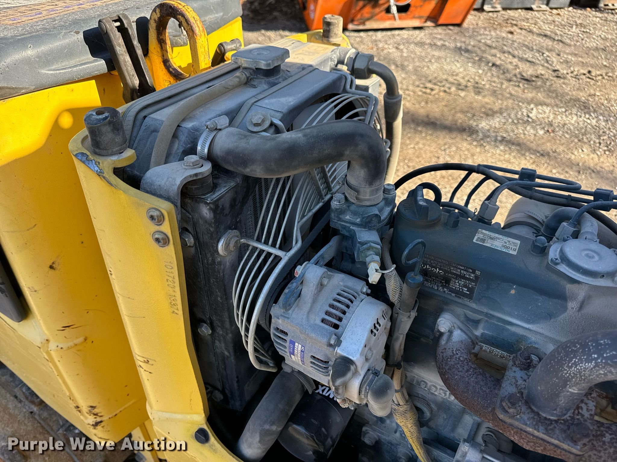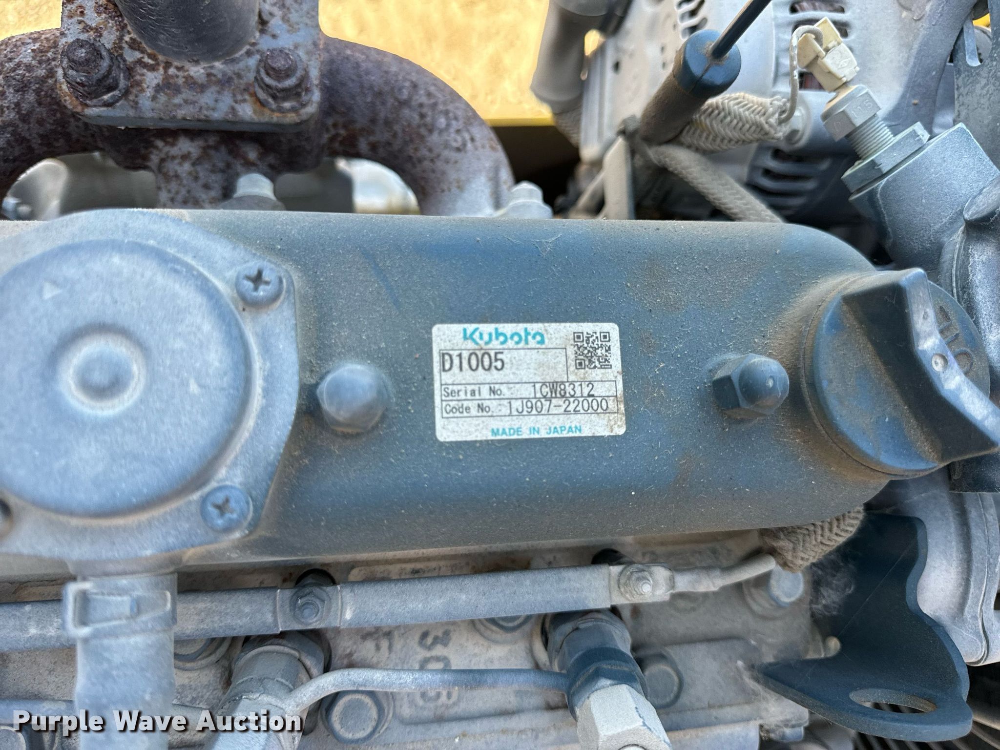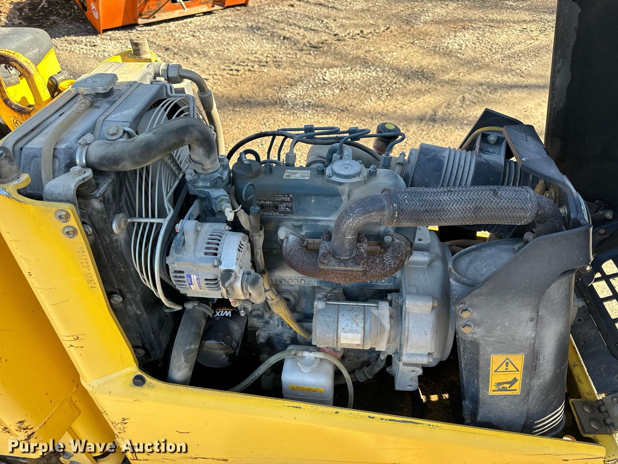 2011 Bomag BMP8500 trench compactor. Hours: 488 on meter, Serial: 101720113374, Unit #: 1. Engine Kubota D1005, Serial: 1CW8312, Displacement: 1.0L, Cylinders: 4, Fuel type: Diesel, kW: 14.5. Transmission Hydrostatic. Features Vibratory system Two speed, Drum: Padfoot Width: 34", Diameter: 20.5", Drum scrapers: Front, Rear, Remote control. A-1 Tool & Equipment Rental. Columbia, MO 65201