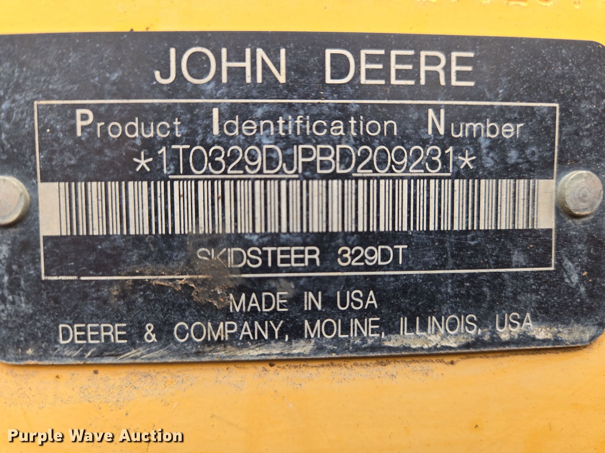 Purple Wave is selling a used Tracked Skid Steer Loader in Kansas. This item is a 2011 John Deere 329D tracked skid steer loader with the following: Hours: 1,906 on meter, Serial: 1T0329DJPBD209231
