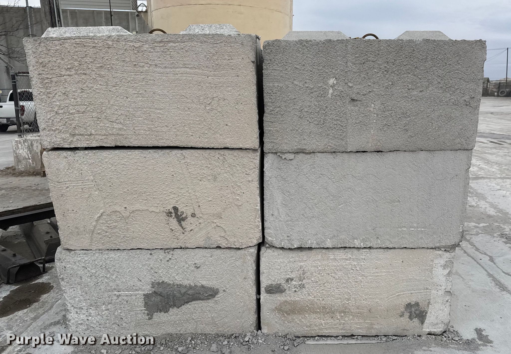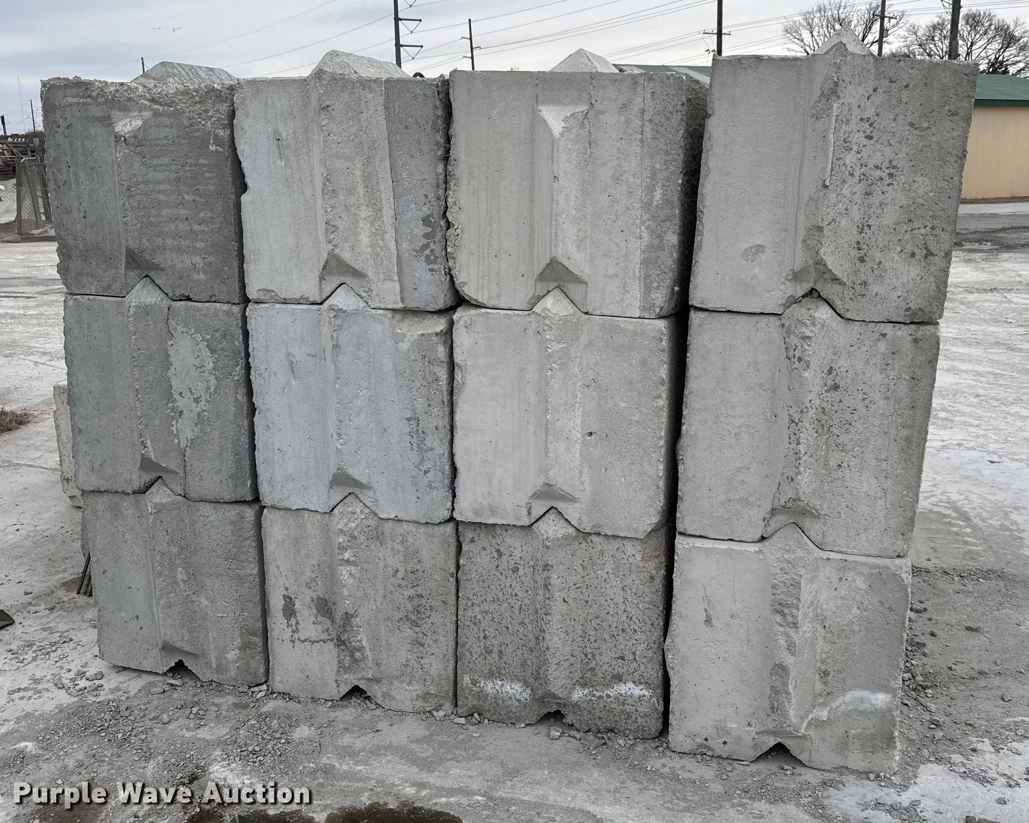 Purple Wave is selling a used Building Materials in Kansas. This item is a (24) concrete edge bunker blocks with the following: 2' x 2' x 4', Rebar lift eyelet, Keyed, Finish and condition may vary, Color: Grey, Approx. 2,100 lbs per block