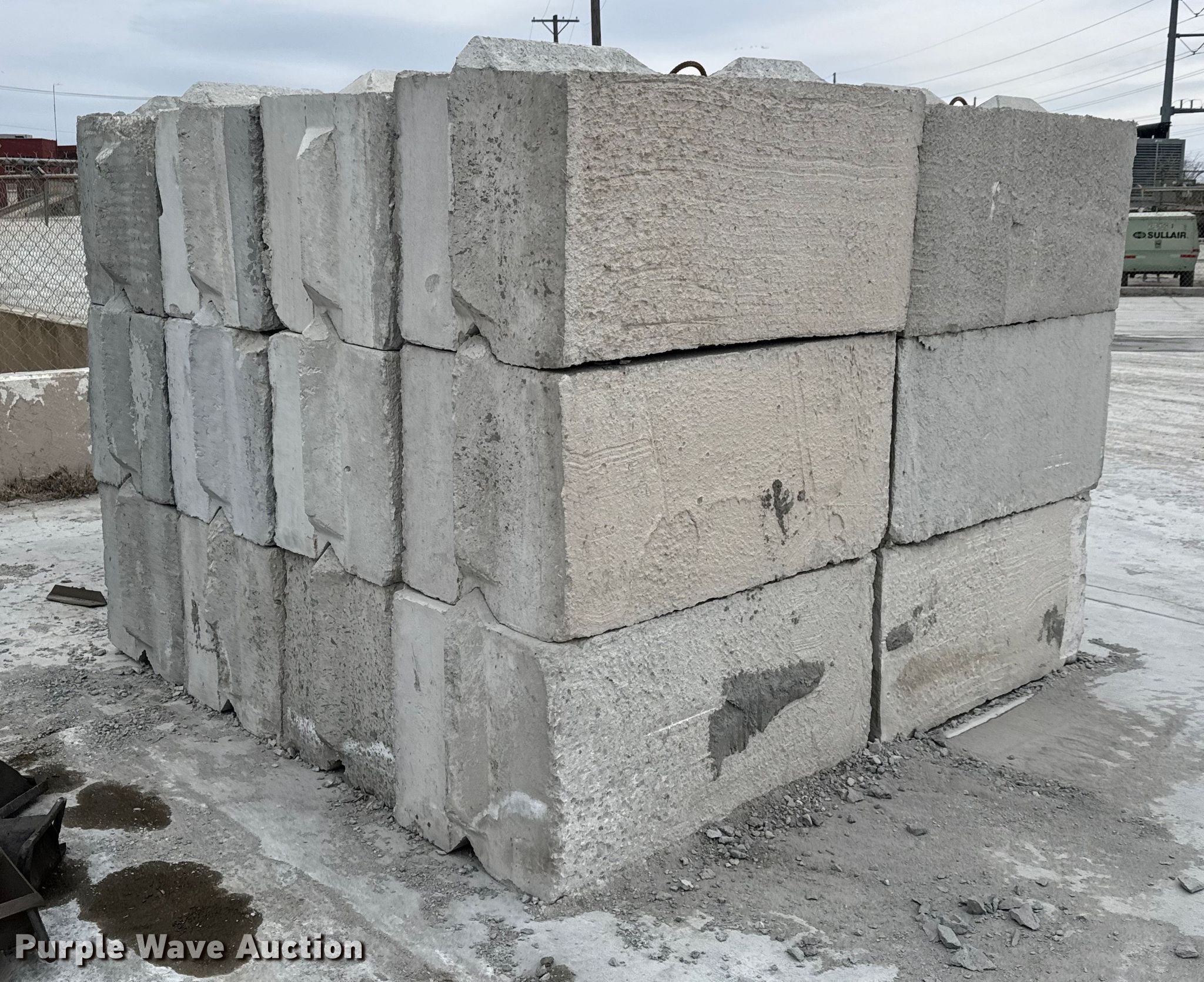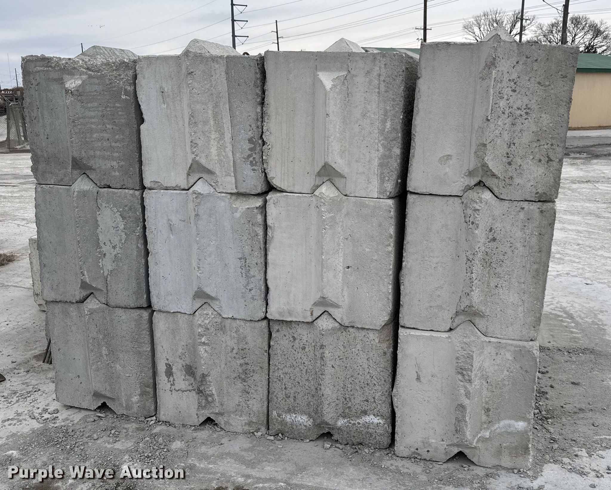 Purple Wave is selling a used Building Materials in Kansas. This item is a (24) concrete edge bunker blocks with the following: 2' x 2' x 4', Rebar lift eyelet, Keyed, Finish and condition may vary, Color: Grey, Approx. 2,100 lbs per block