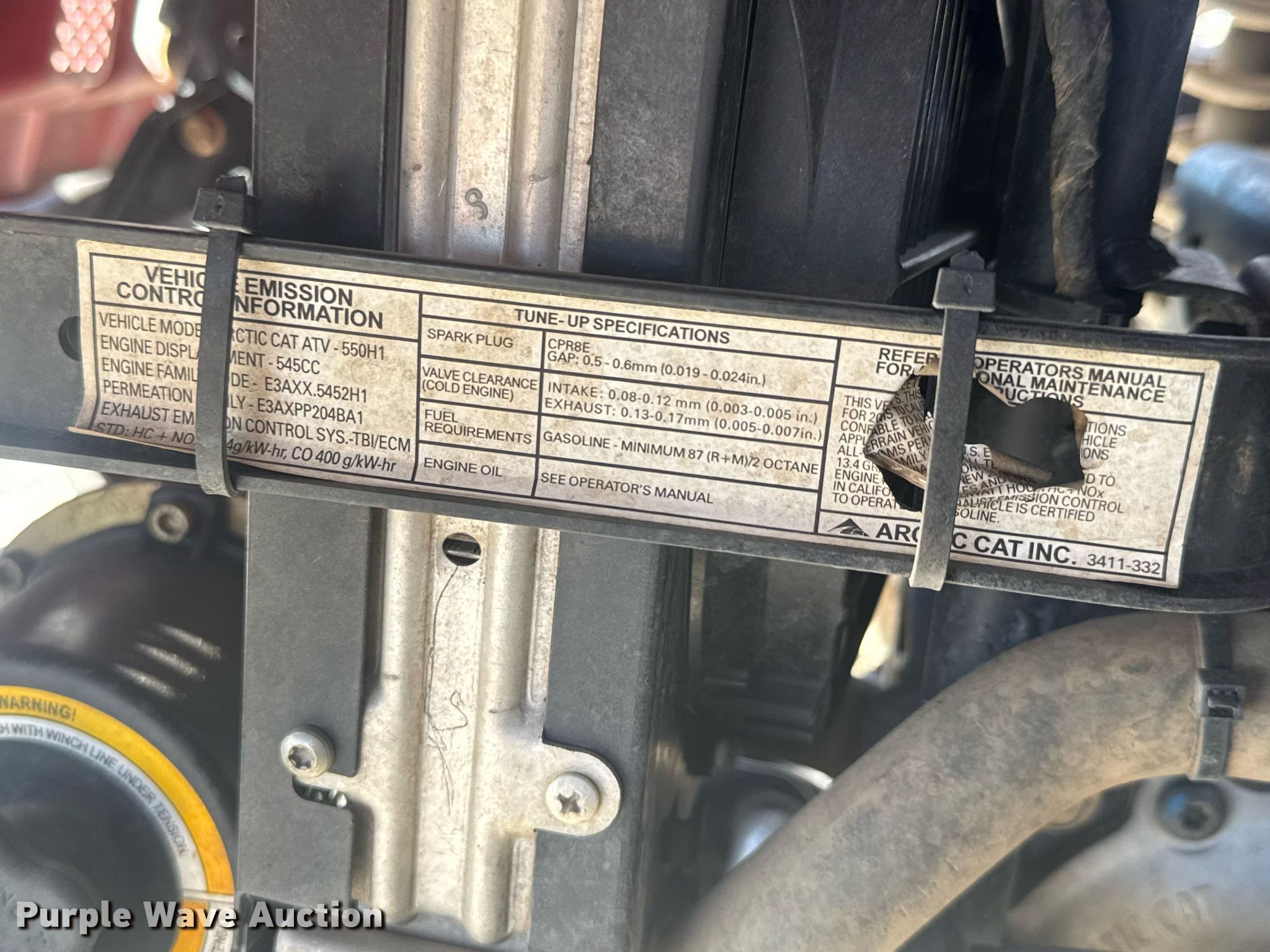 Purple Wave is selling a used ATV in Kansas. This item is a 2014 Arctic Cat 550 EFI ATV with the following: Miles: 407 on odometer, Hours: 119 on meter, VIN: 4UF14ATV5ET210307