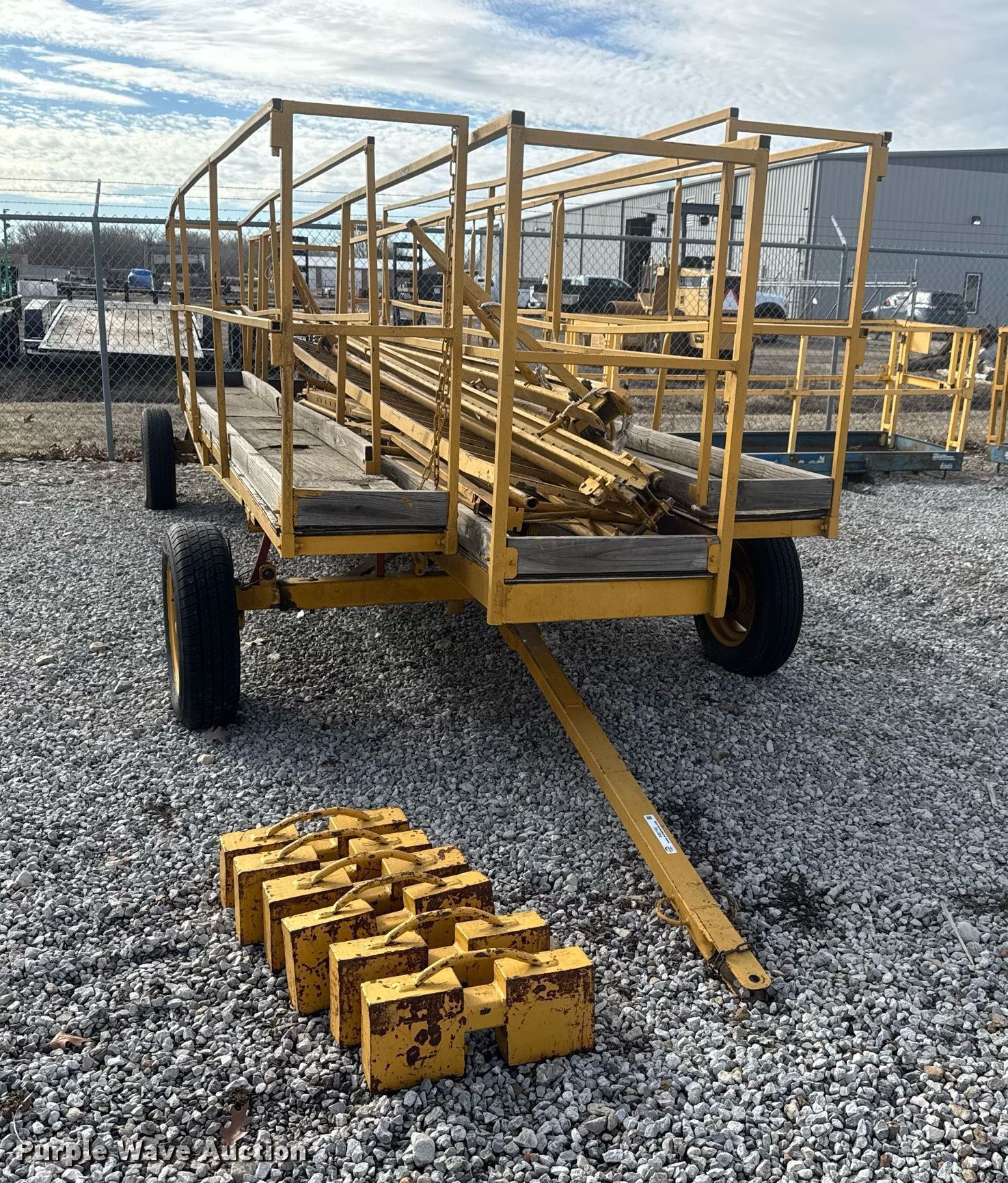 Rustgo Workplatforms 195 scaffolding. Serial: 9110176, Overall length: 23', (3) platforms 20' L x 25" W, (2) 18' 2" L x 19" W, Tire size: 165/80R15. Sharp Construction, LLC Retirement. Valley Center, KS 67147