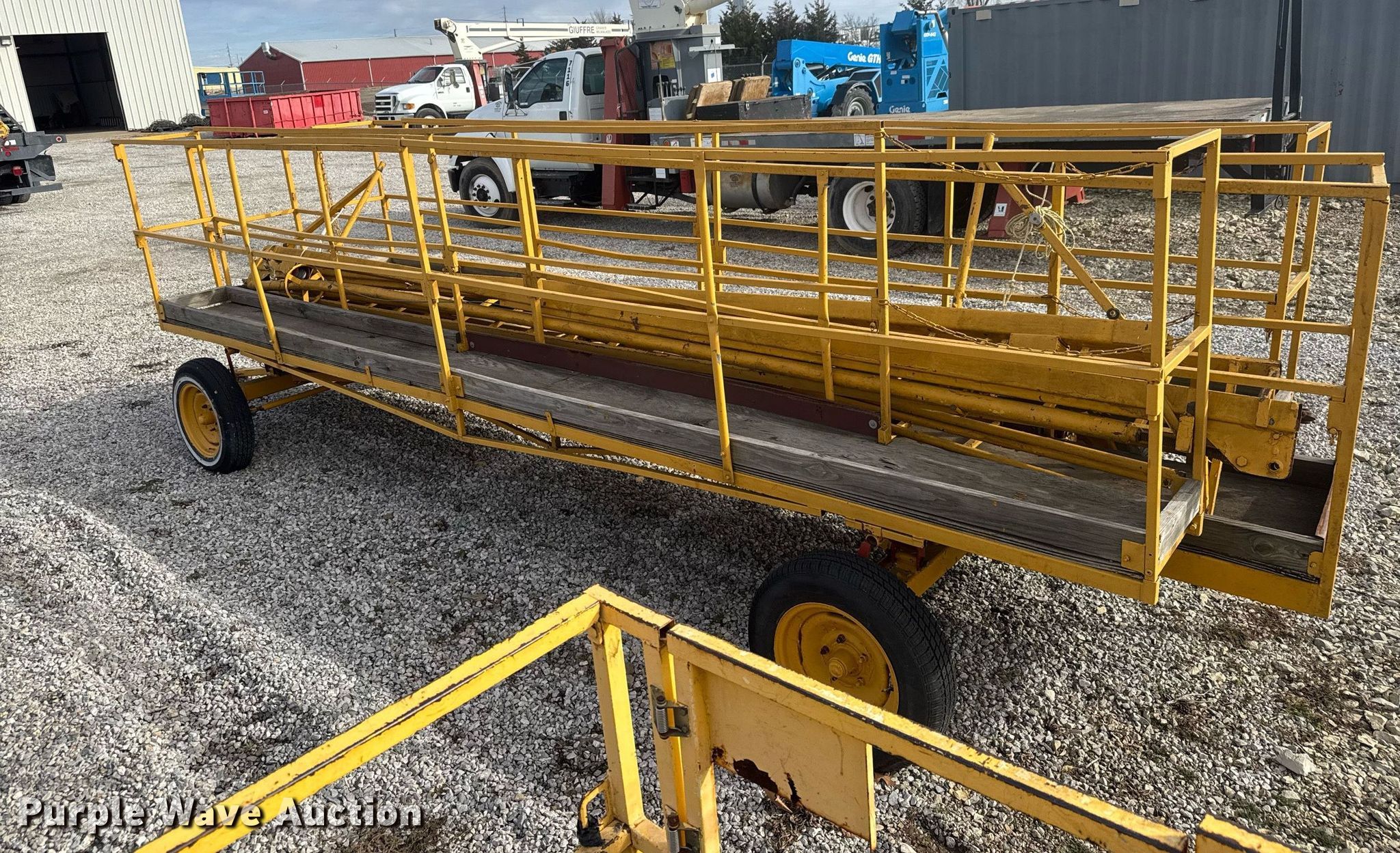 Purple Wave is selling a used Tools in Kansas. This item is a Rustgo Workplatforms 195 scaffolding with the following: Serial: 9110176, Overall length: 23', (3) platforms, 20' L x 25" W, (2) 18' 2" L x 19" W, Tire size: 165/80R15