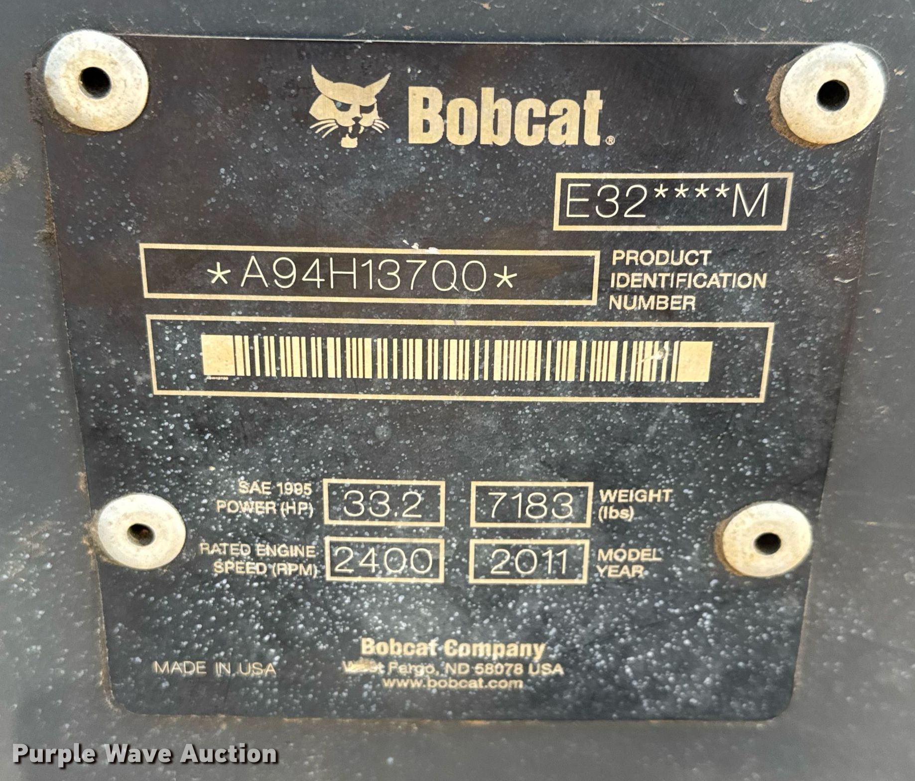 Purple Wave is selling a used Mini Excavator in Kansas. This item is a 2011 Bobcat E32 M mini excavator with the following: Hours: 6,969 on meter, Serial: A94H13700