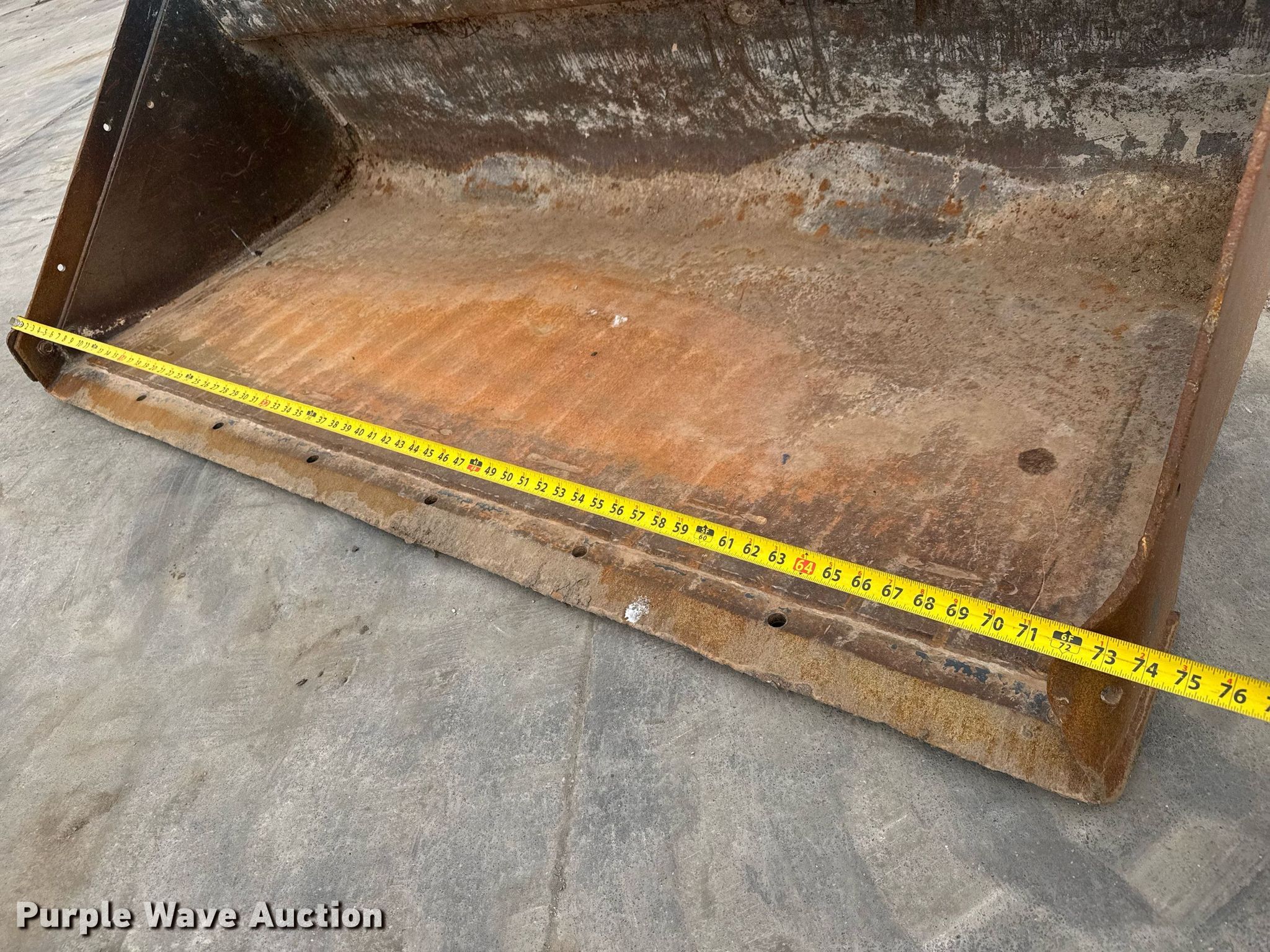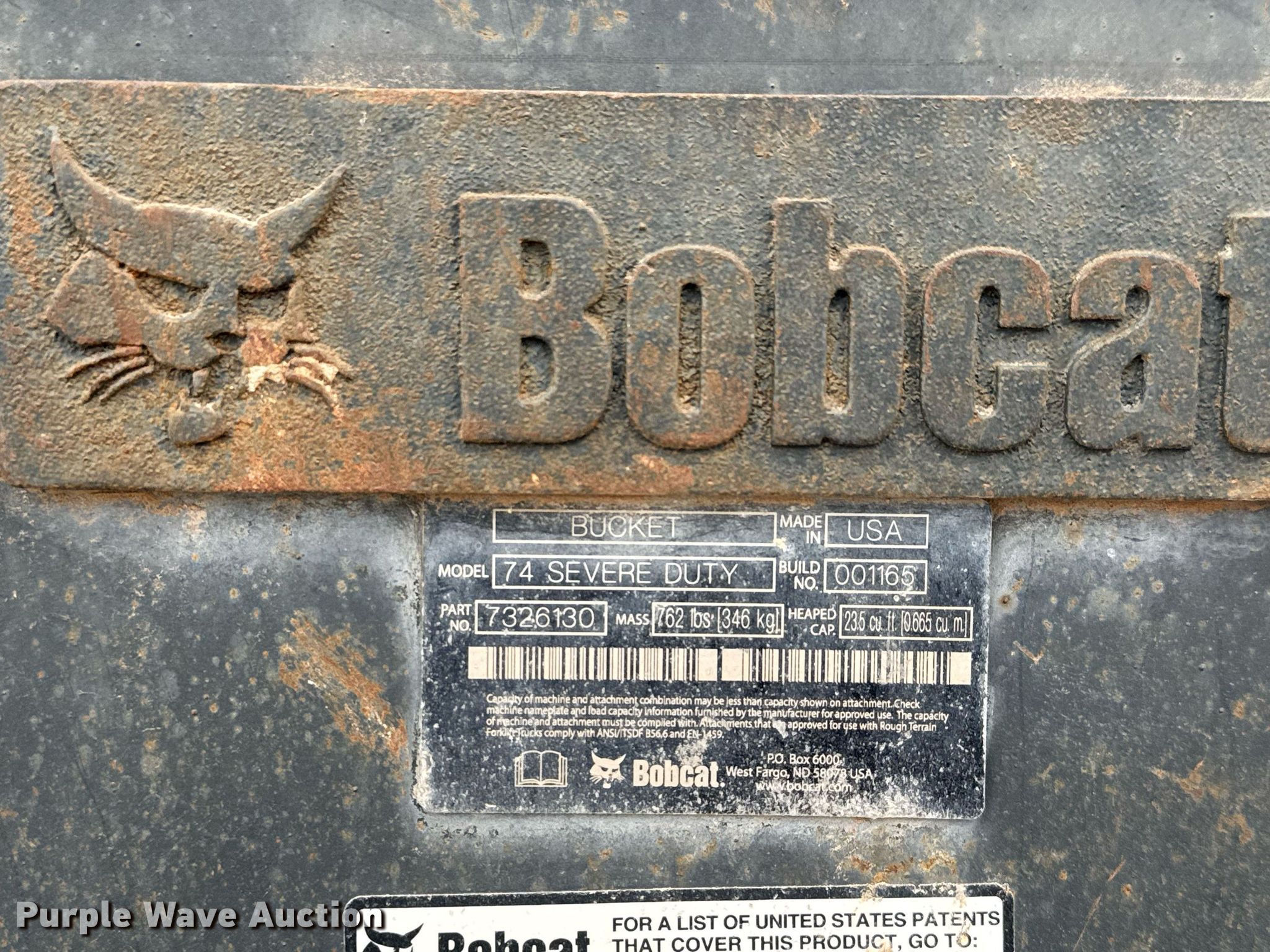 Purple Wave is selling a used Skid Steer Attach. in Kansas. This item is a Bobcat 74 Severe Duty skid steer bucket with the following: Width: 74"