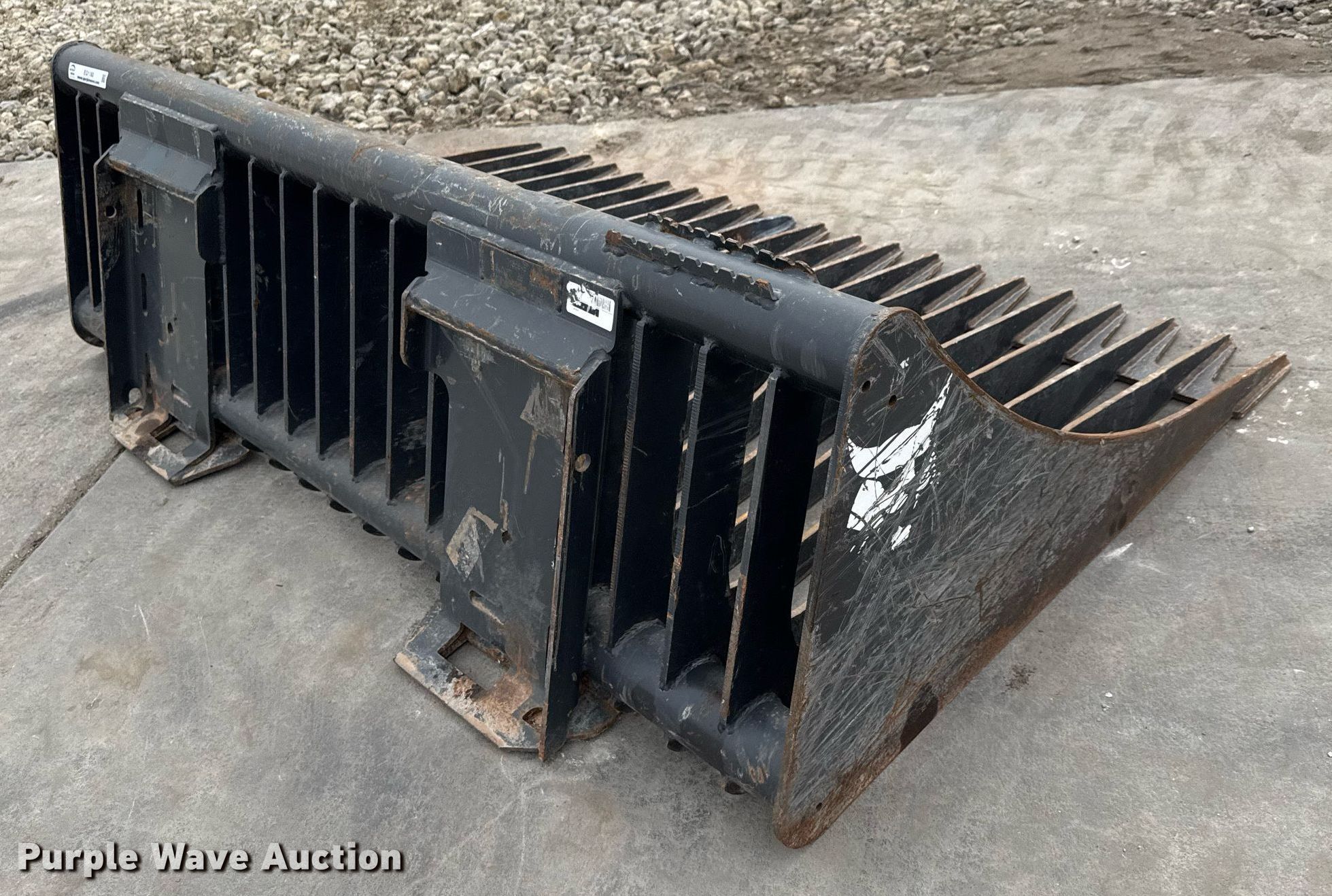 Purple Wave is selling a used Skid Steer Attach. in Kansas. This item is a Bobcat skid steer rock bucket with the following: Width: 68"