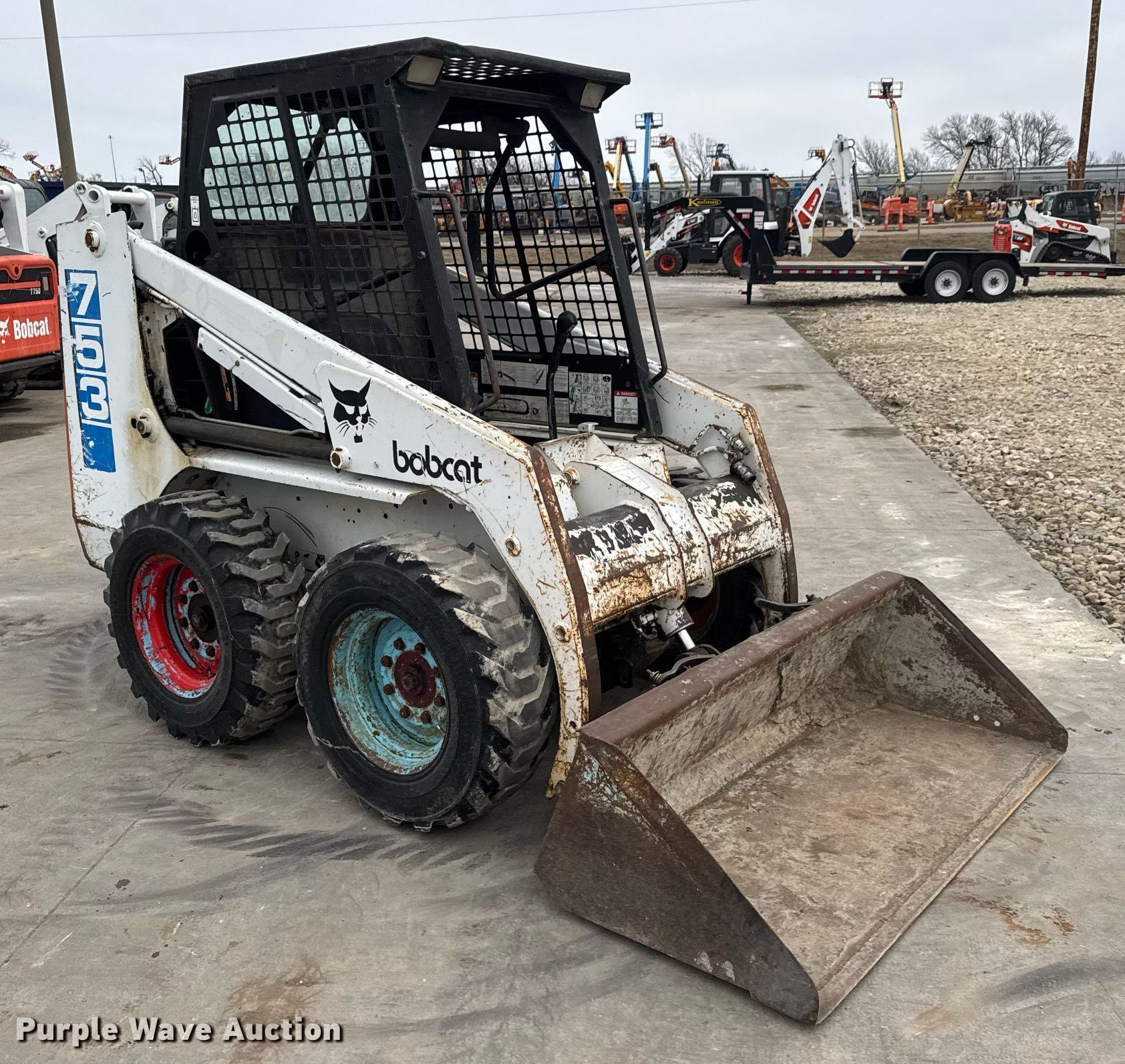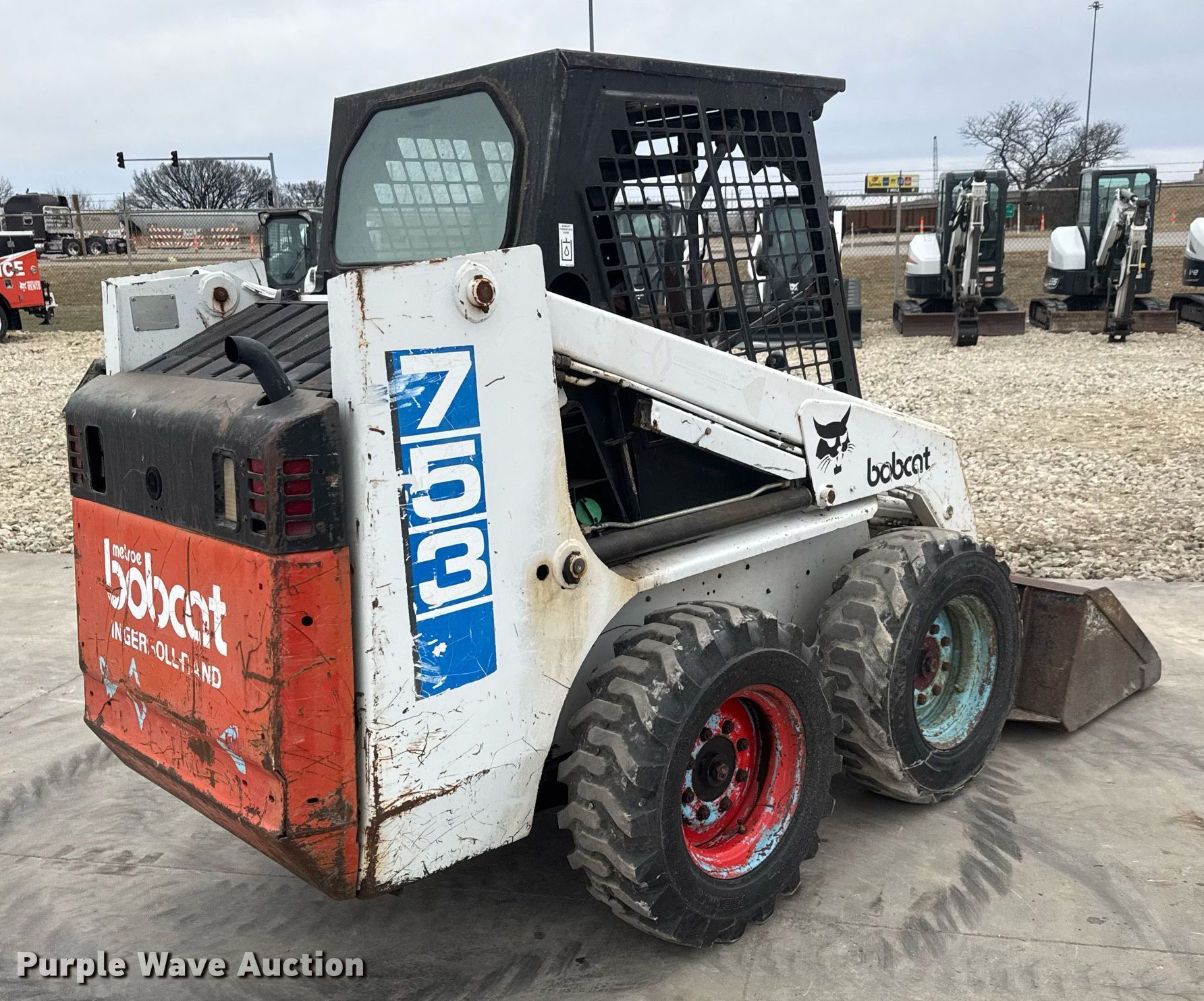 Purple Wave is selling a used Skid Steer Loader in Kansas. This item is a 1993 Bobcat 753 skid steer loader with the following: Hours: 4,653 on meter, Serial: 511525312