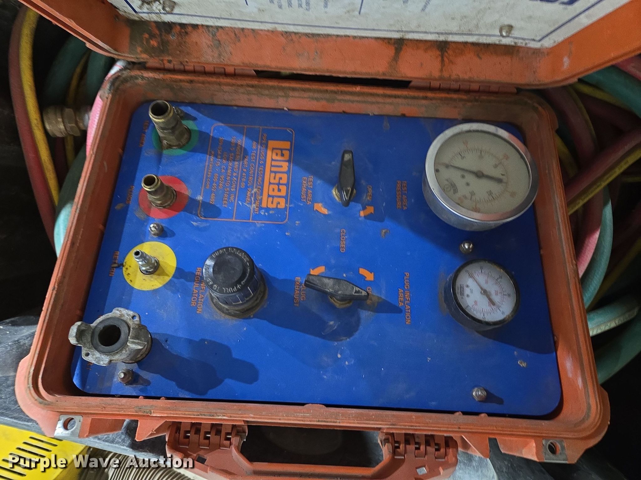 Purple Wave is selling a used Tools in Missouri. This item is a Lansas pipe pressure tester with the following: Hoses