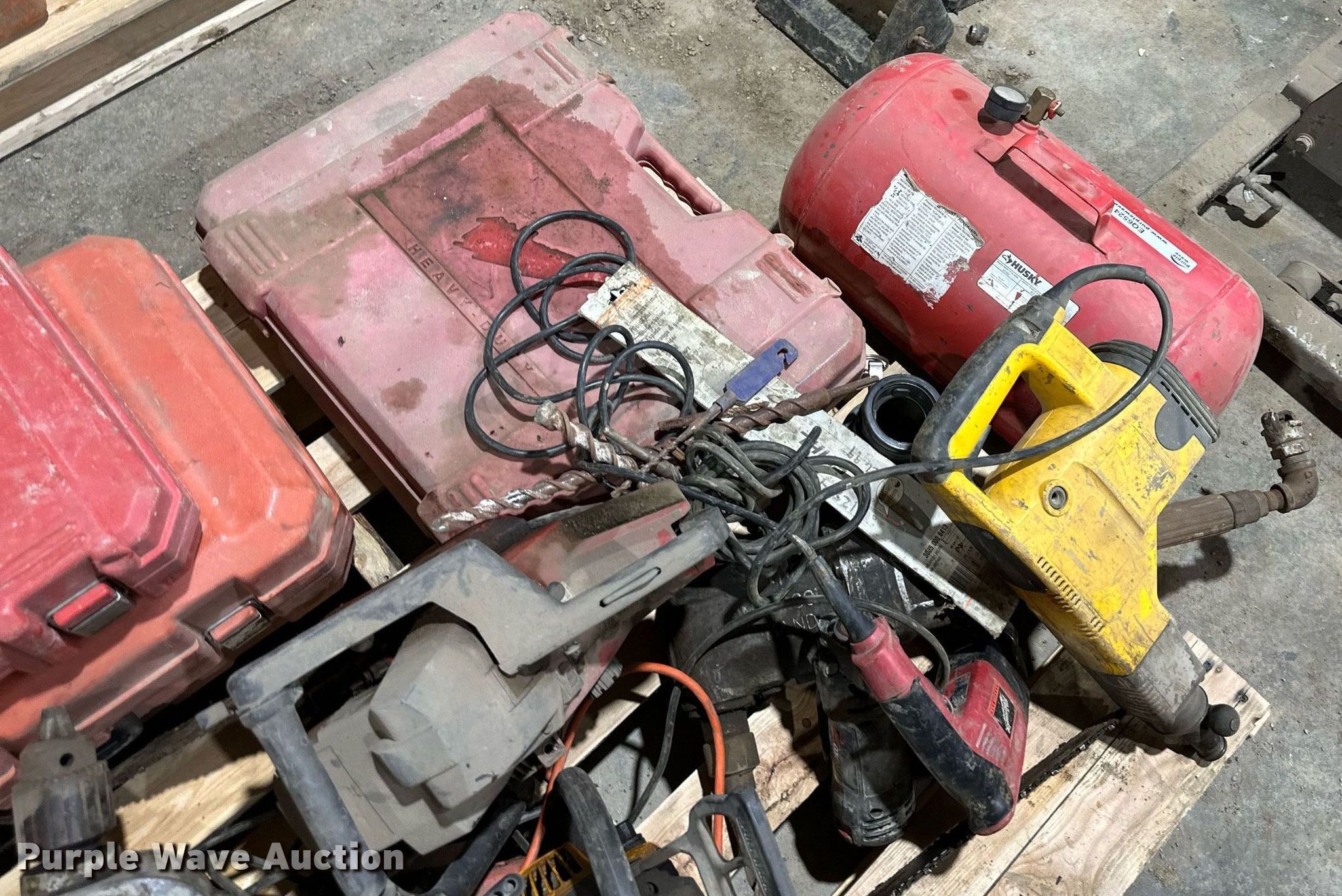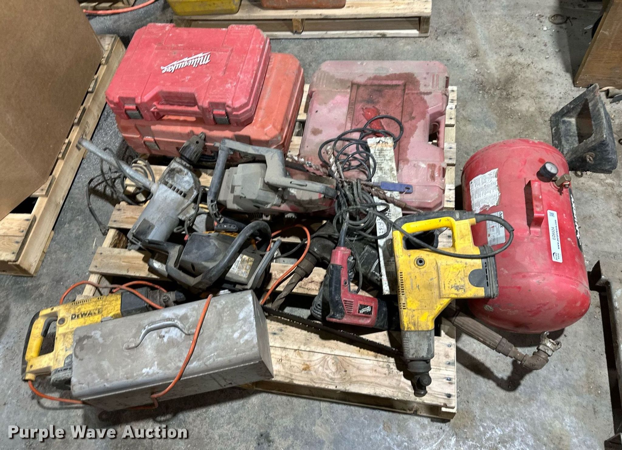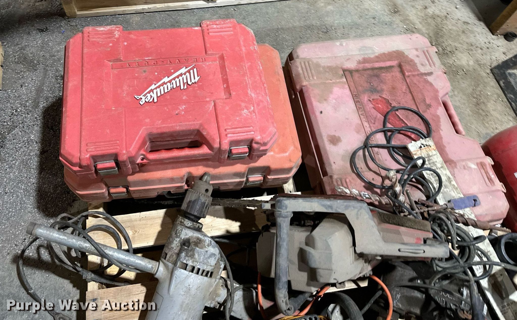 Purple Wave is selling a used Tools in Missouri. This item is a Tools with the following: (6) drills, Band saw, Pneumatic tools