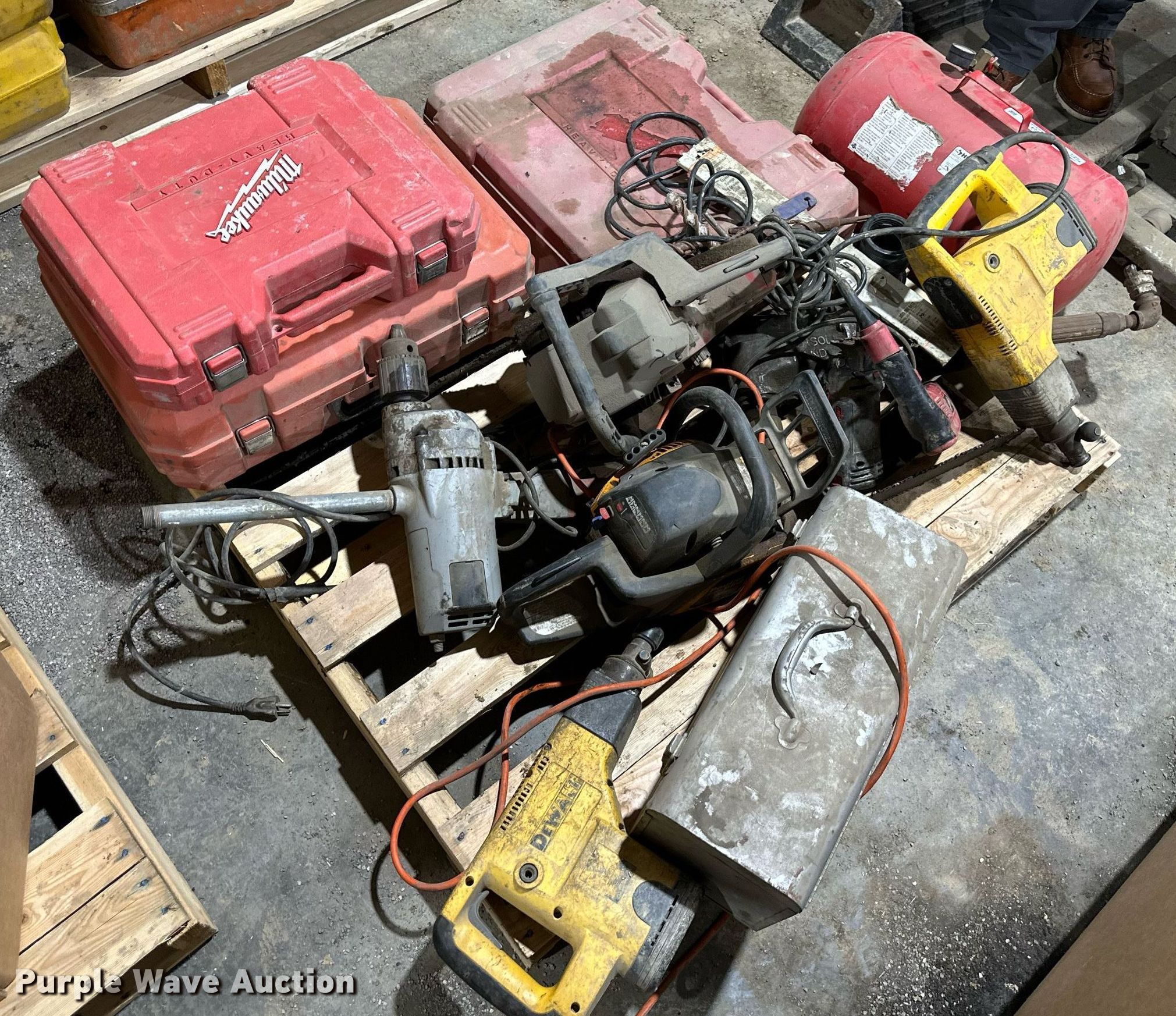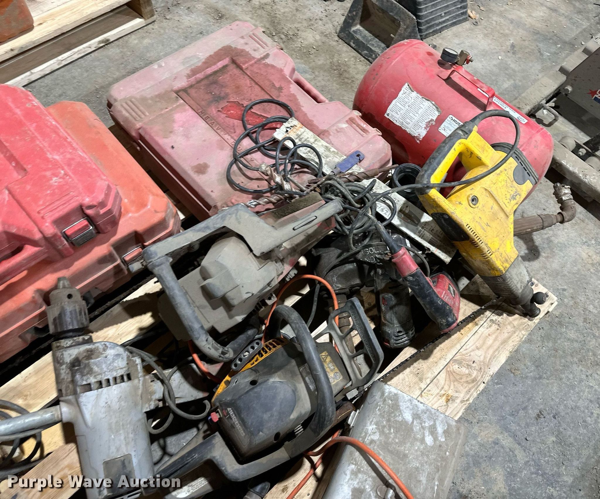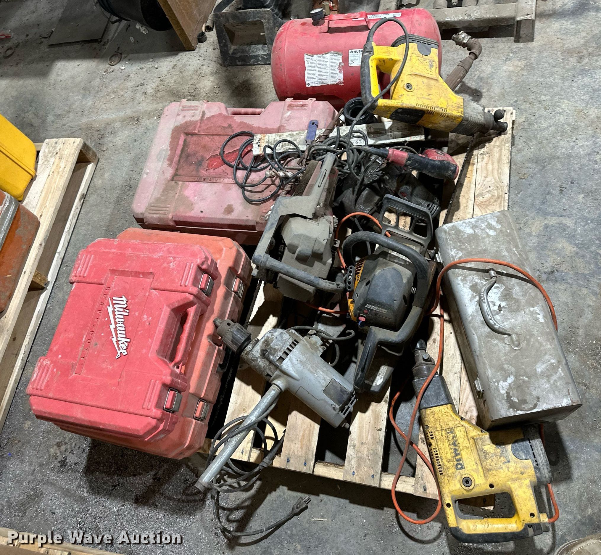 Purple Wave is selling a used Tools in Missouri. This item is a Tools with the following: (6) drills, Band saw, Pneumatic tools
