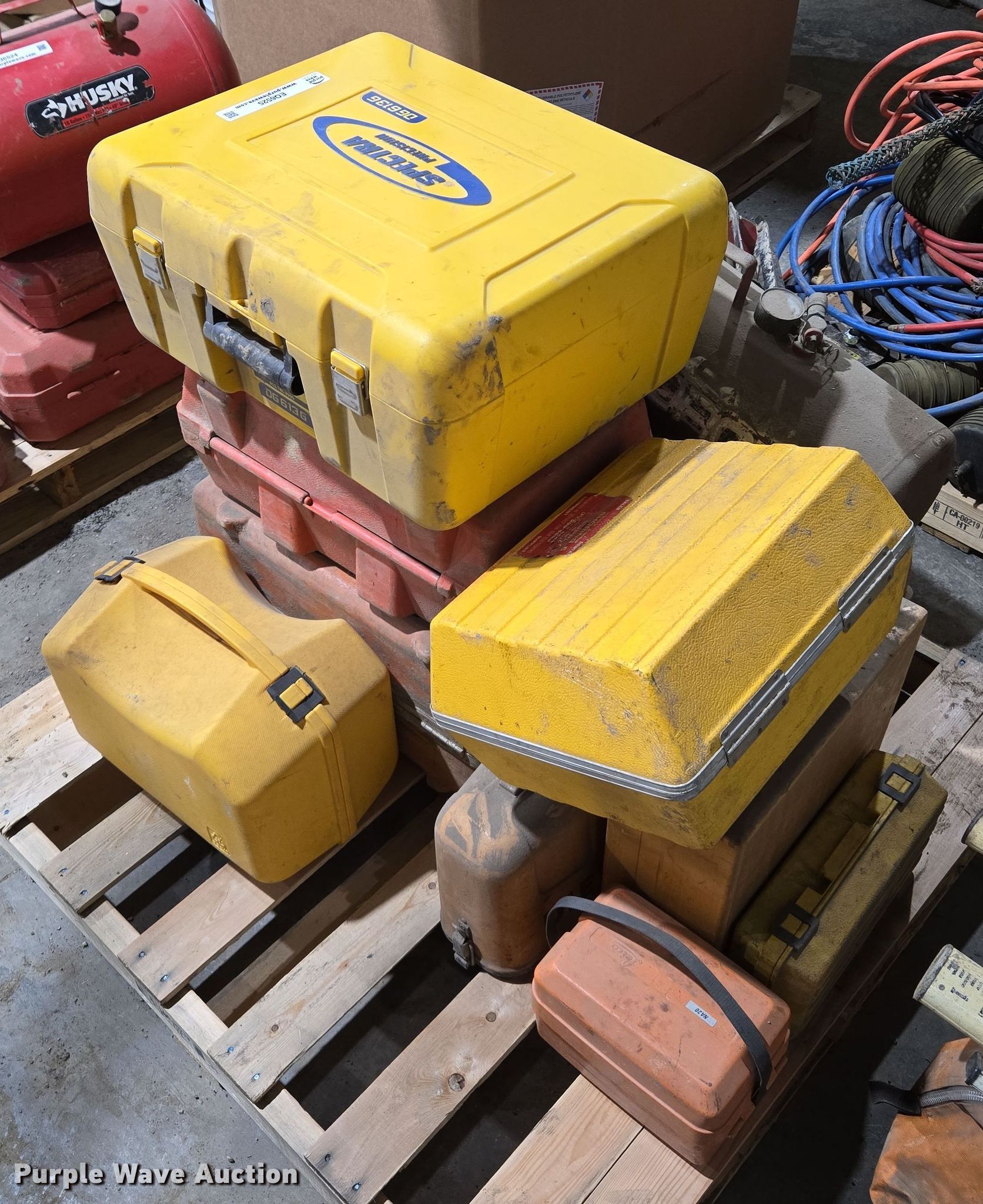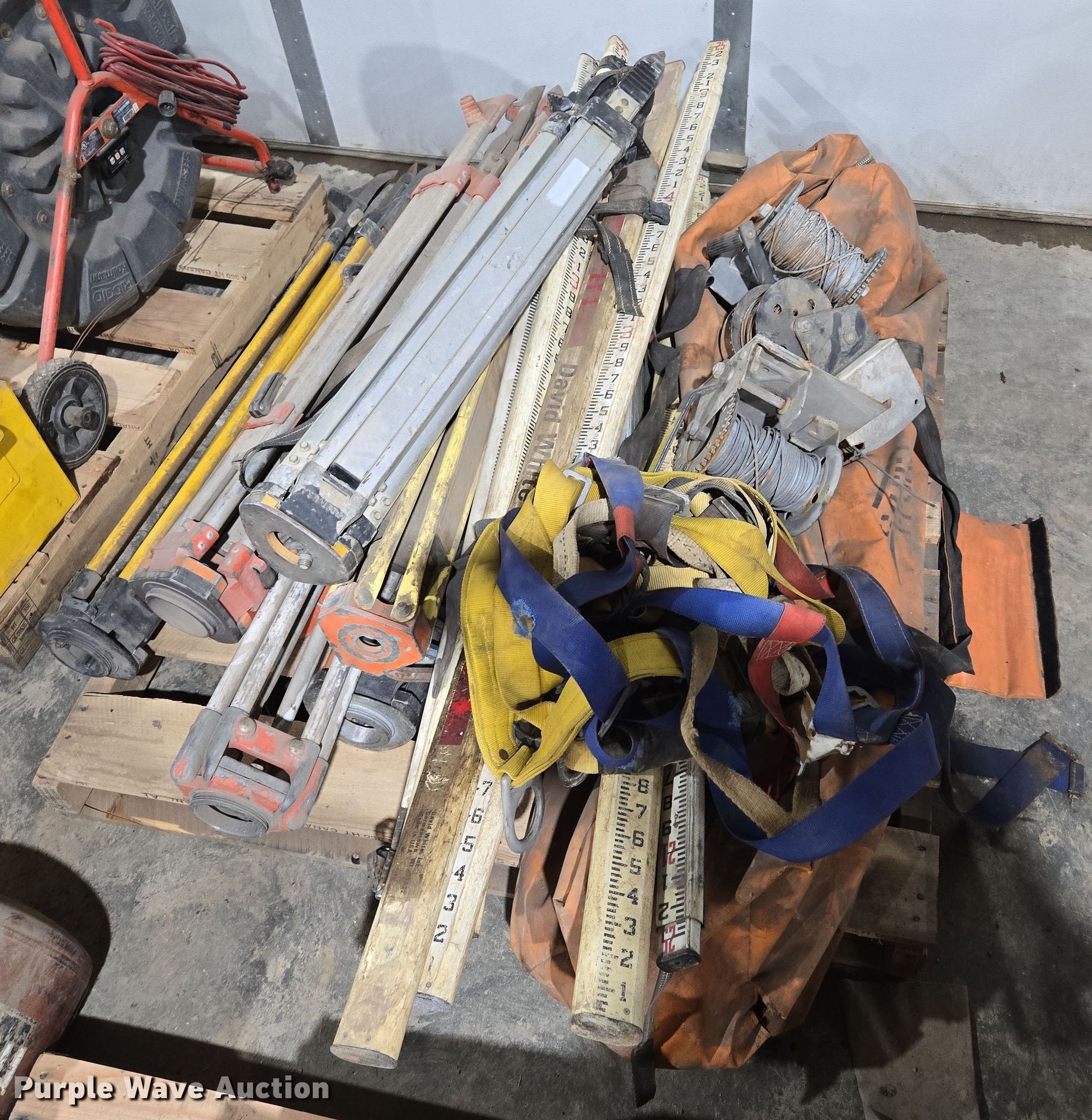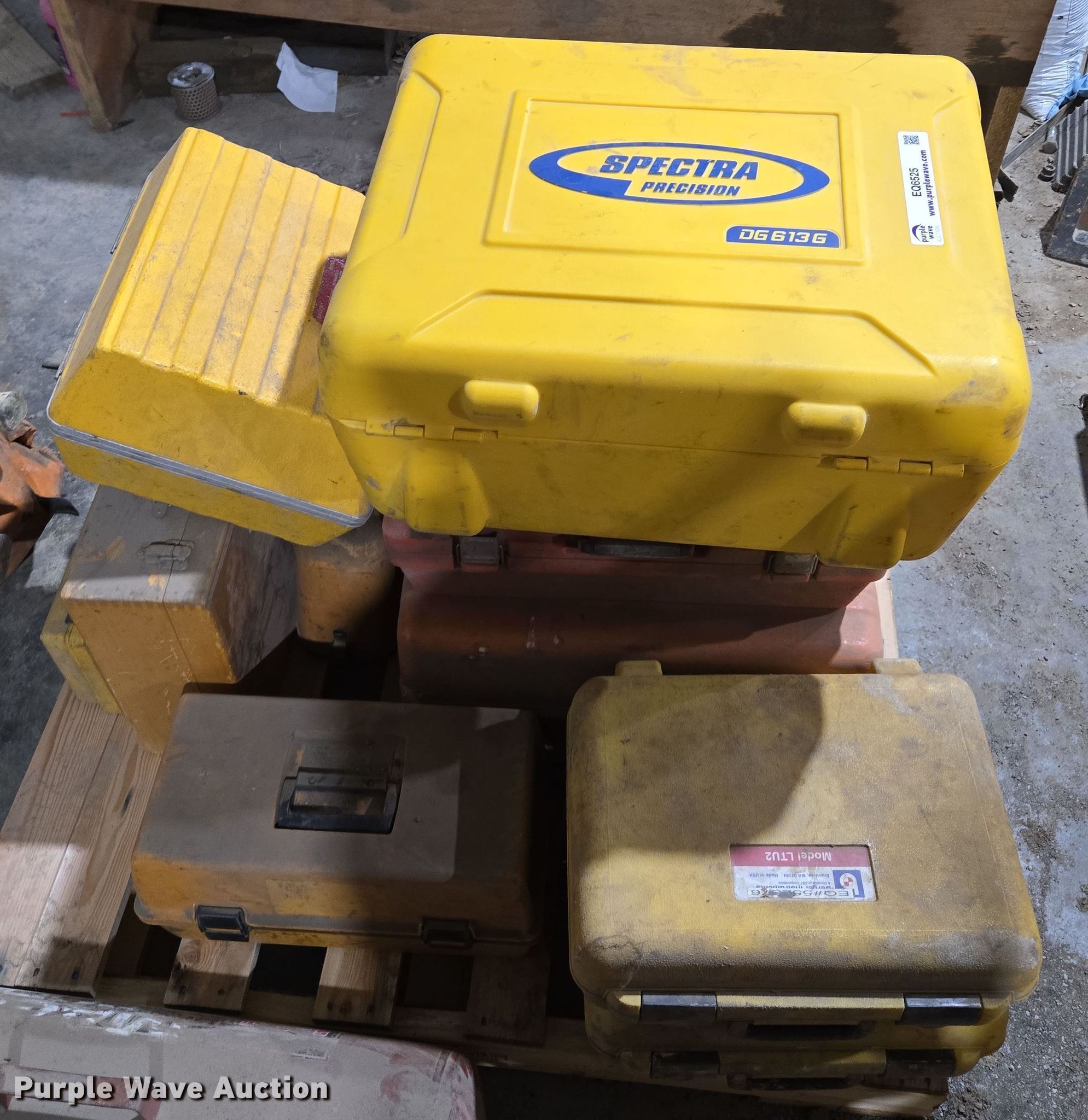Purple Wave is selling a used Surveying Equip. in Missouri. This item is a Surveying equipment and pipe lazer with the following: Spectra DG613, Robo Laser, David White scope, Trimble 1230, Berger LTU2 scope, Wild NA20, Speedy moister testers, Tripods and measuring sticks