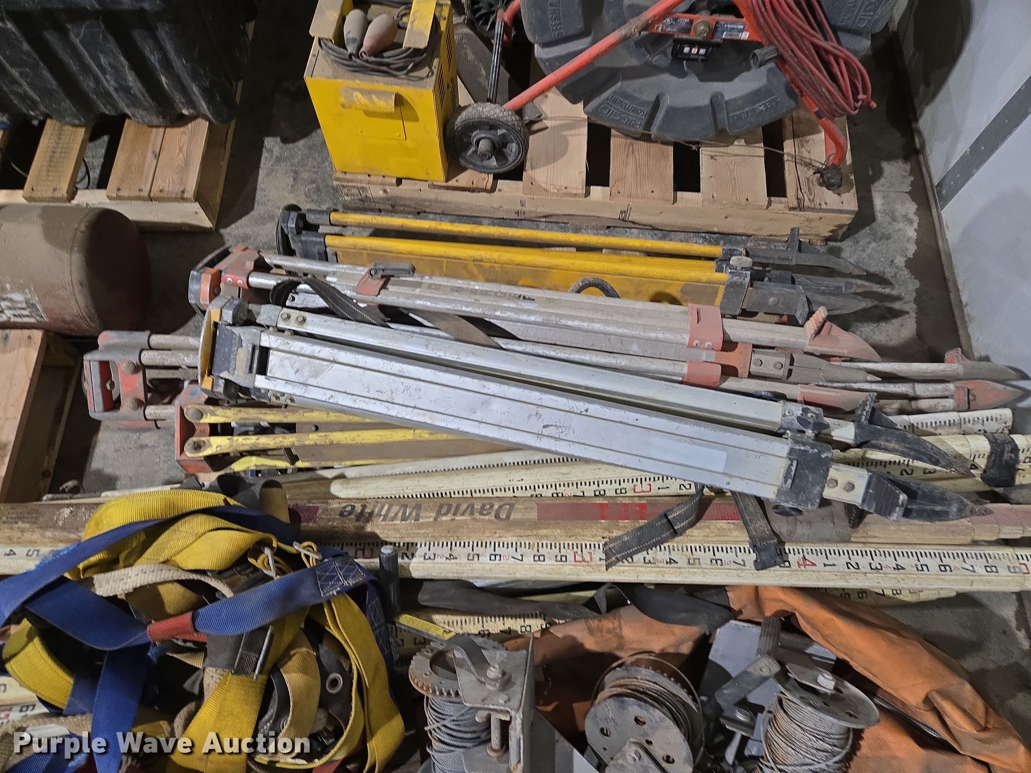 Surveying equipment and pipe lazer. Spectra DG613, Robo Laser, David White scope, Trimble 1230, Berger LTU2 scope, Wild NA20, Speedy moister testers, Tripods and measuring sticks. Pursuant to Missouri law, Purple Wave will not be collecting sales taxes on any of the purchases made in this business liquidation auction. J&N Utilities, Inc. Retirement Auction - Open Inspection March 21 and 26. 1455 Southeast County Road AA. Blue Springs, MO 64014
