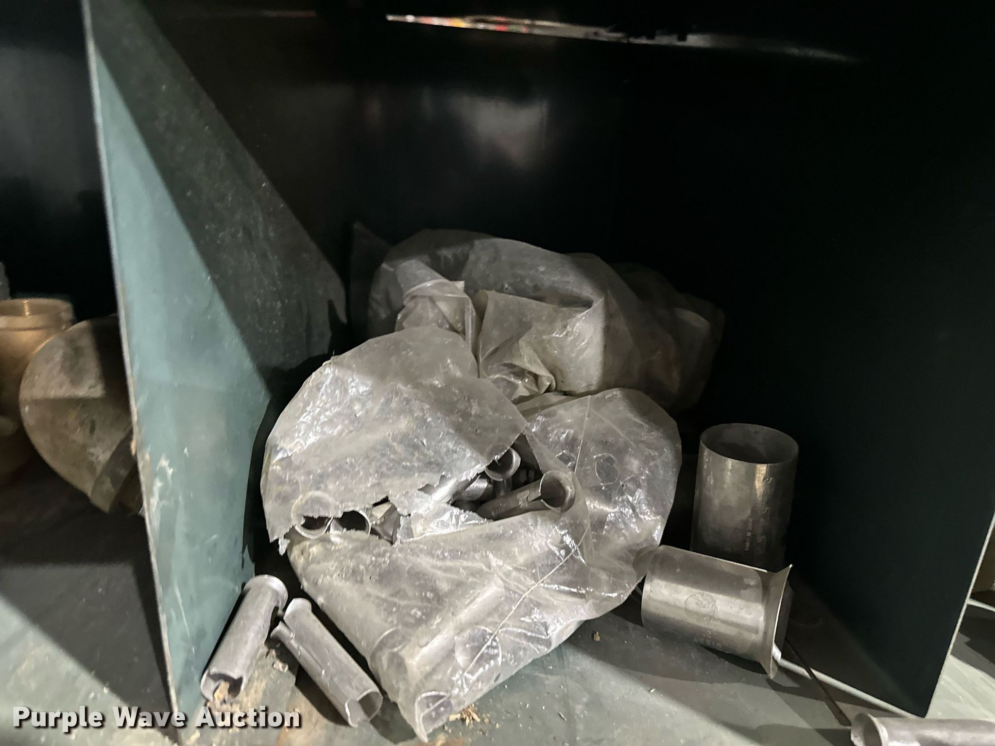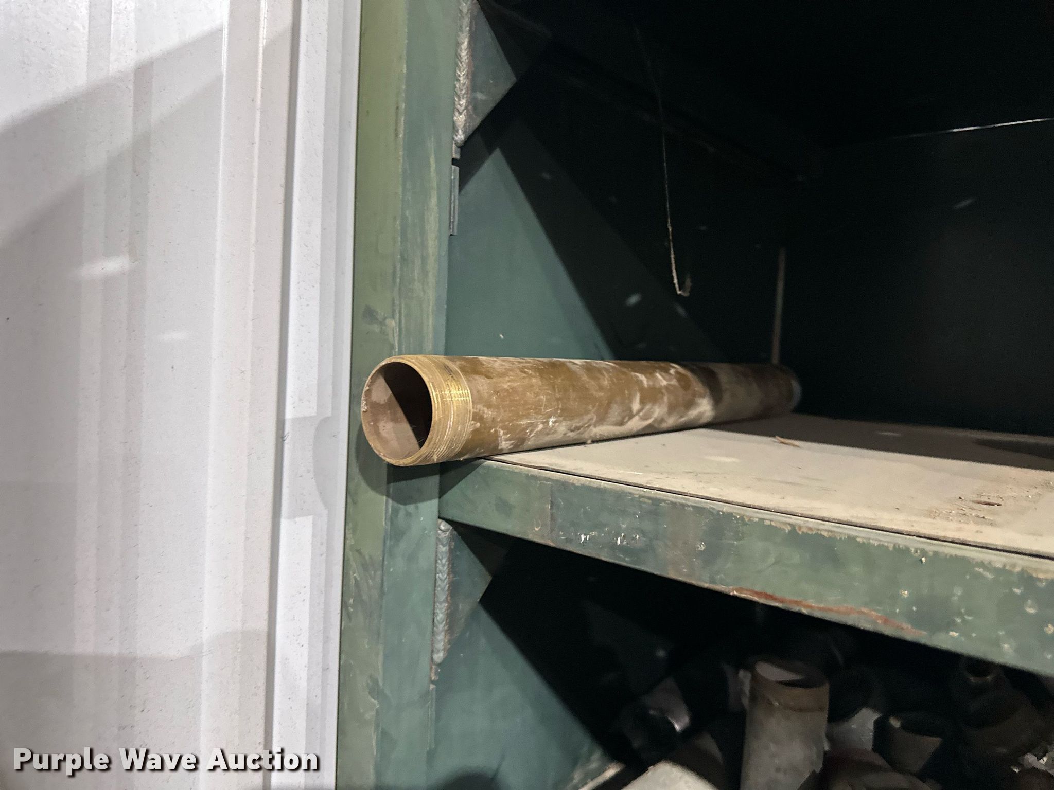 Brass pipe fitting. Shelf and more Dimensions: 96" L x 51" W x 81" H. Pursuant to Missouri law, Purple Wave will not be collecting sales taxes on any of the purchases made in this business liquidation auction. Buyer responsible for all aspects of load out and removal. J&N Utilities, Inc. Retirement Auction - Open Inspection March 21 and 26. 1455 Southeast County Road AA. Blue Springs, MO 64014