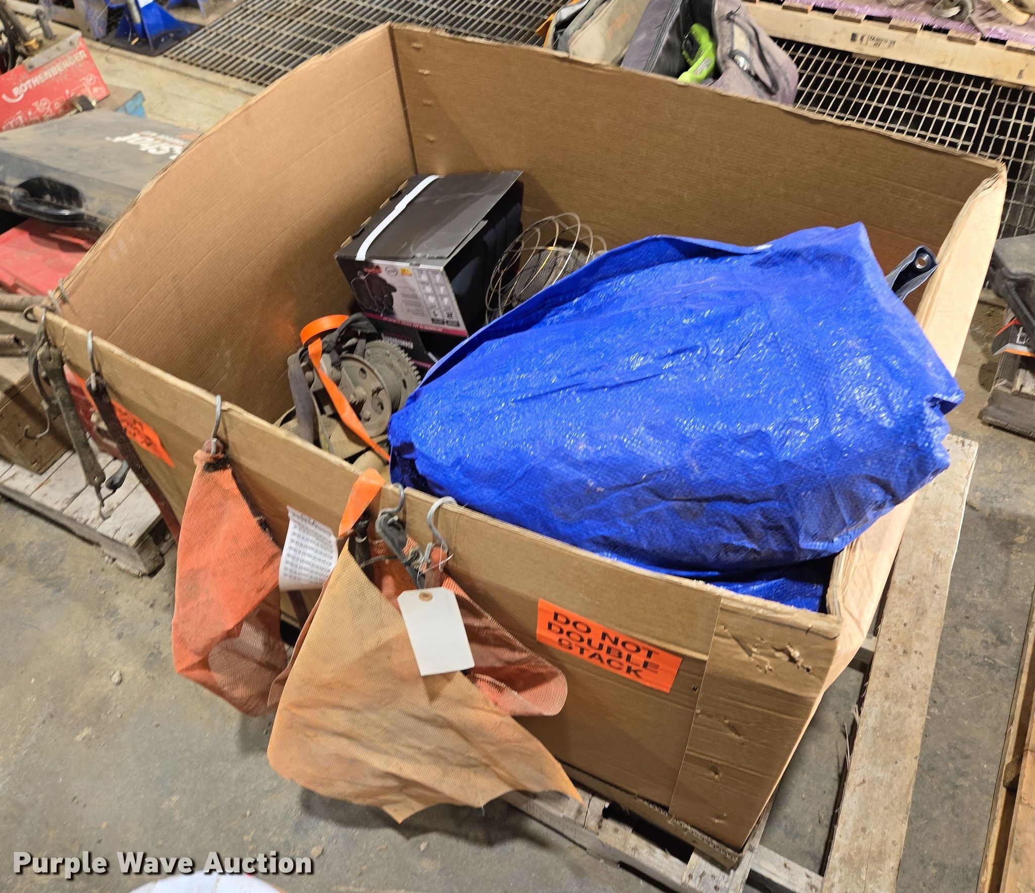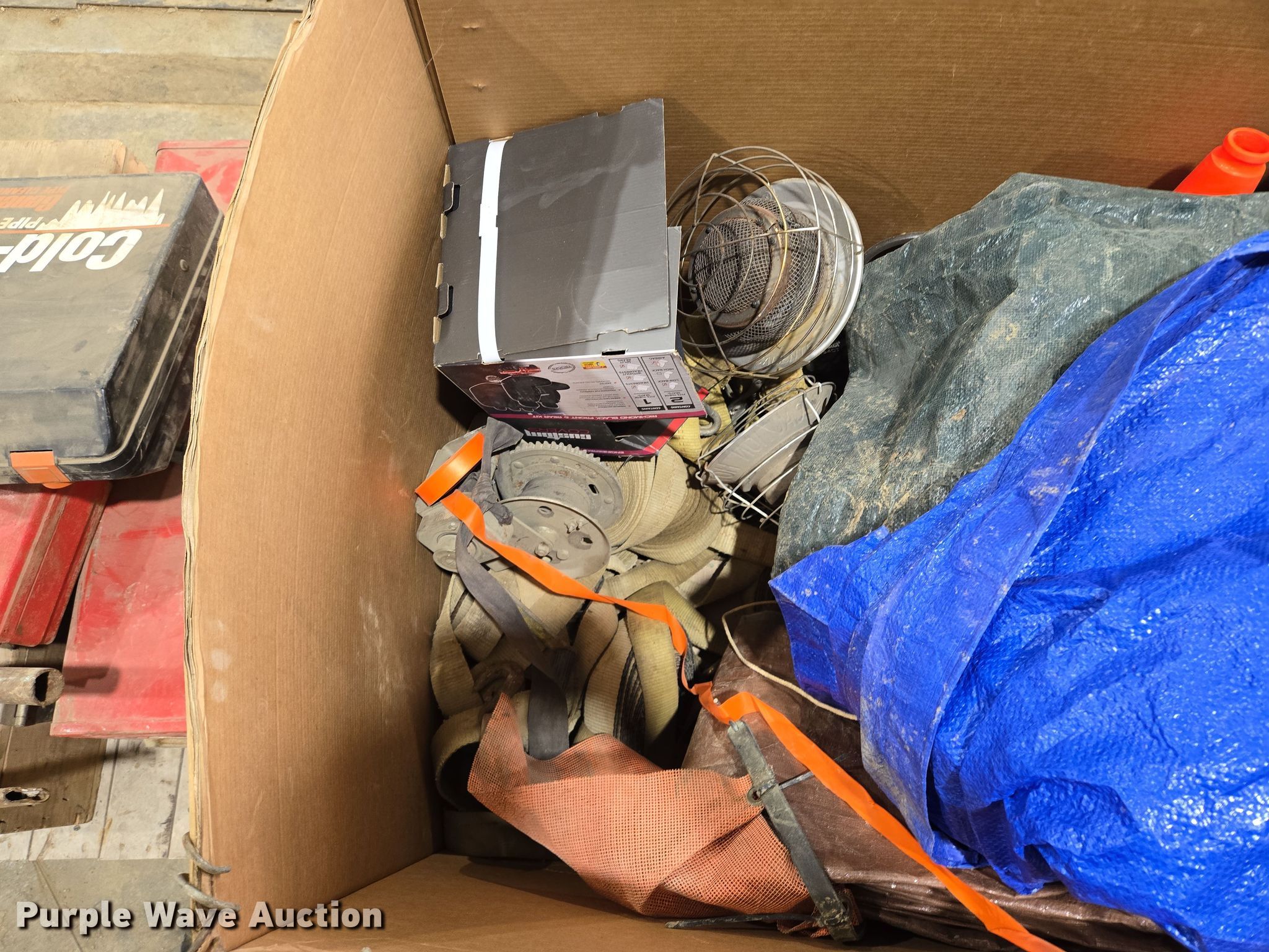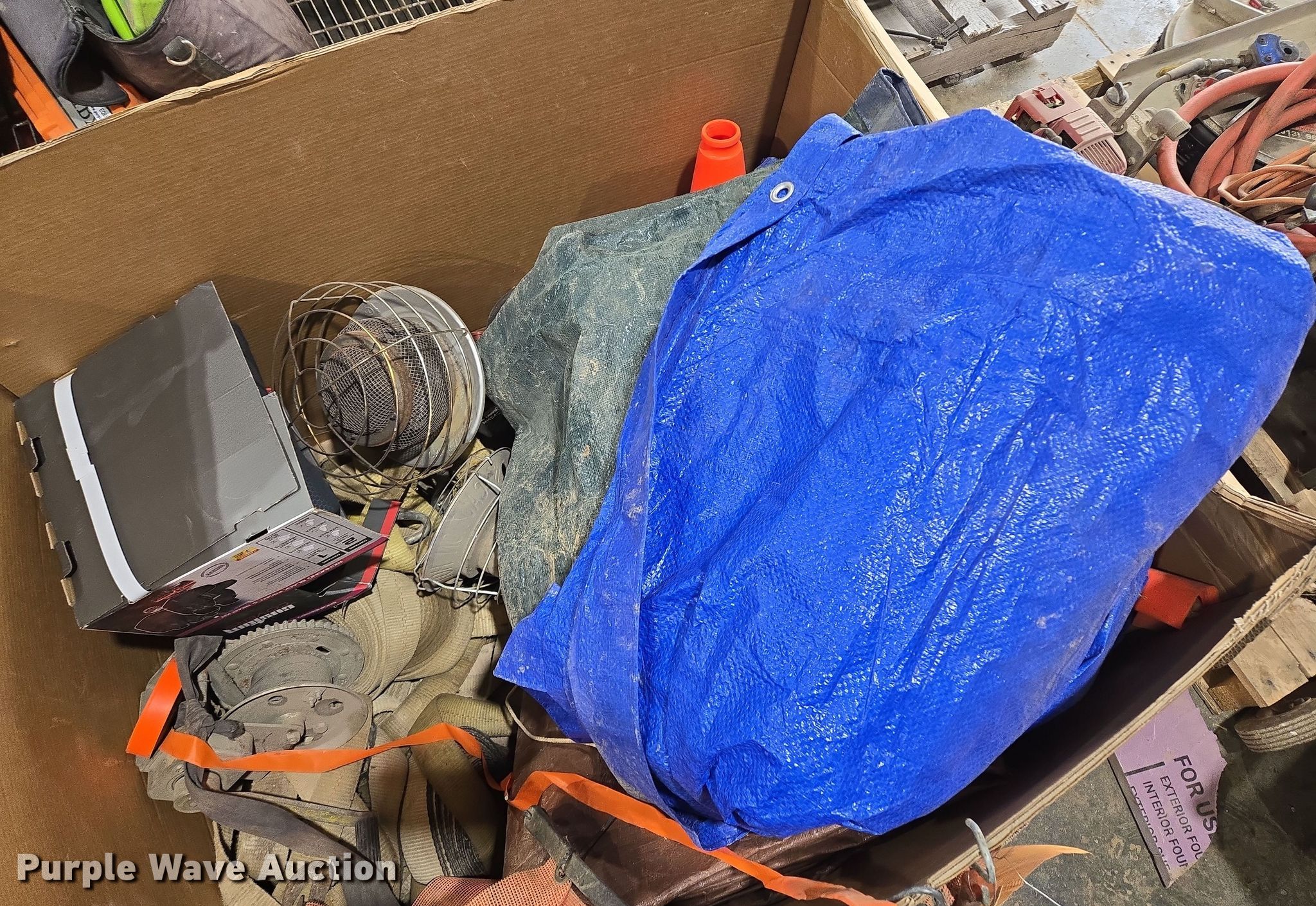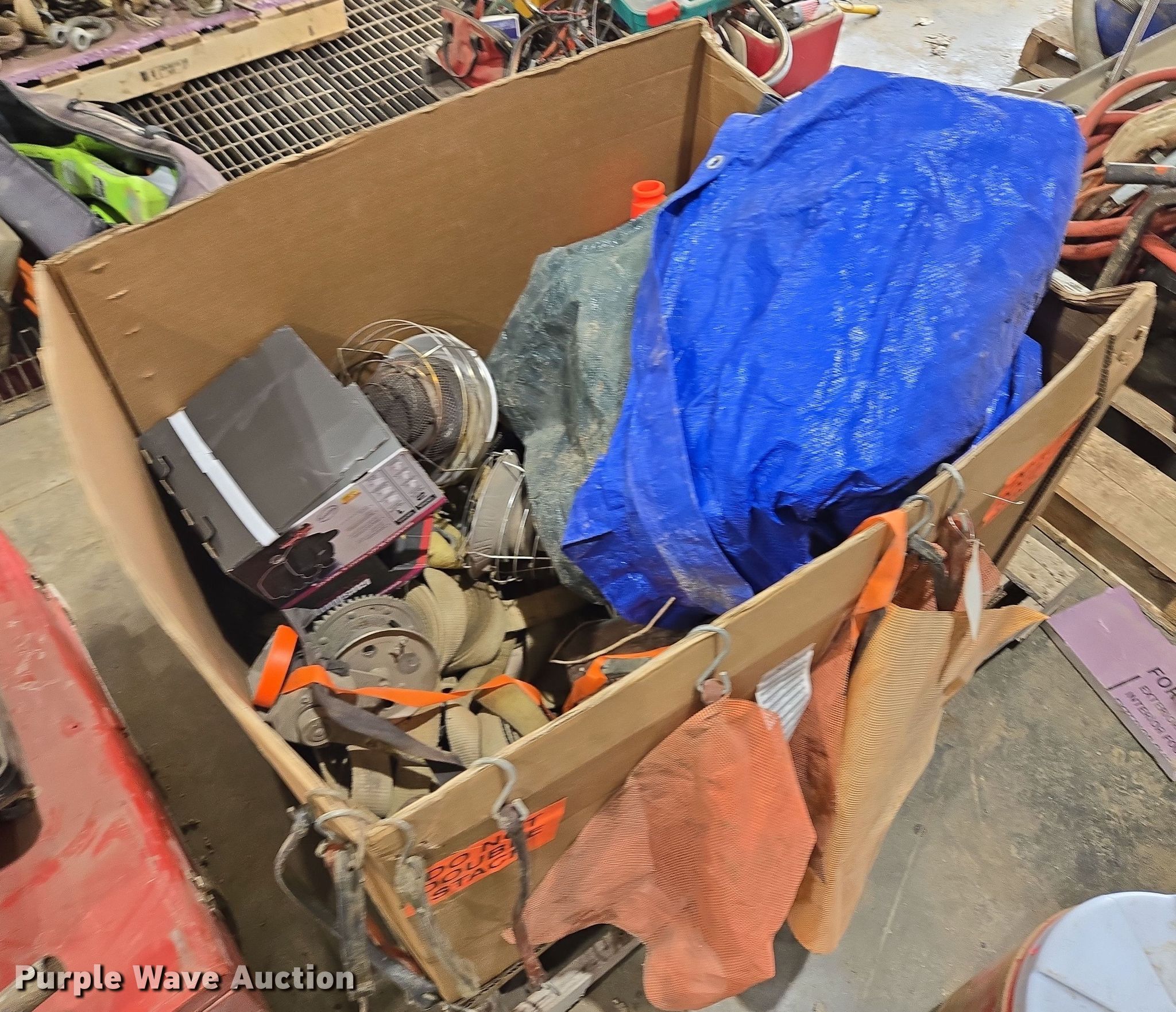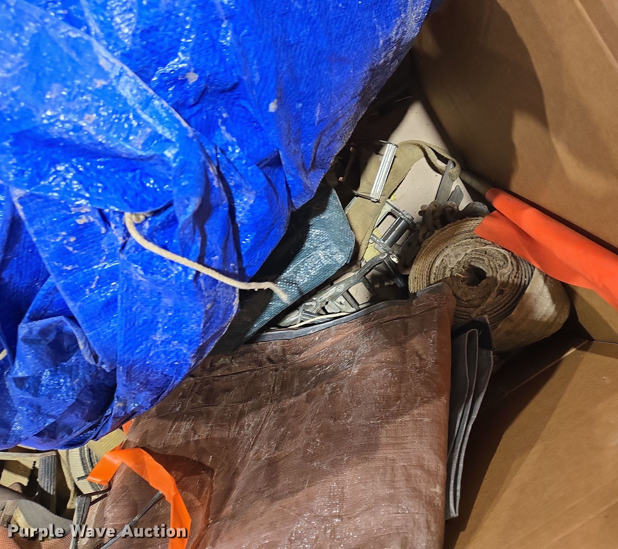 Purple Wave is selling a used Tools in Missouri. This item is a Tools with the following: (2) tarps, Ratchet straps and more
