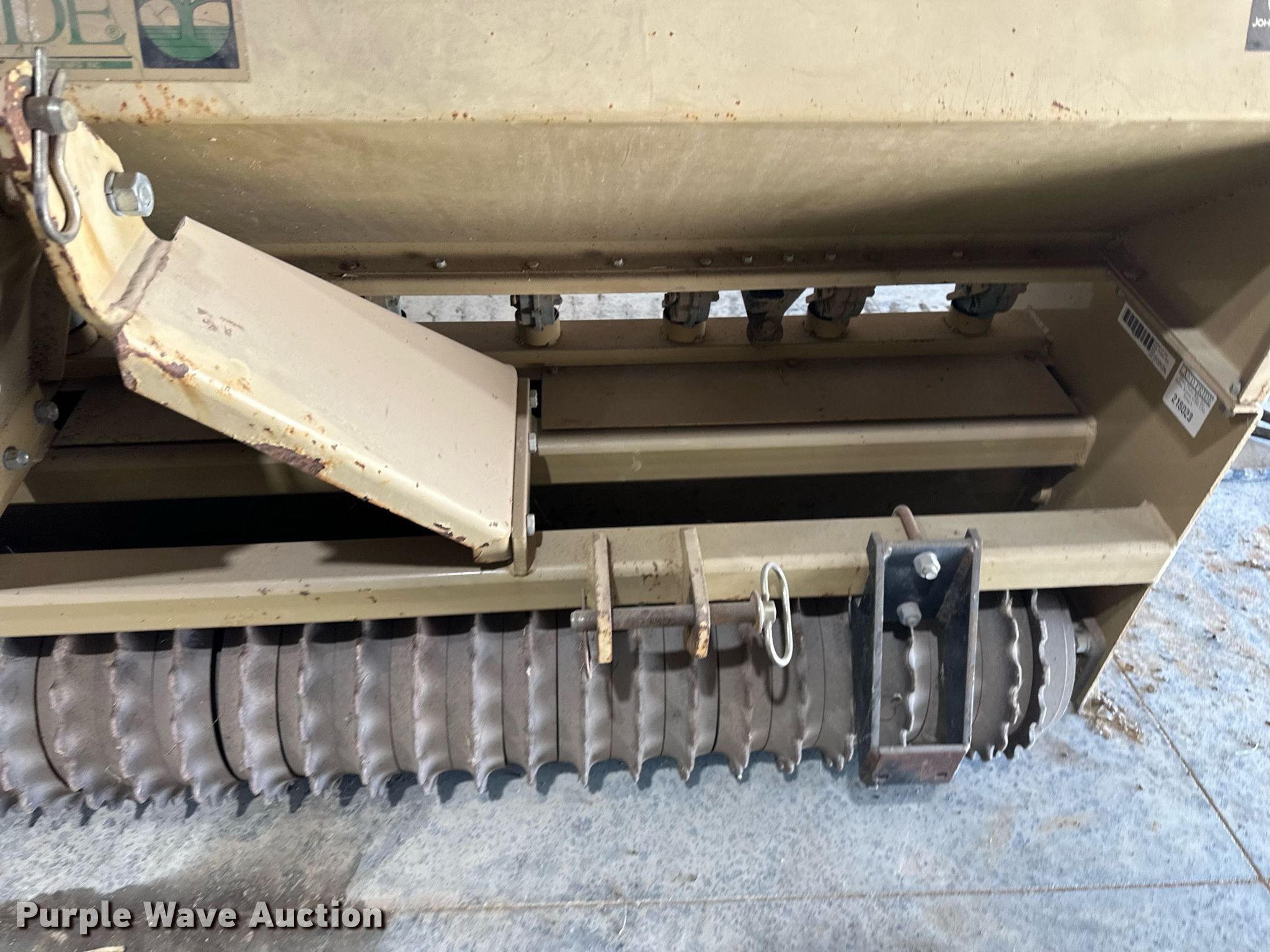 1997 Land Pride PS1572 seeder. Width: 6', Row units: 10, Row spacing: 8", Serial: 216023. Features Frame Hitch: Three point, Seed delivery Bulk fill system, Row units Meter drive: Ground. Notes (6) spreaders. Pursuant to Missouri law, Purple Wave will not be collecting sales taxes on any of the purchases made in this business liquidation auction. J&N Utilities, Inc. Retirement Auction - Open Inspection March 21 and 26. 1455 Southeast County Road AA. Blue Springs, MO 64014