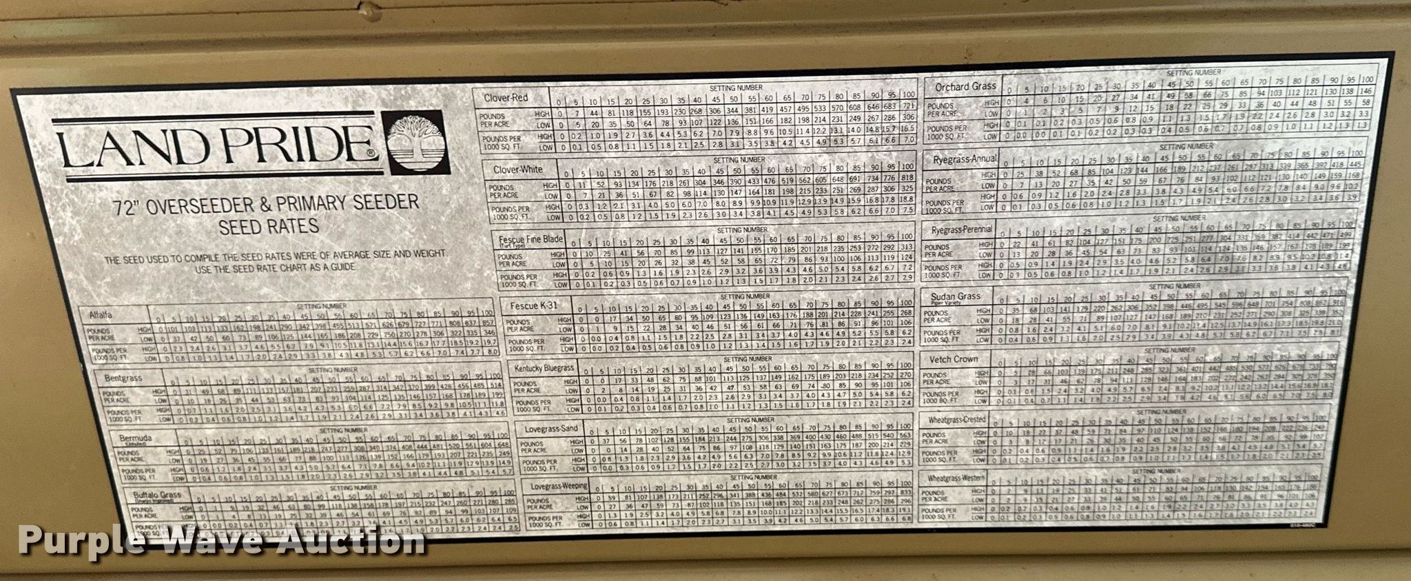 Purple Wave is selling a used Grain Drill or Seeder in Missouri. This item is a 1997 Land Pride PS1572 seeder with the following: Width: 6', Row units: 10, Row spacing: 8", Serial: 216023