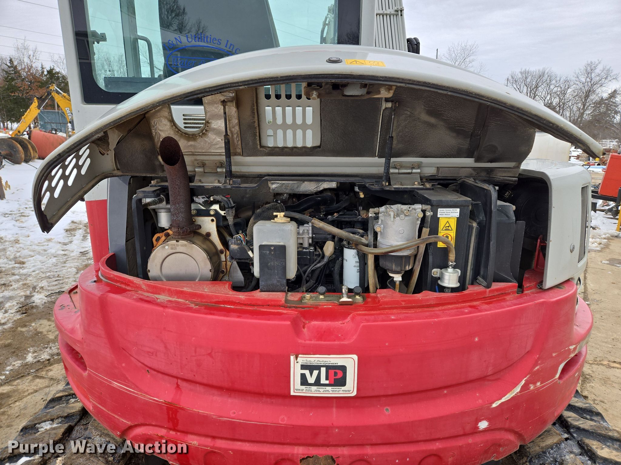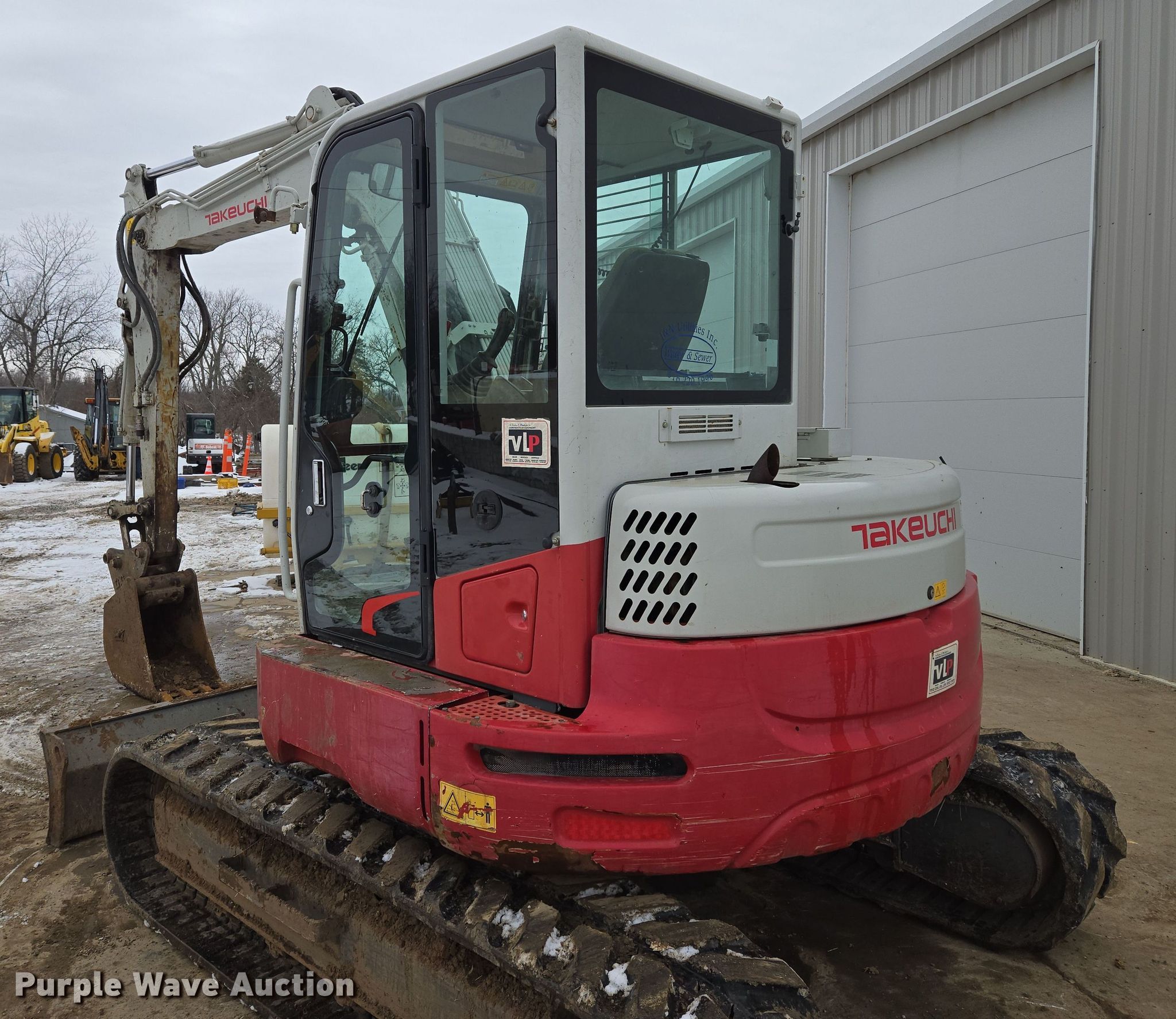 2015 Takeuchi TB280FR mini excavator. Hours: 3,620 on meter, Serial: 178500119. Engine Yanmar 4TNV98CT-WTBZ, Displacement: 3.319L, Cylinders: 4, Fuel type: Diesel. Transmission Hydrostatic. Operators station Enclosed cab, AC, Heat. Features Auxiliary hydraulics, Backfill blade Width: 91", Boom Swing, Stick Stick length: 6' 8", Quick coupler: Mechanical, Bucket Width: 17", Teeth: 4. Tracks Width: 18", Rubber. Pursuant to Missouri law, Purple Wave will not be collecting sales taxes on any of the purchases made in this business liquidation auction. J&N Utilities, Inc. Retirement Auction - Open Inspection March 21 and 26. 1455 Southeast County Road AA. Blue Springs, MO 64014