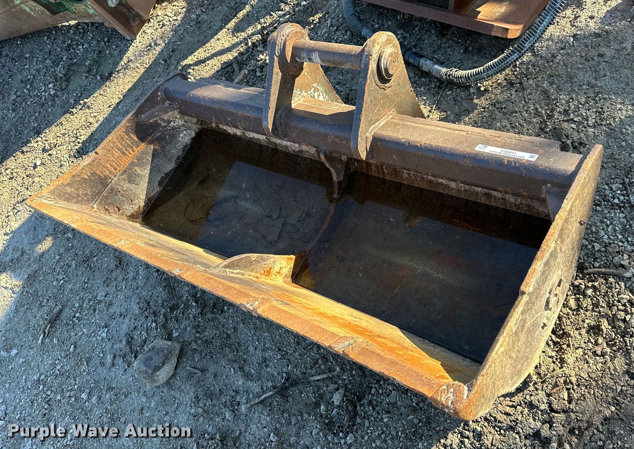 CP 60" W excavator bucket. Fits 120 size excavator. Pursuant to Missouri law, Purple Wave will not be collecting sales taxes on any of the purchases made in this business liquidation auction. J&N Utilities, Inc. Retirement Auction - Open Inspection March 21 and 26. 1455 Southeast County Road AA. Blue Springs, MO 64014