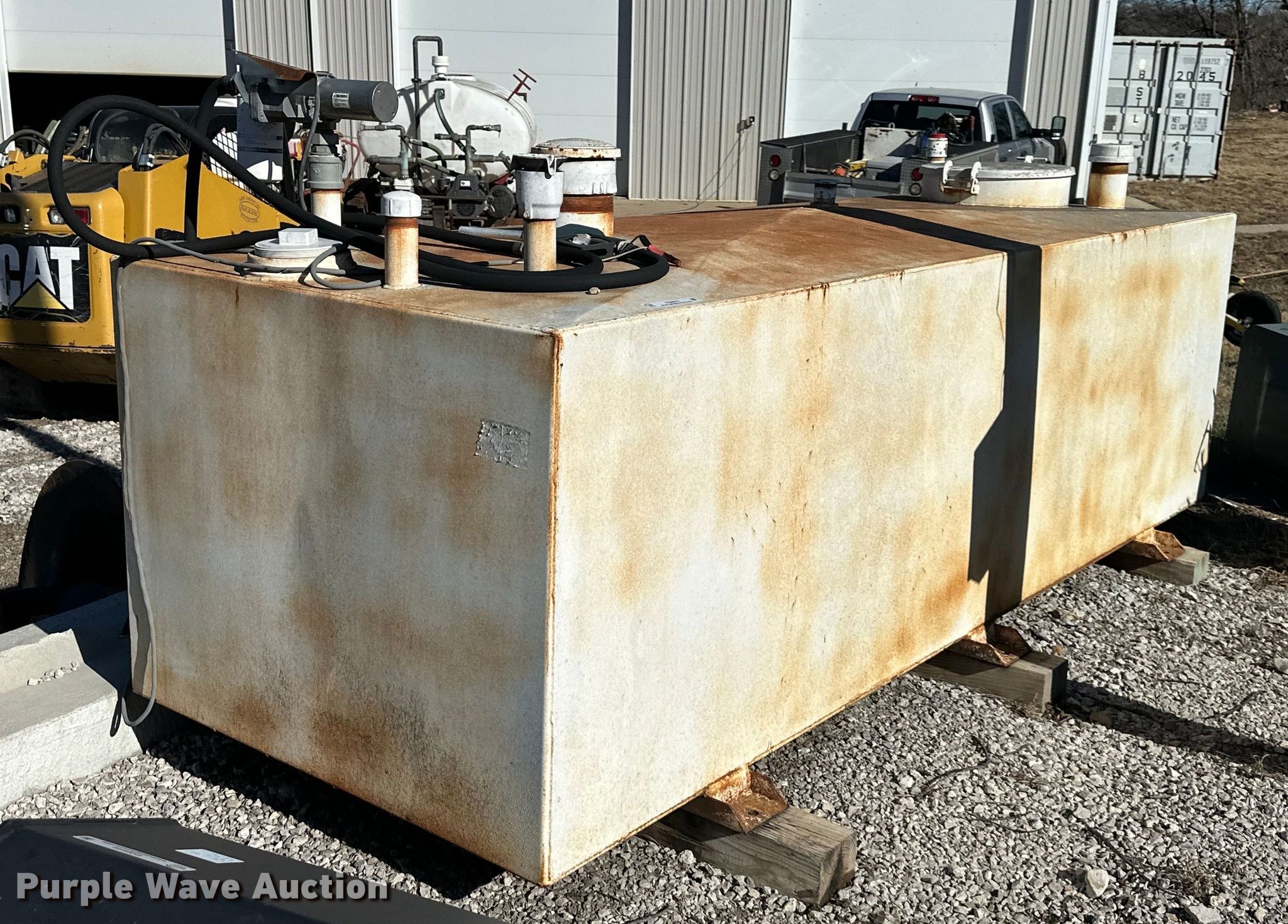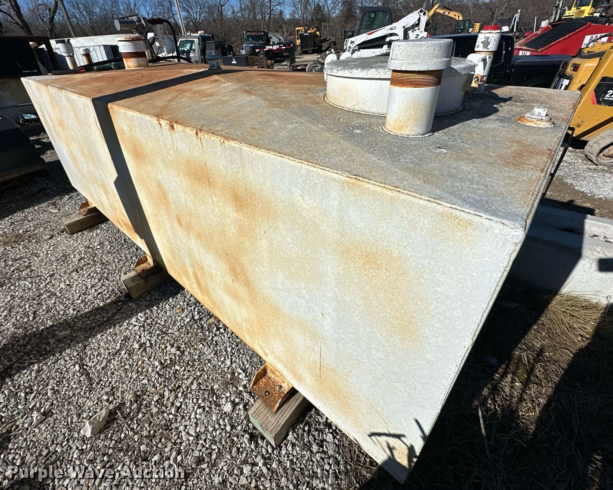 Fuel tank. Capacity: 500 gallons, Dimensions: 13' L x 50" W x 60" H. Pursuant to Missouri law, Purple Wave will not be collecting sales taxes on any of the purchases made in this business liquidation auction. J&N Utilities, Inc. Retirement Auction - Open Inspection March 21 and 26. 1455 Southeast County Road AA. Blue Springs, MO 64014