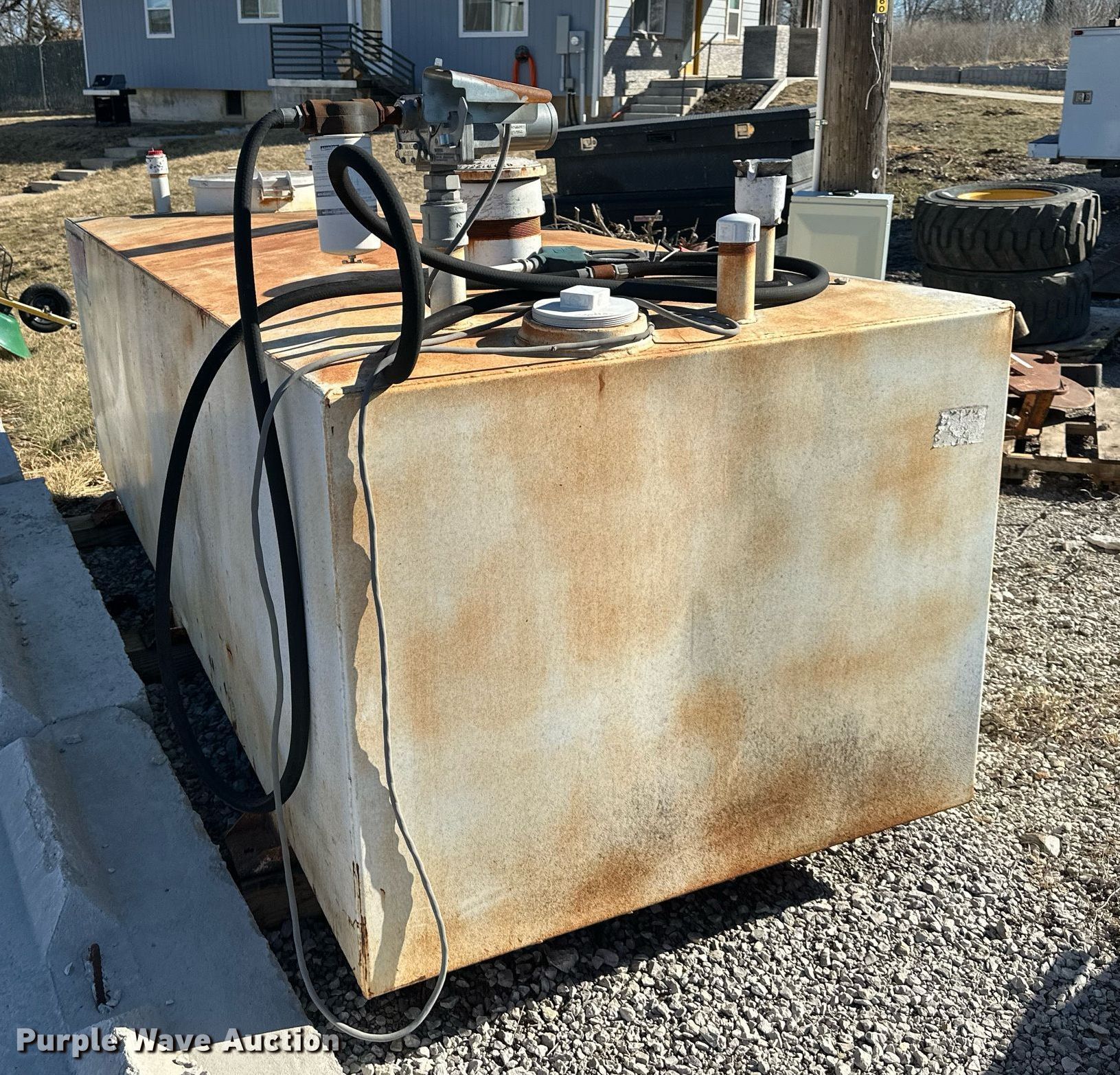 Purple Wave is selling a used Fuel and Lube in Missouri. This item is a Fuel tank with the following: Capacity: 500 gallons, Dimensions: 13' L x 50" W x 60" H